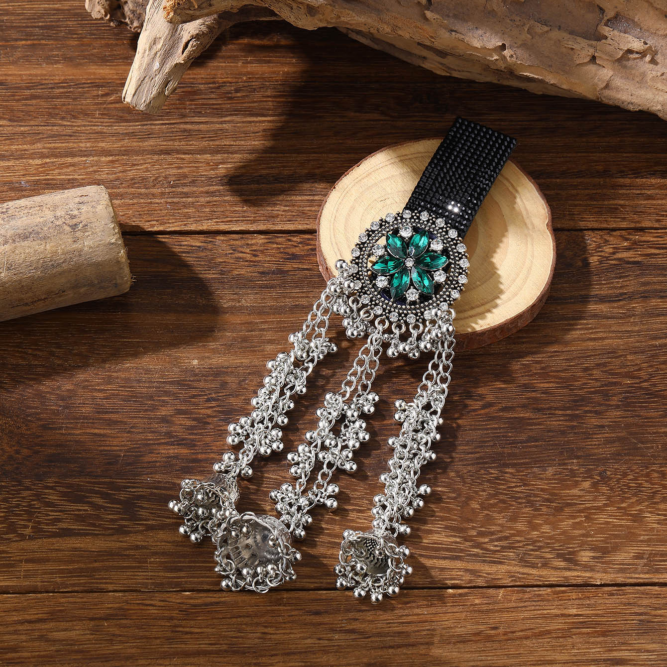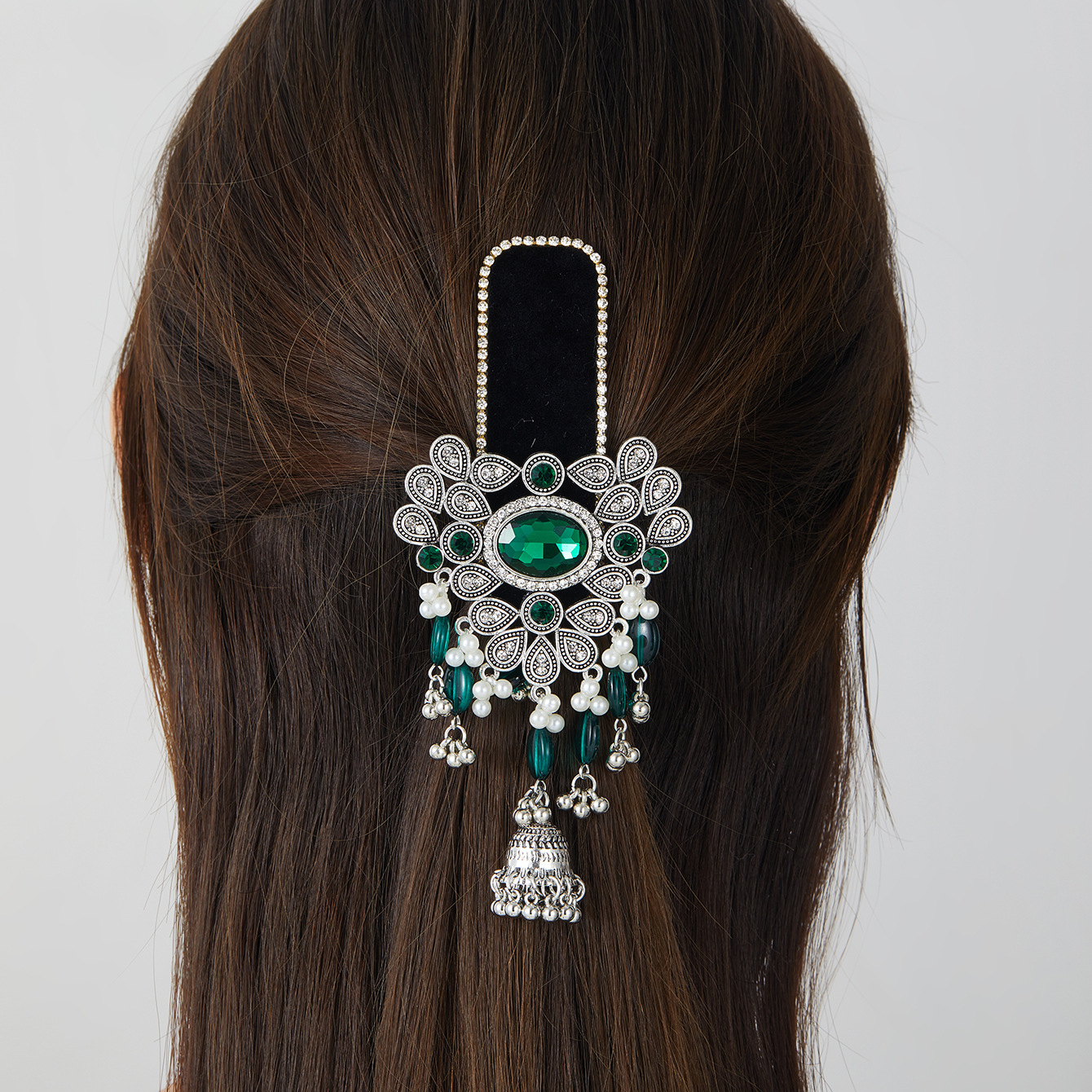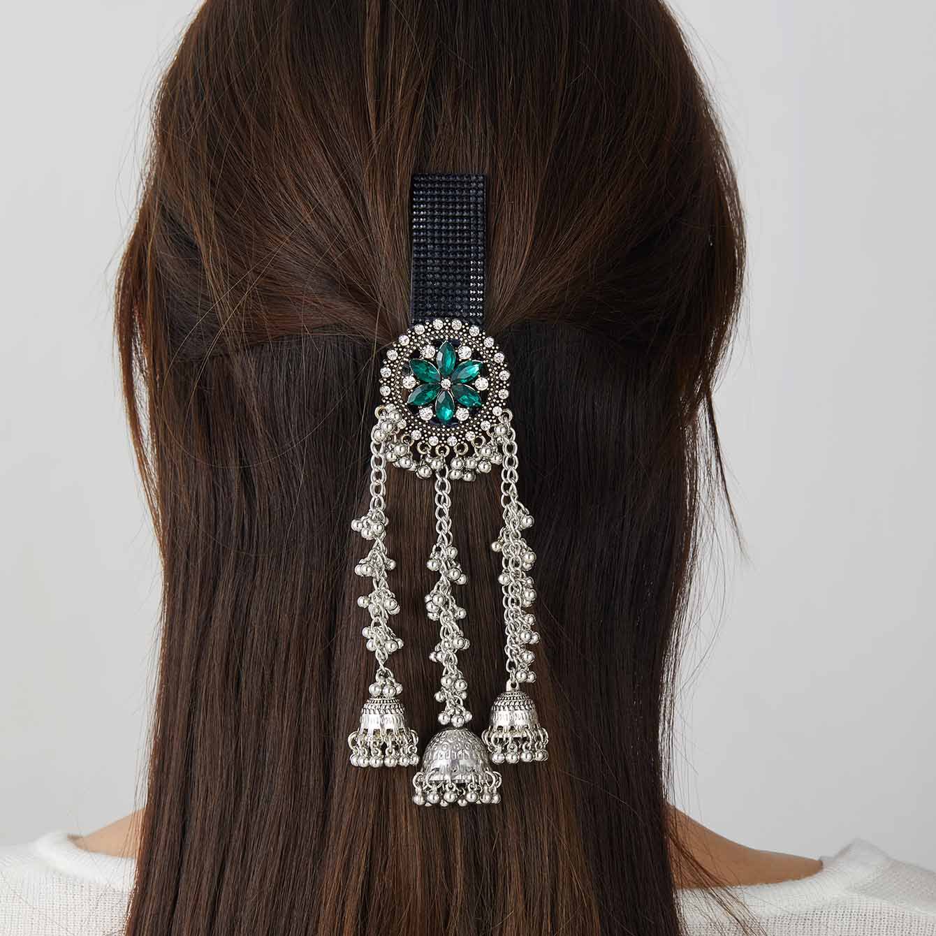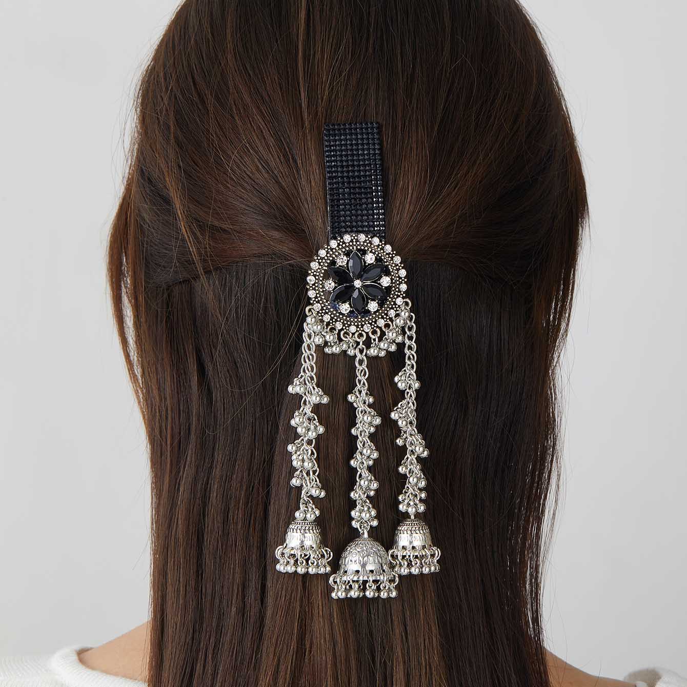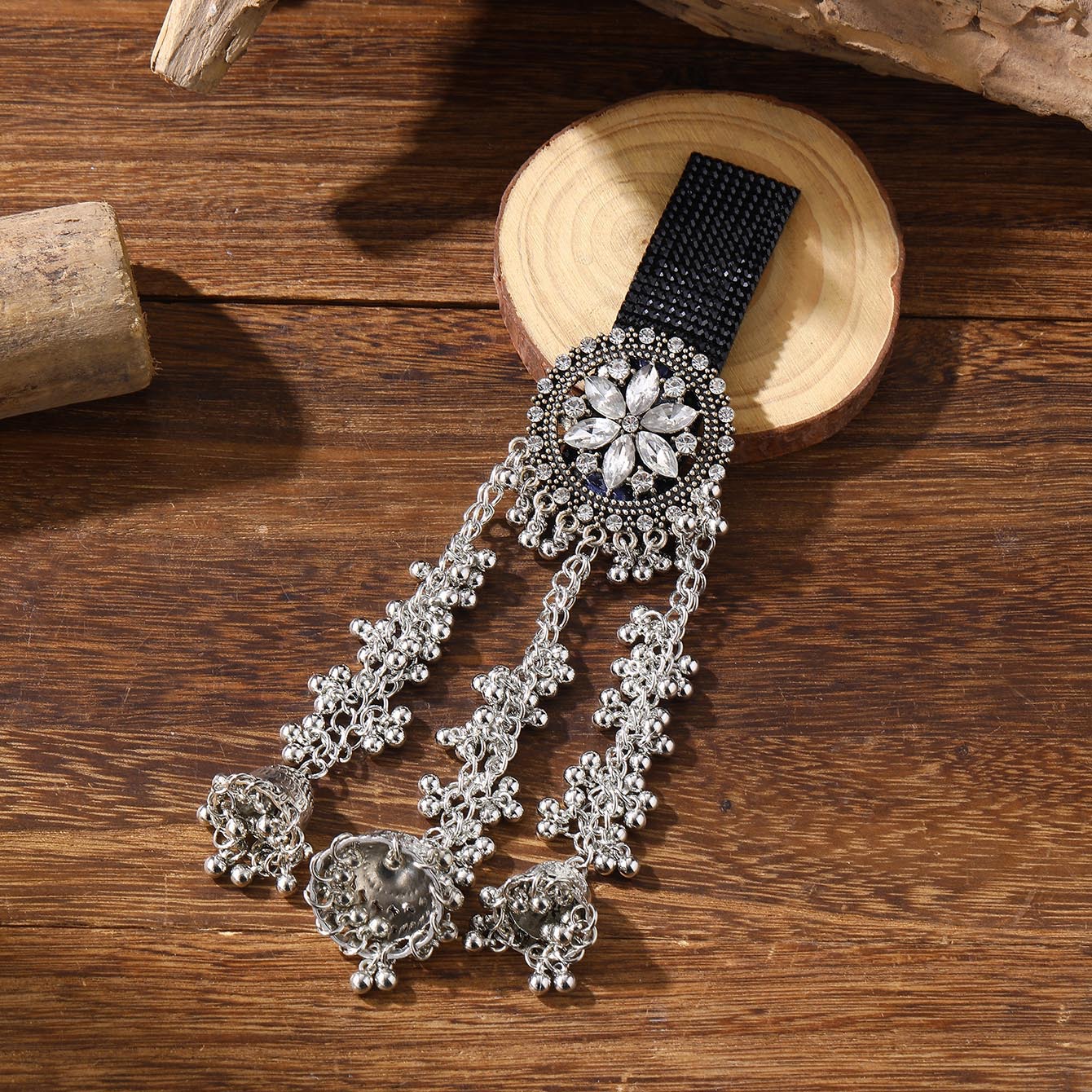 跨境爆款胸针时尚复古印度风民族风头饰夸张流苏彩色水晶花发夹