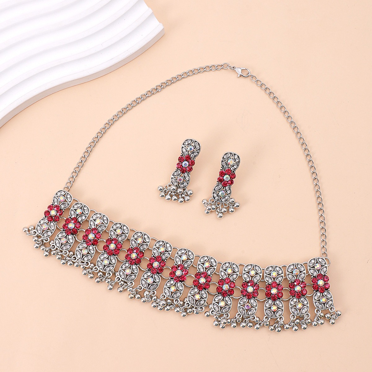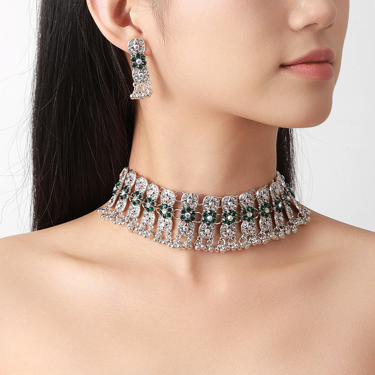 欧美复古民族风波西米亚时尚重工合金镶钻复古多层夸张气质花朵耳