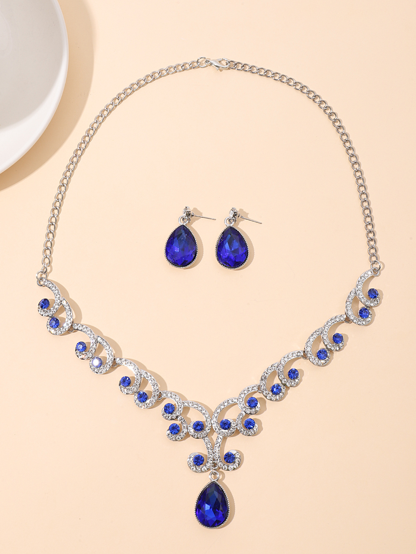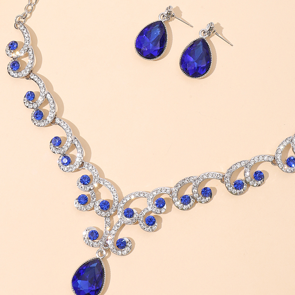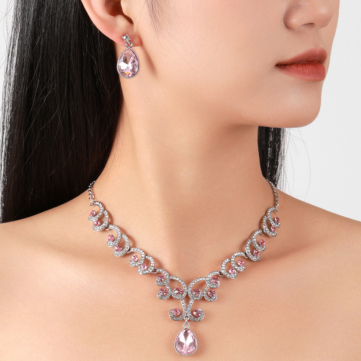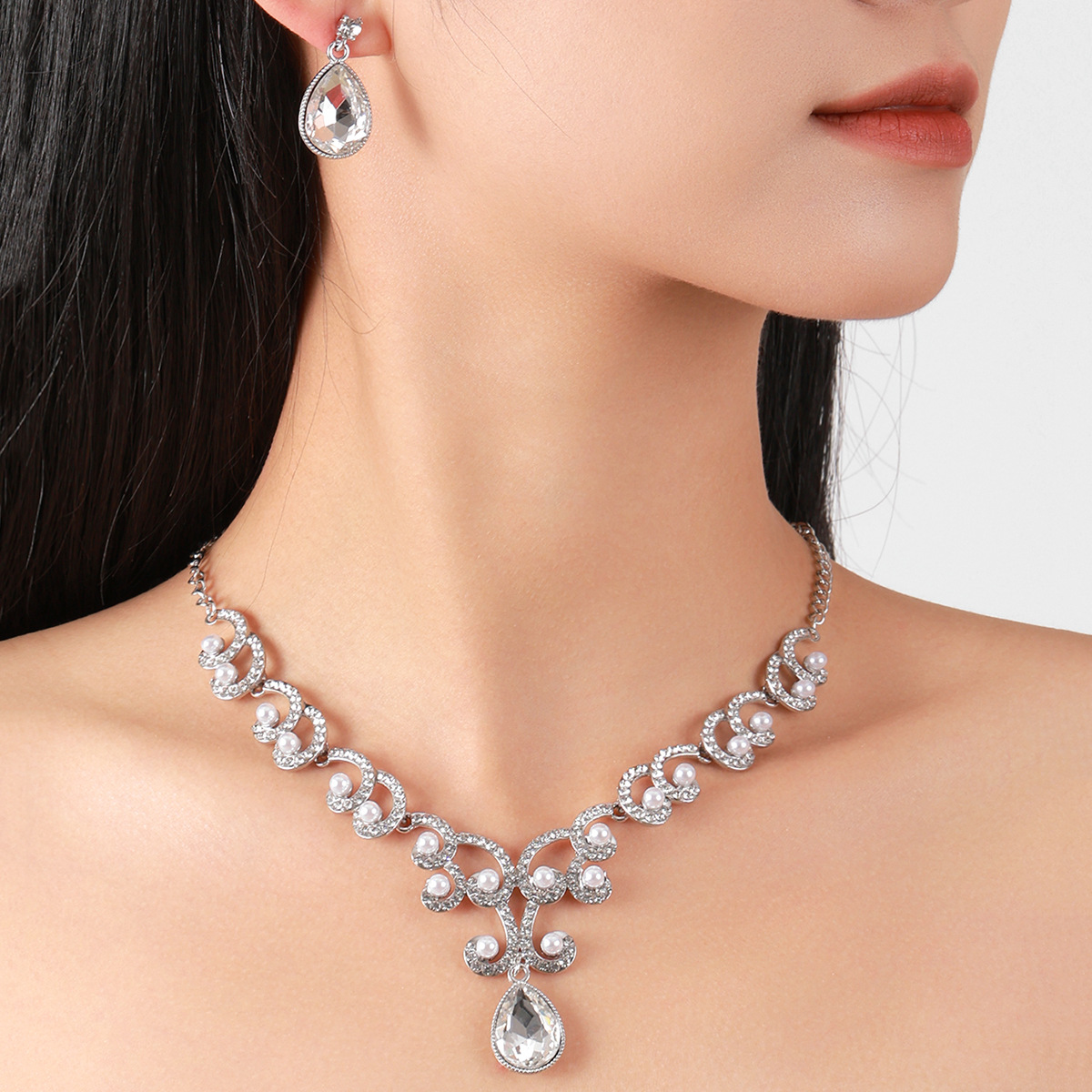 欧美首饰套链耳环吊坠水钻项链女饰品祖母绿水滴时尚新娘配饰跨境