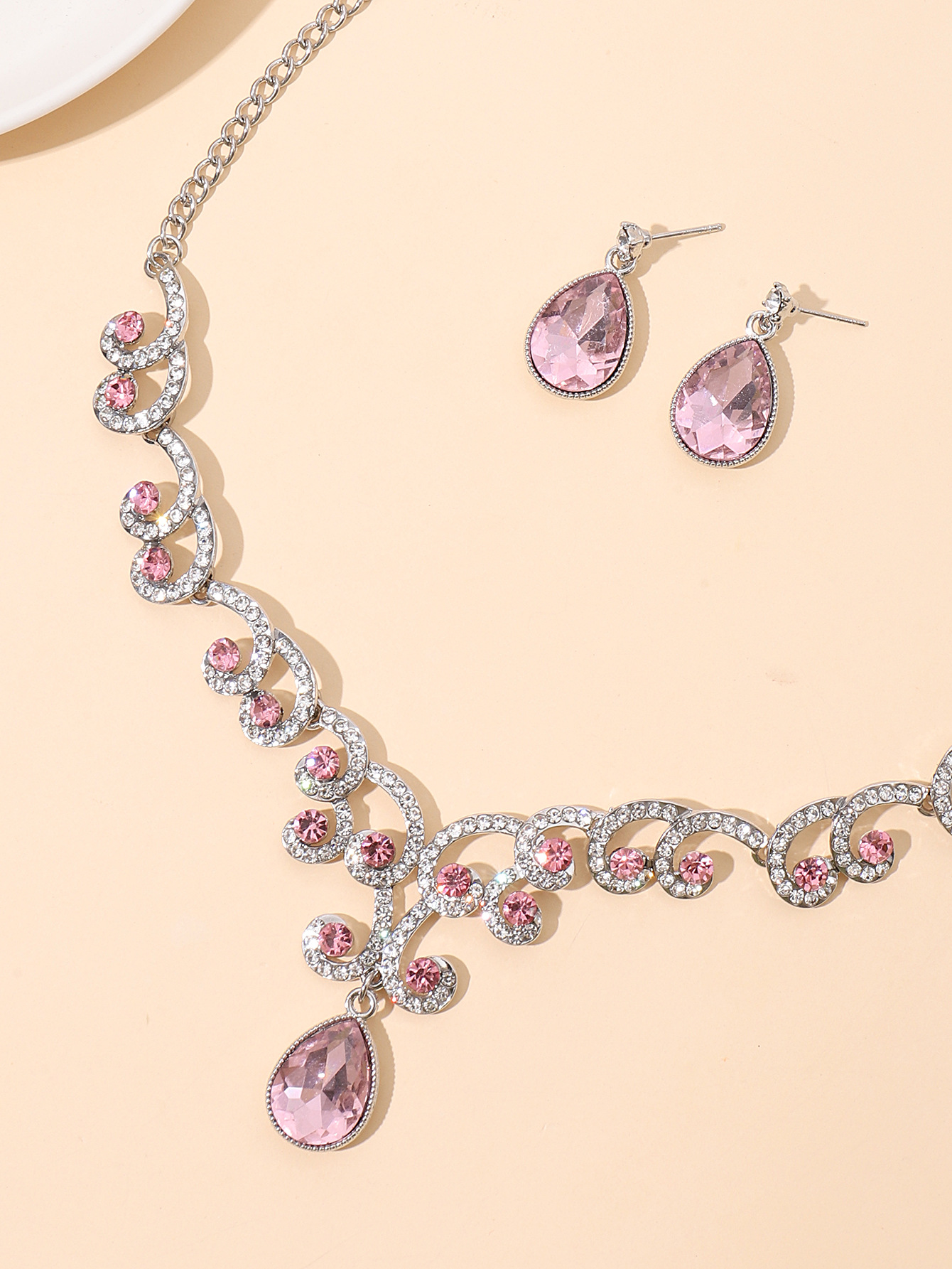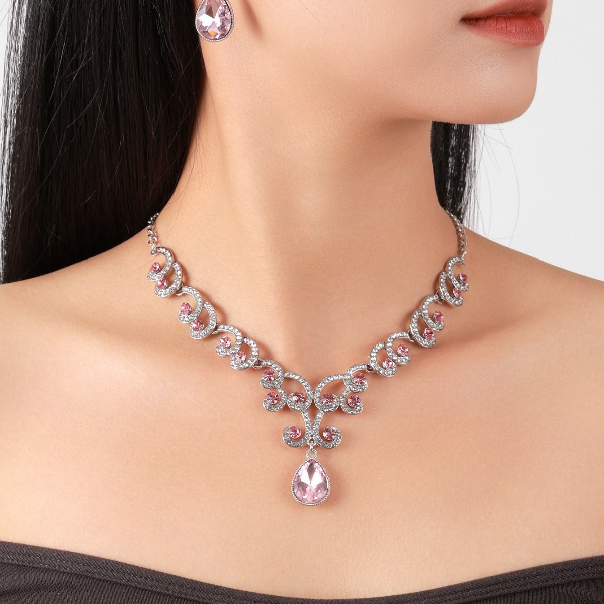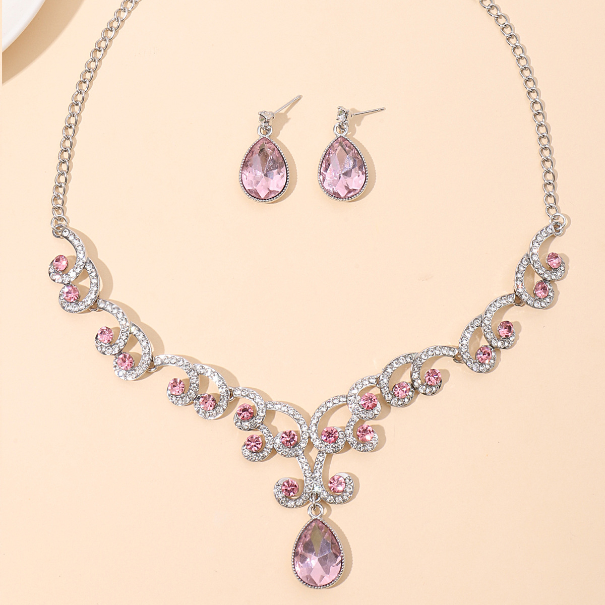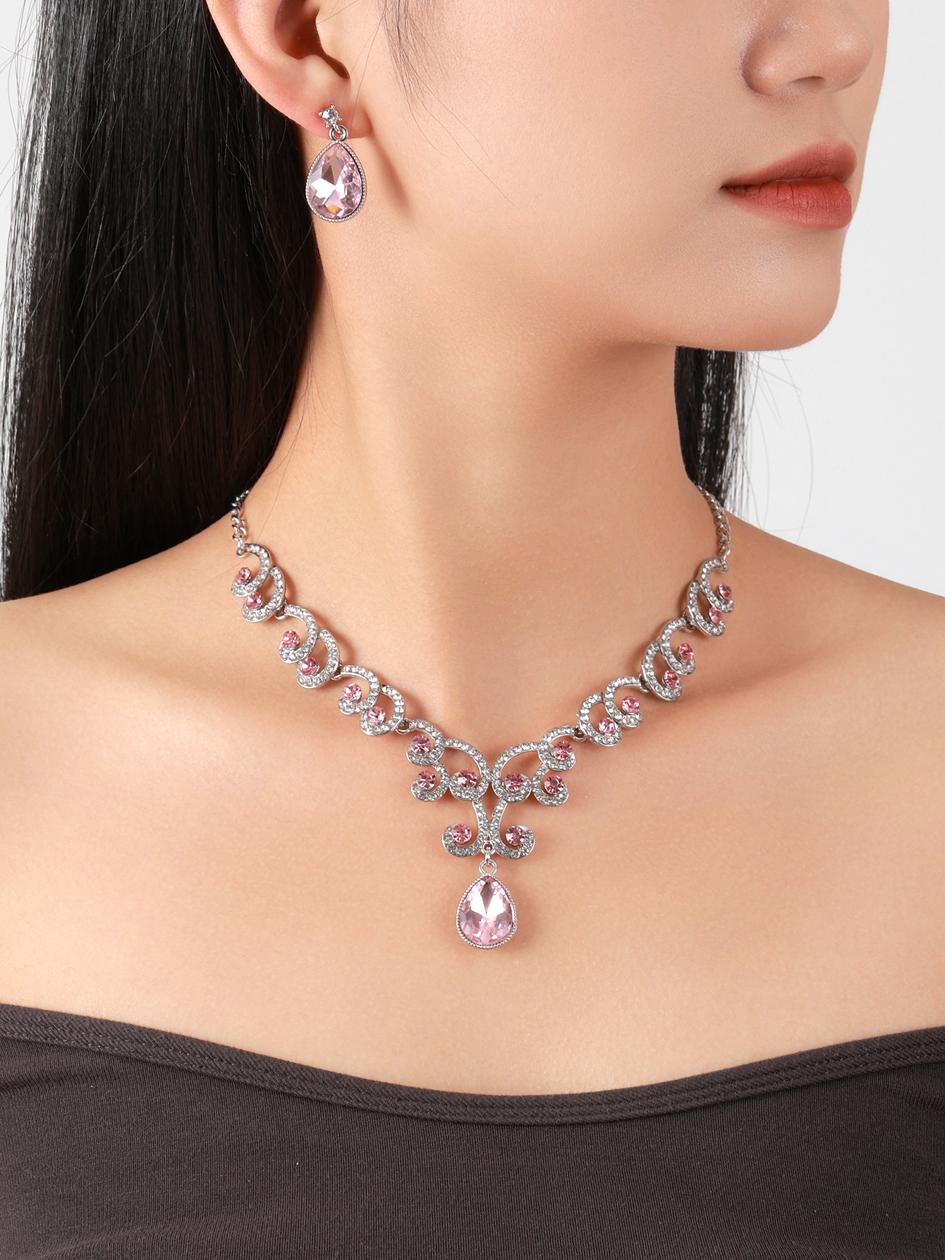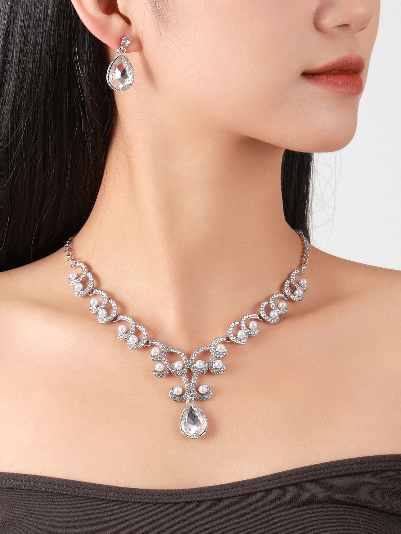 欧美首饰套链耳环吊坠水钻项链女饰品祖母绿水滴时尚新娘配饰跨境