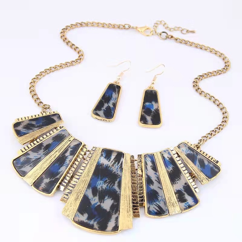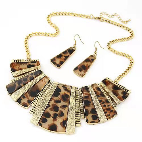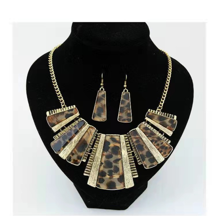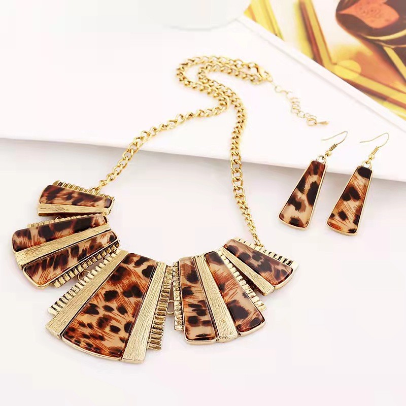 厂家直销欧美套链跨境复古豹纹长款项链毛衣链耳环