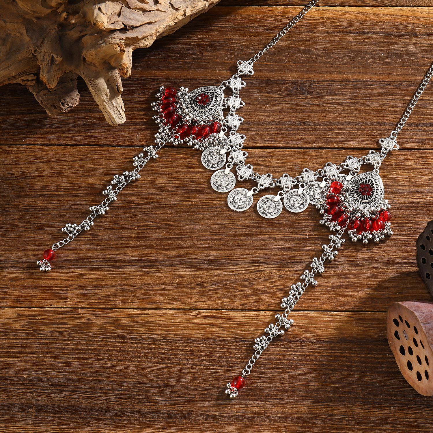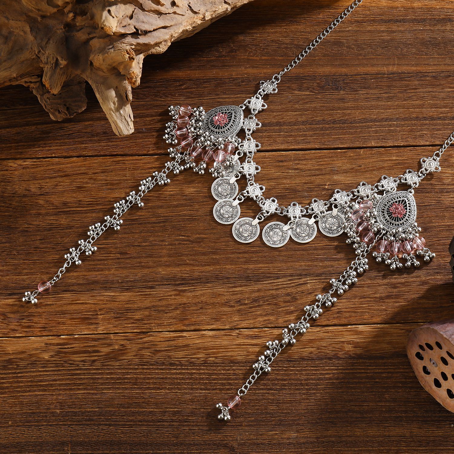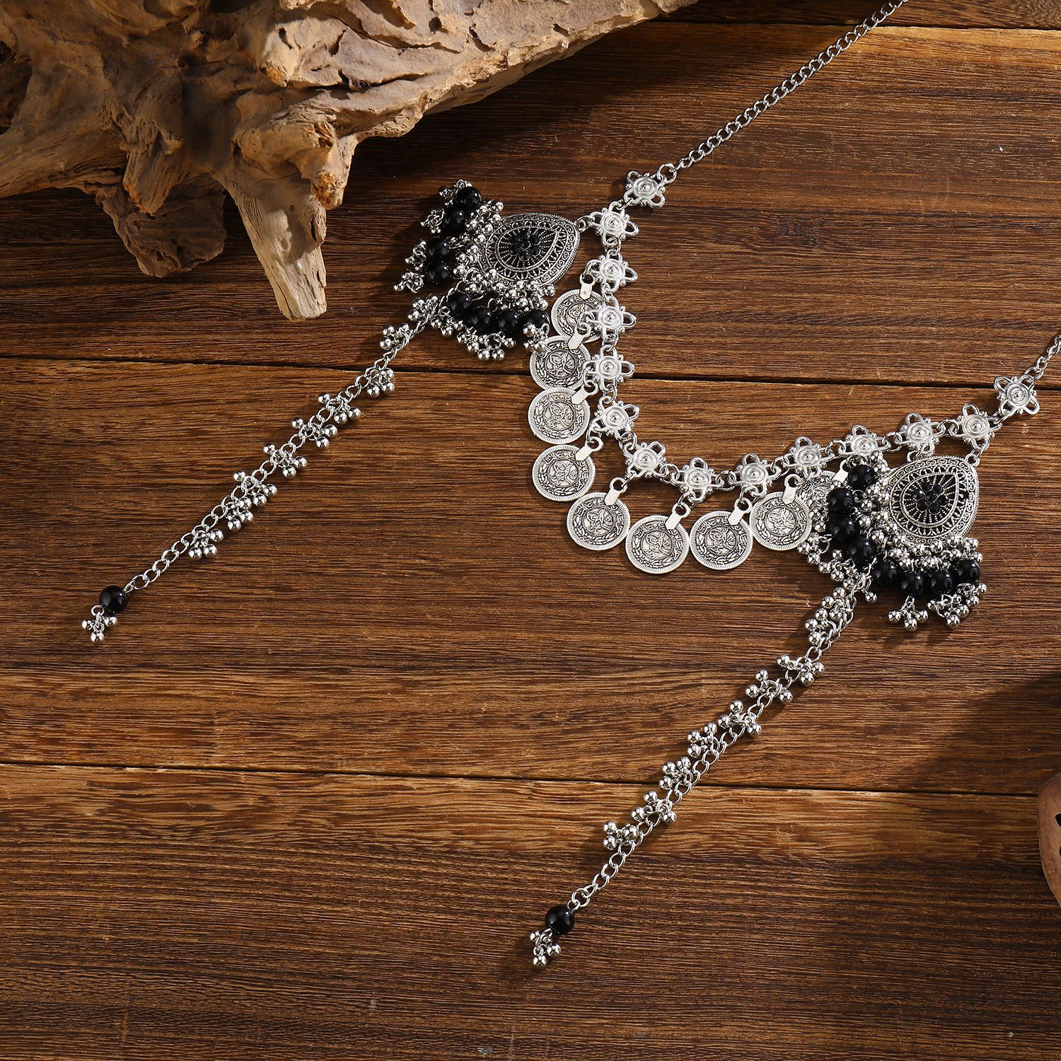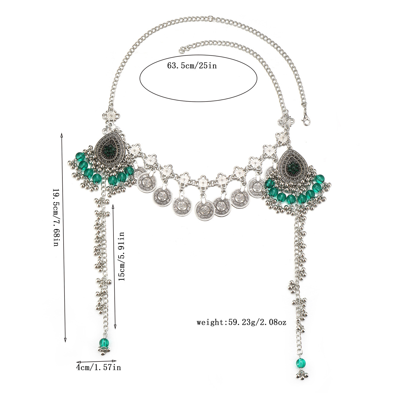 跨境热卖民族风多个古钱币发饰 水滴长款流苏额头链 设计感发链