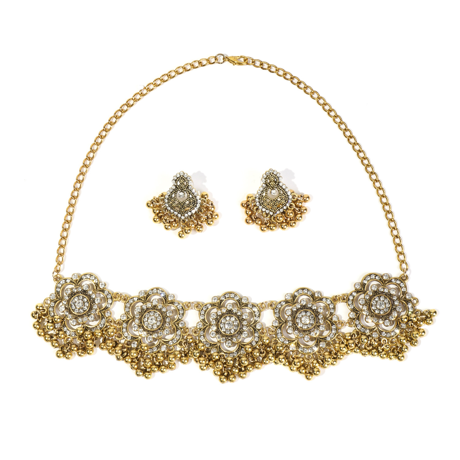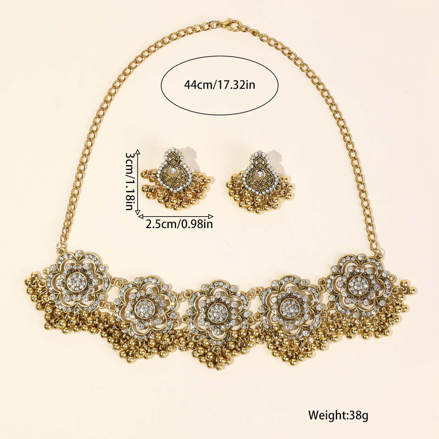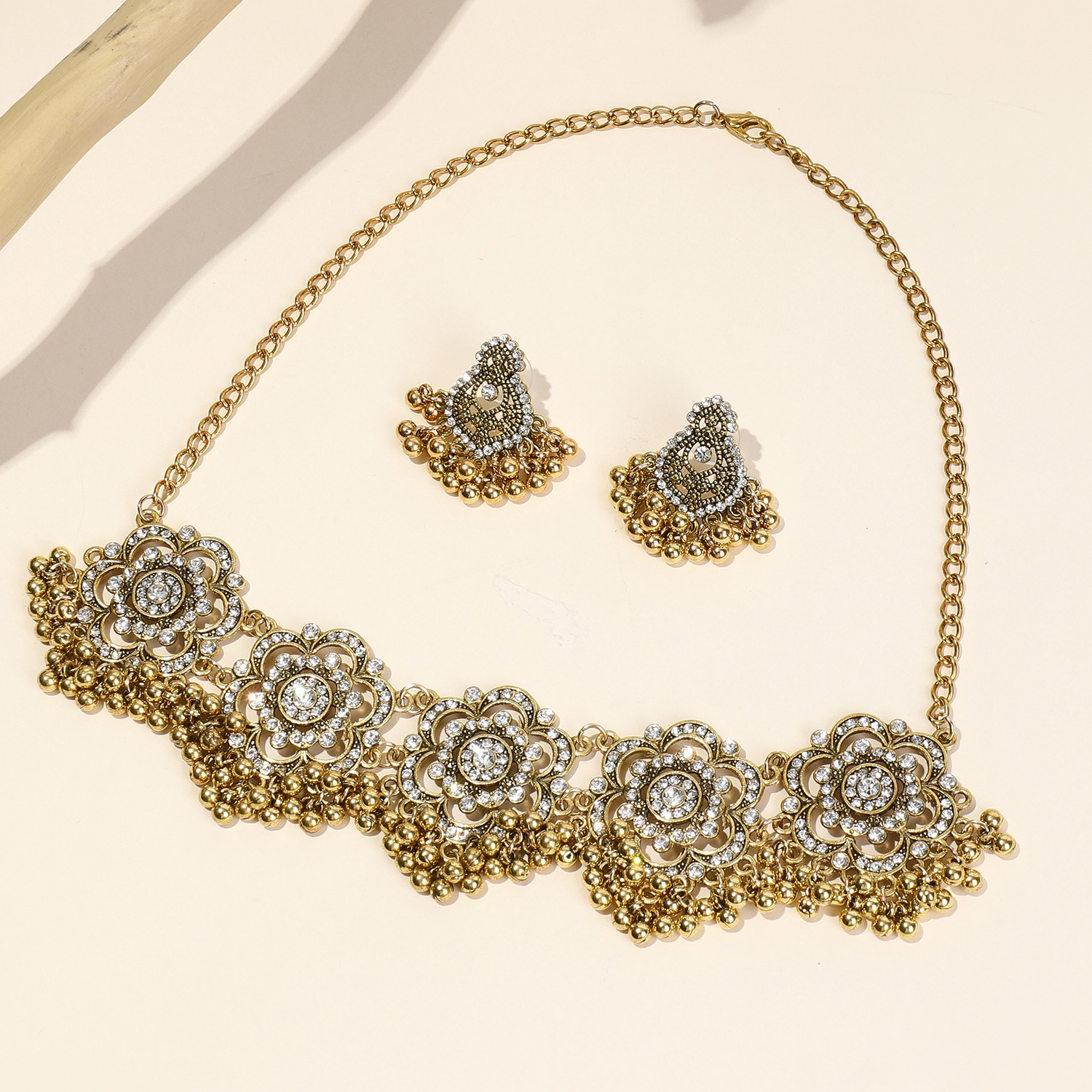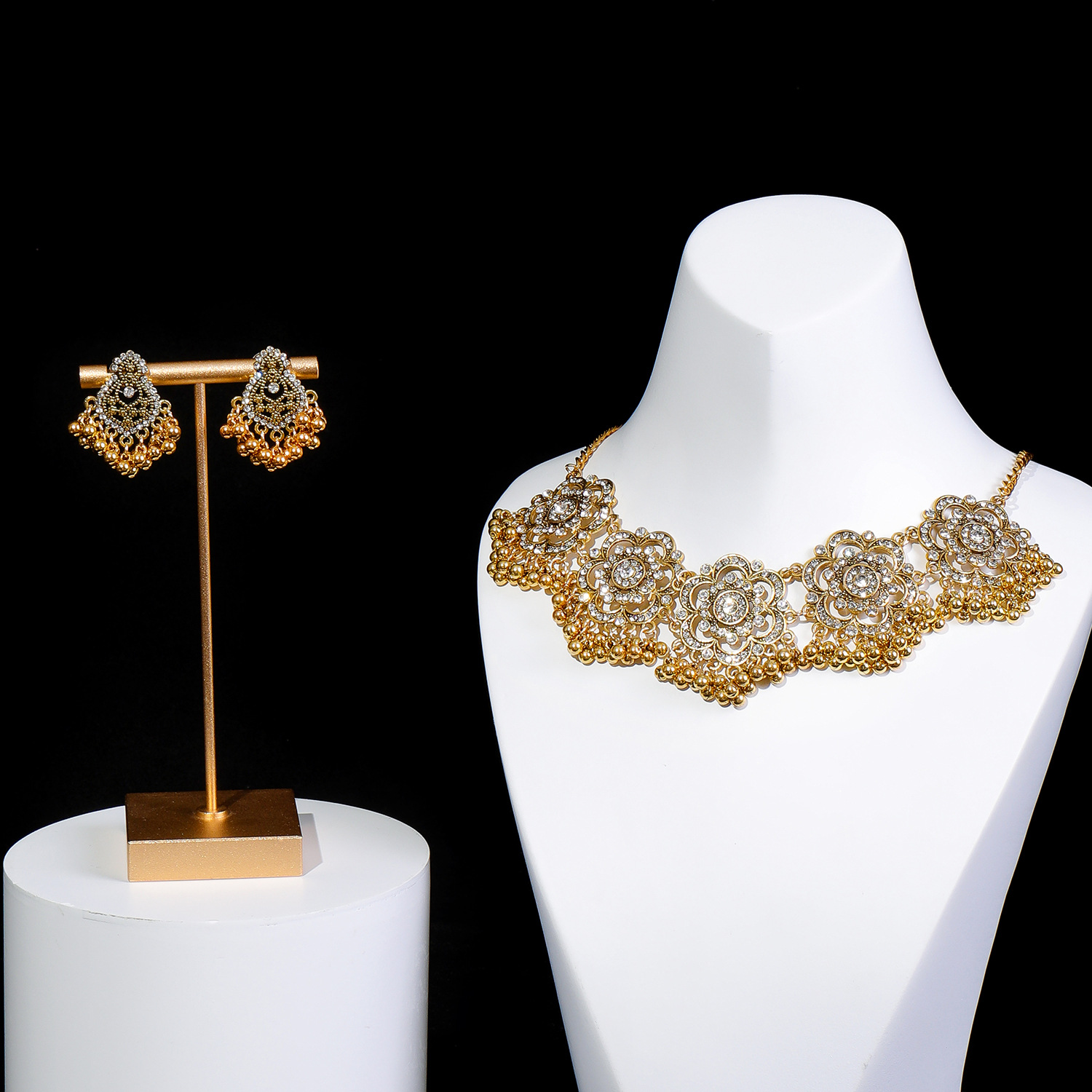 跨境欧美饰品复古水钻夸张个性项链耳环套装礼服配饰