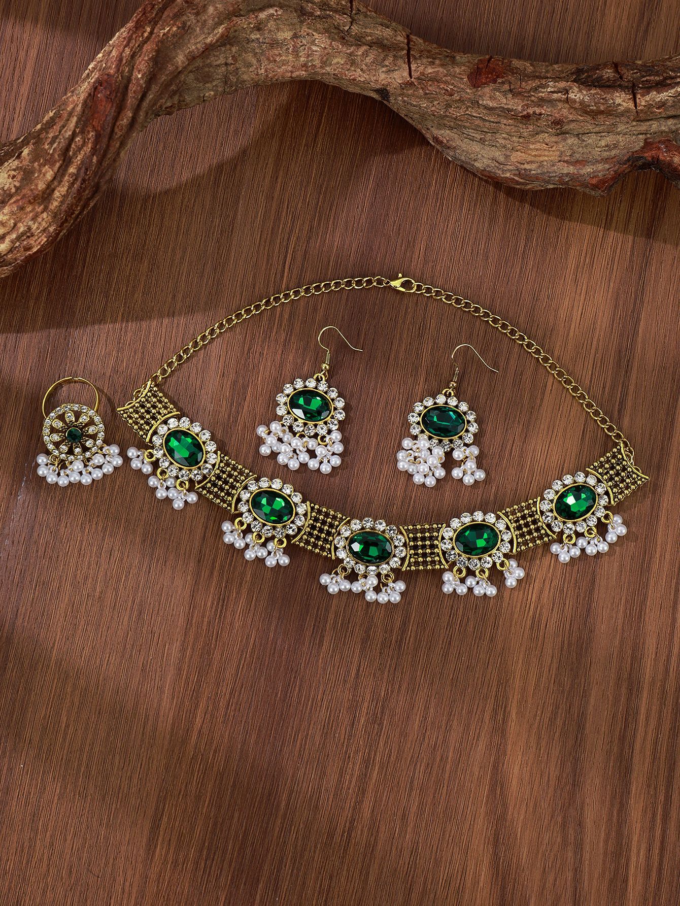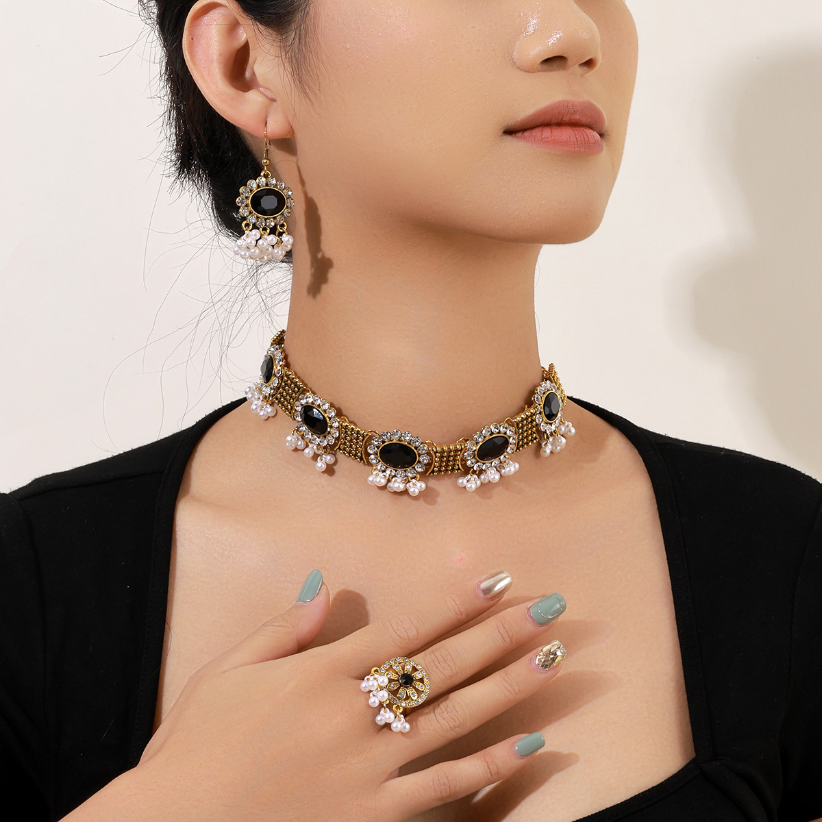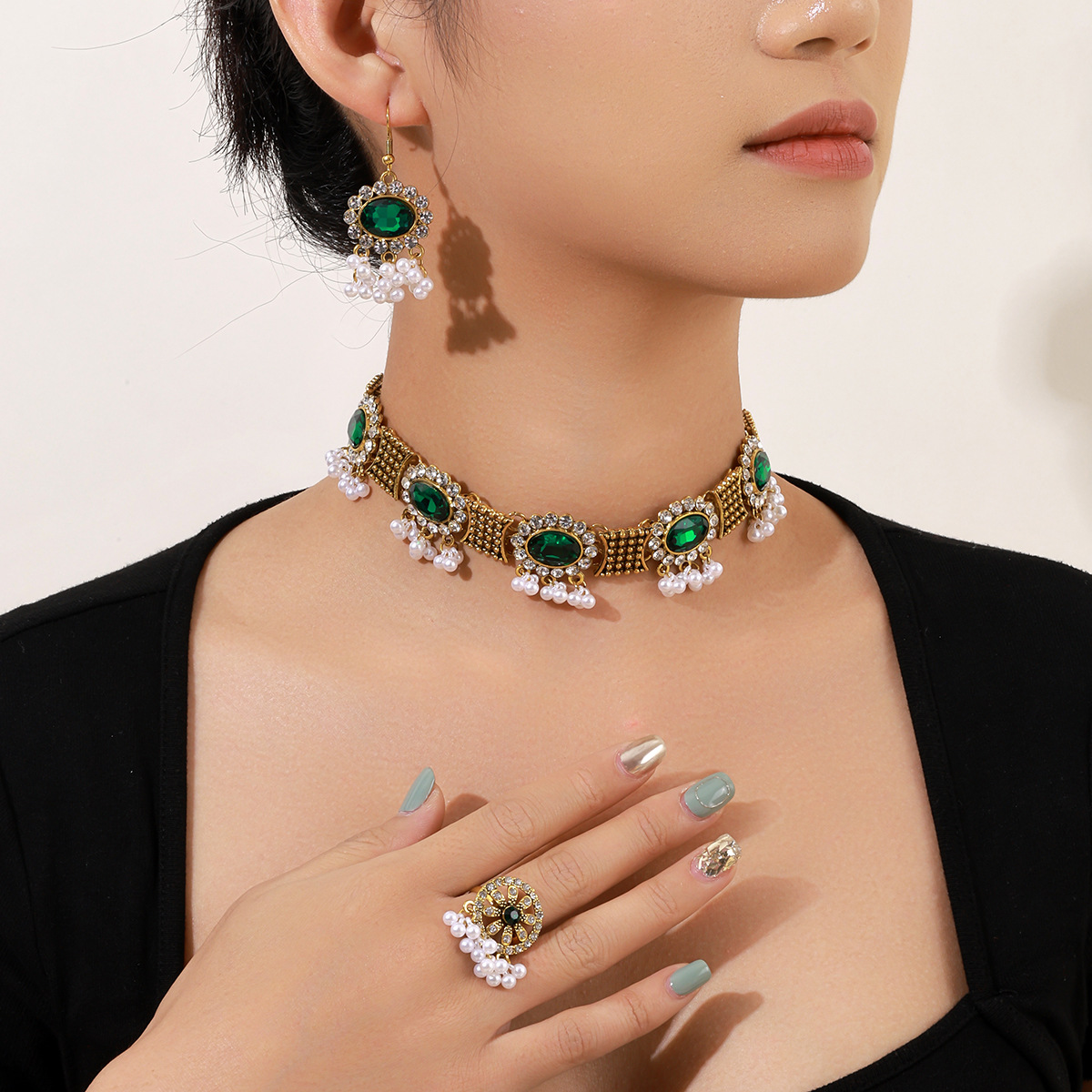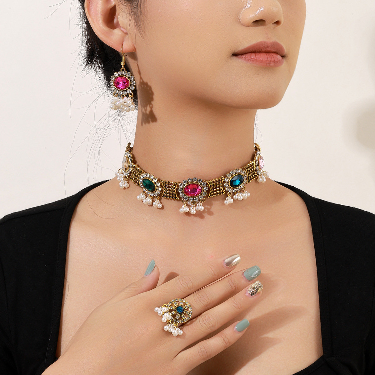 跨境热卖爆款波西米亚宝石项链耳环套装米珠流苏珍珠复古文艺气质