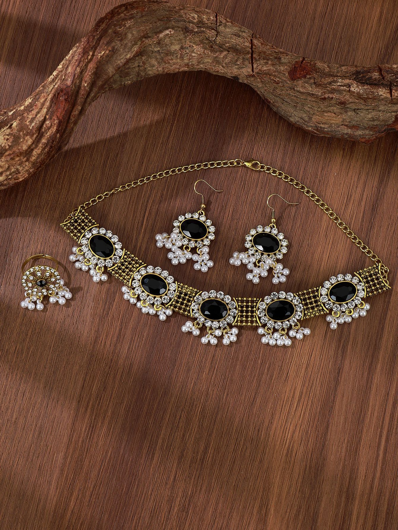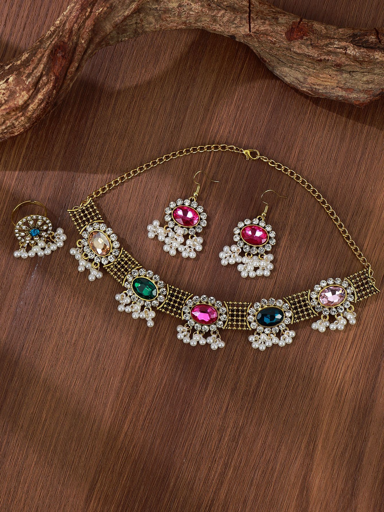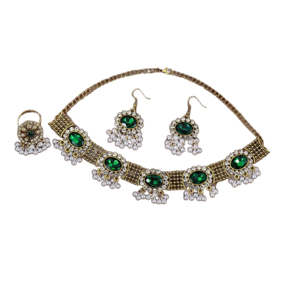 跨境热卖爆款波西米亚宝石项链耳环套装米珠流苏珍珠复古文艺气质