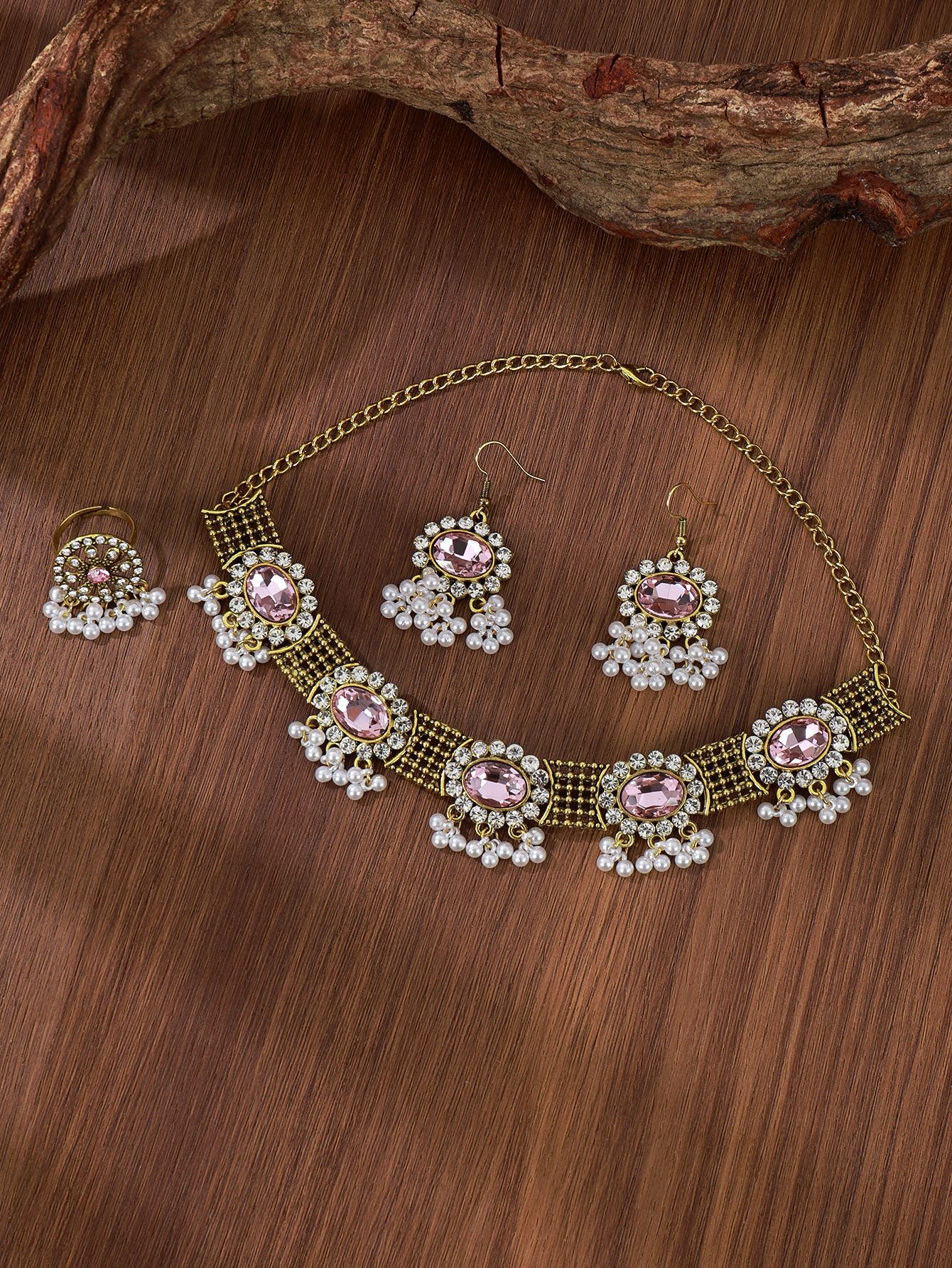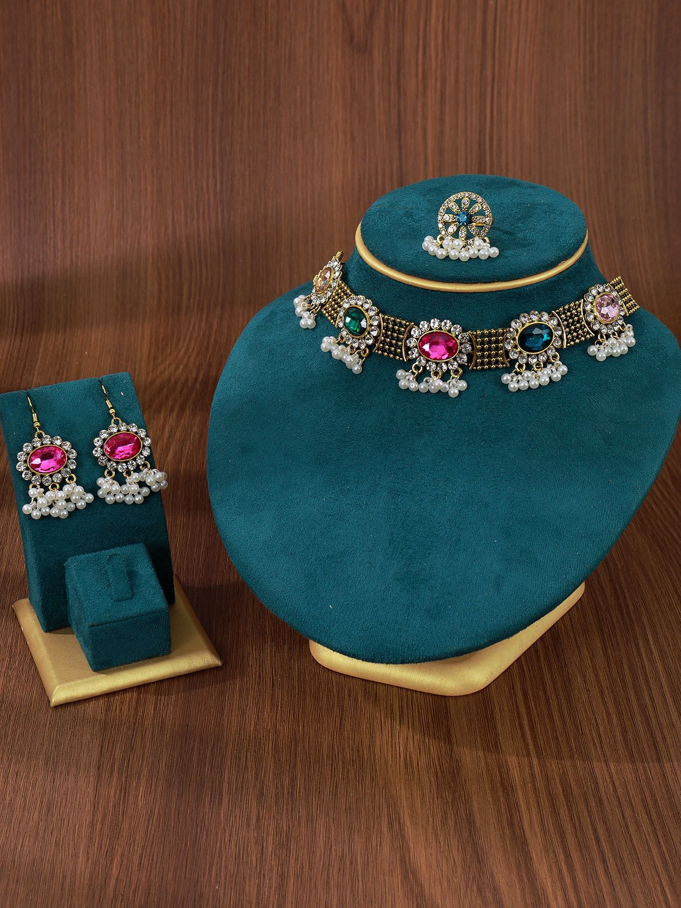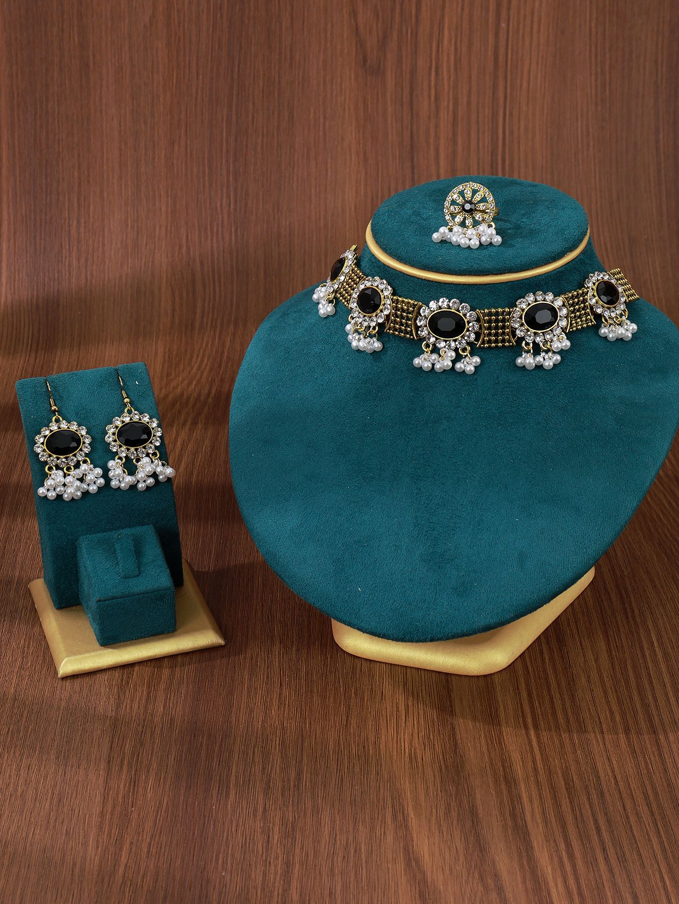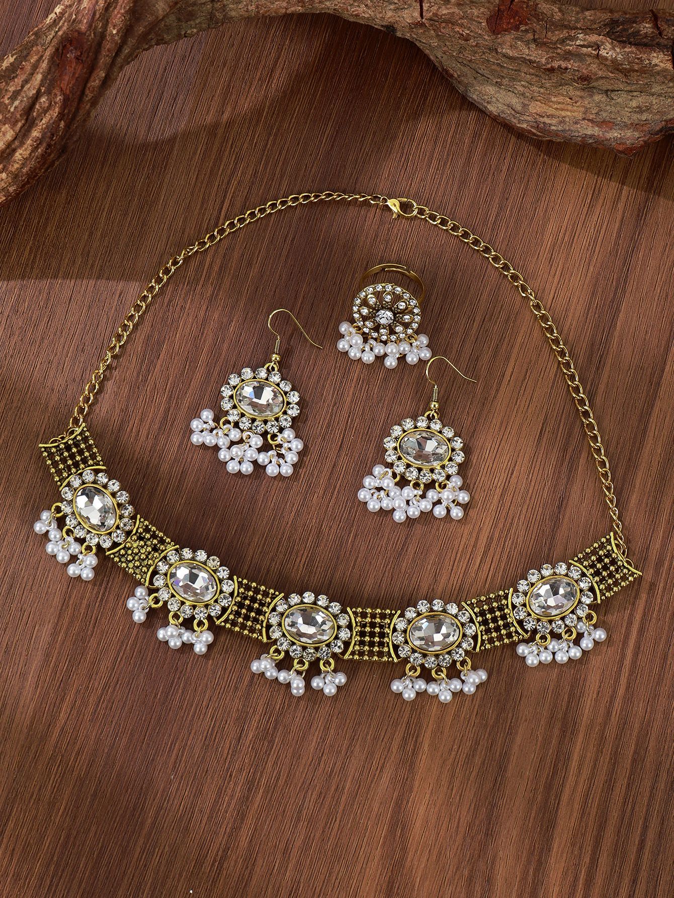 跨境热卖爆款波西米亚宝石项链耳环套装米珠流苏珍珠复古文艺气质