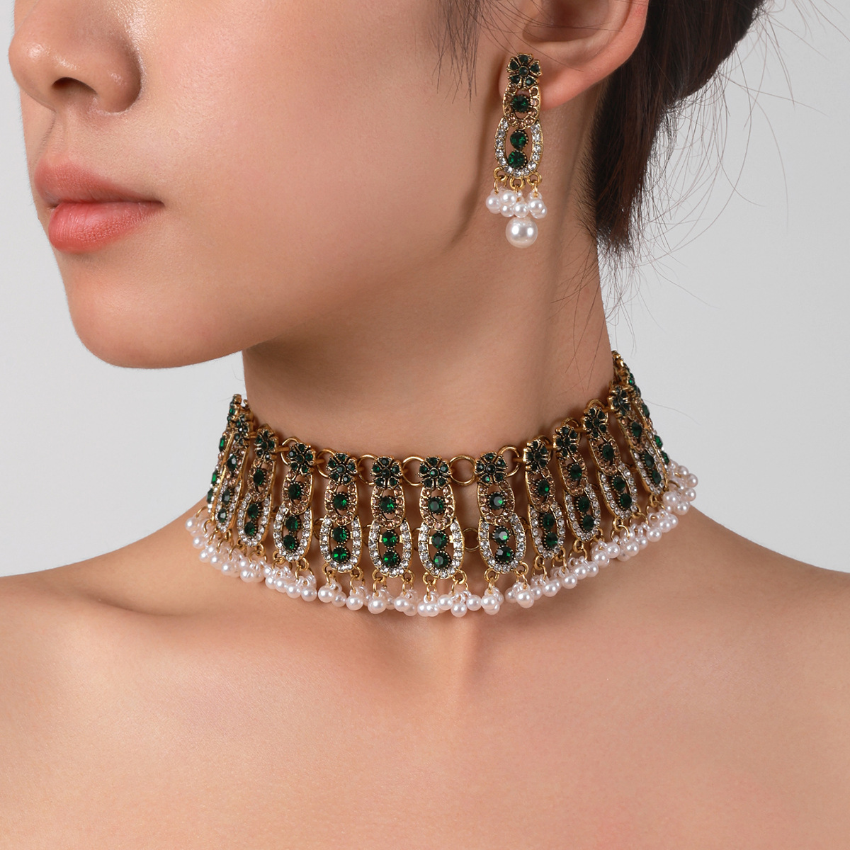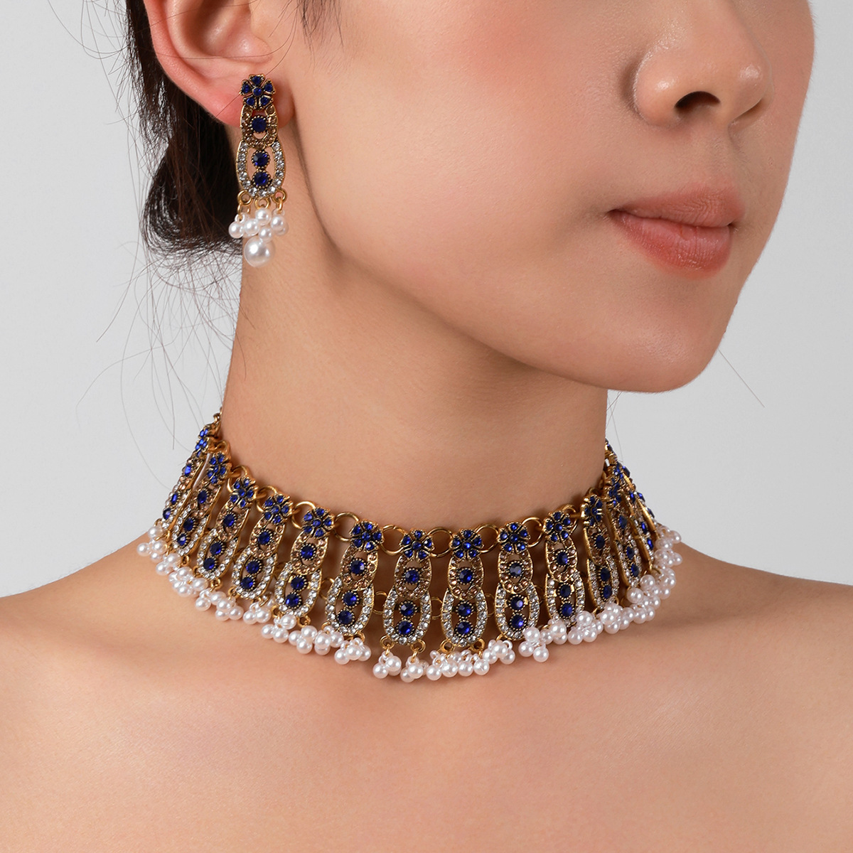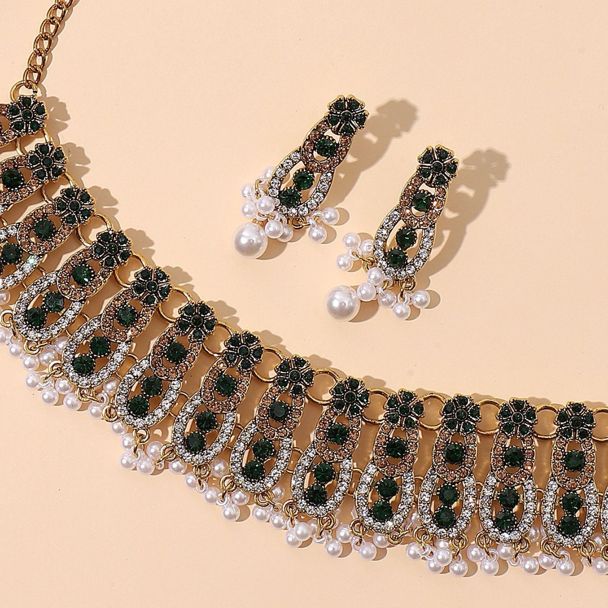 跨境欧美时尚复古中东风多层古金彩钻宝石夸张气质首饰套装