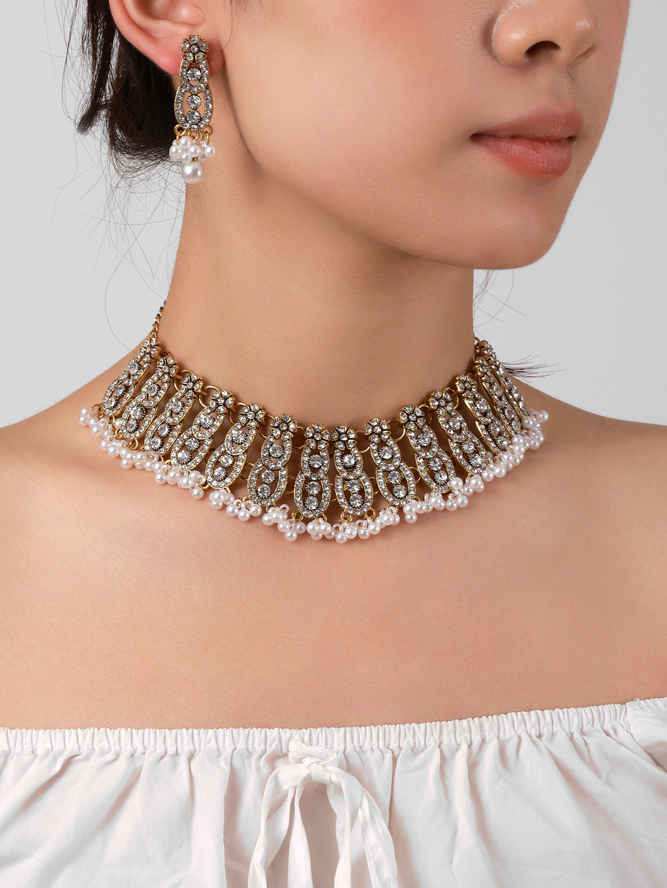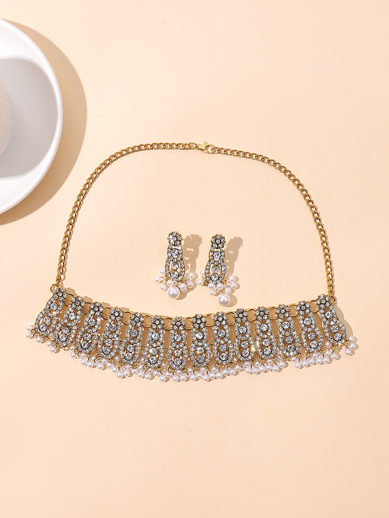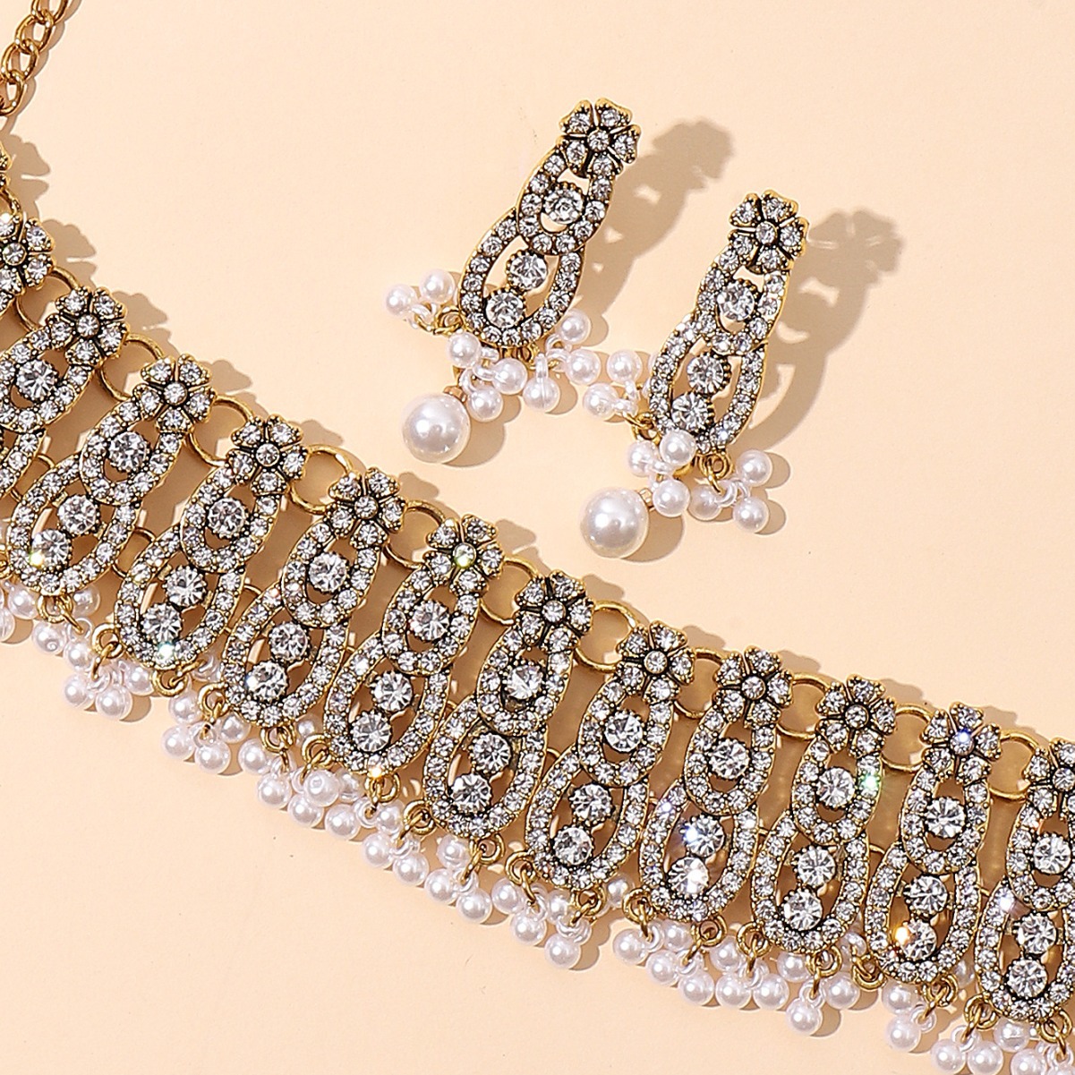 跨境欧美时尚复古中东风多层古金彩钻宝石夸张气质首饰套装