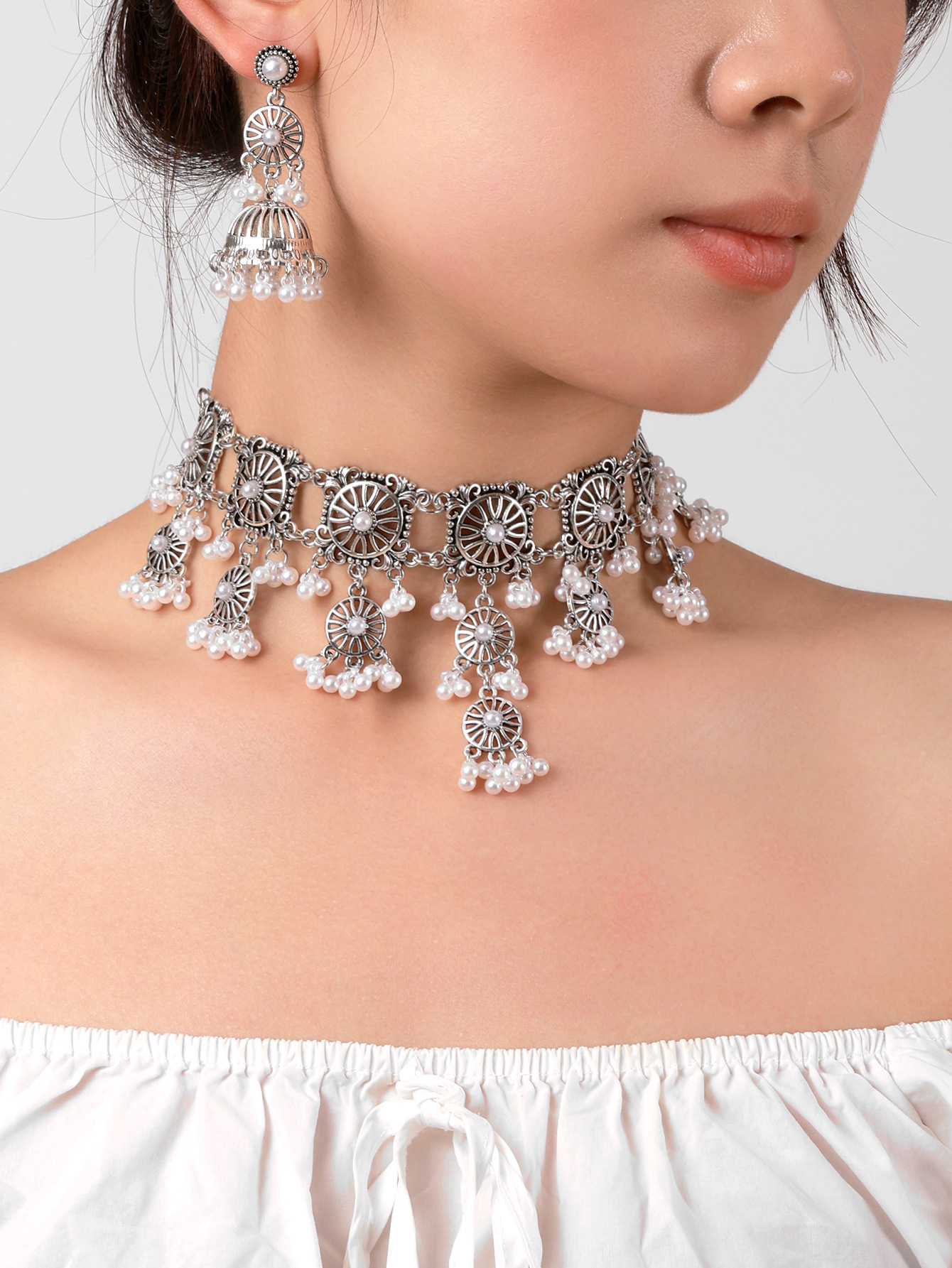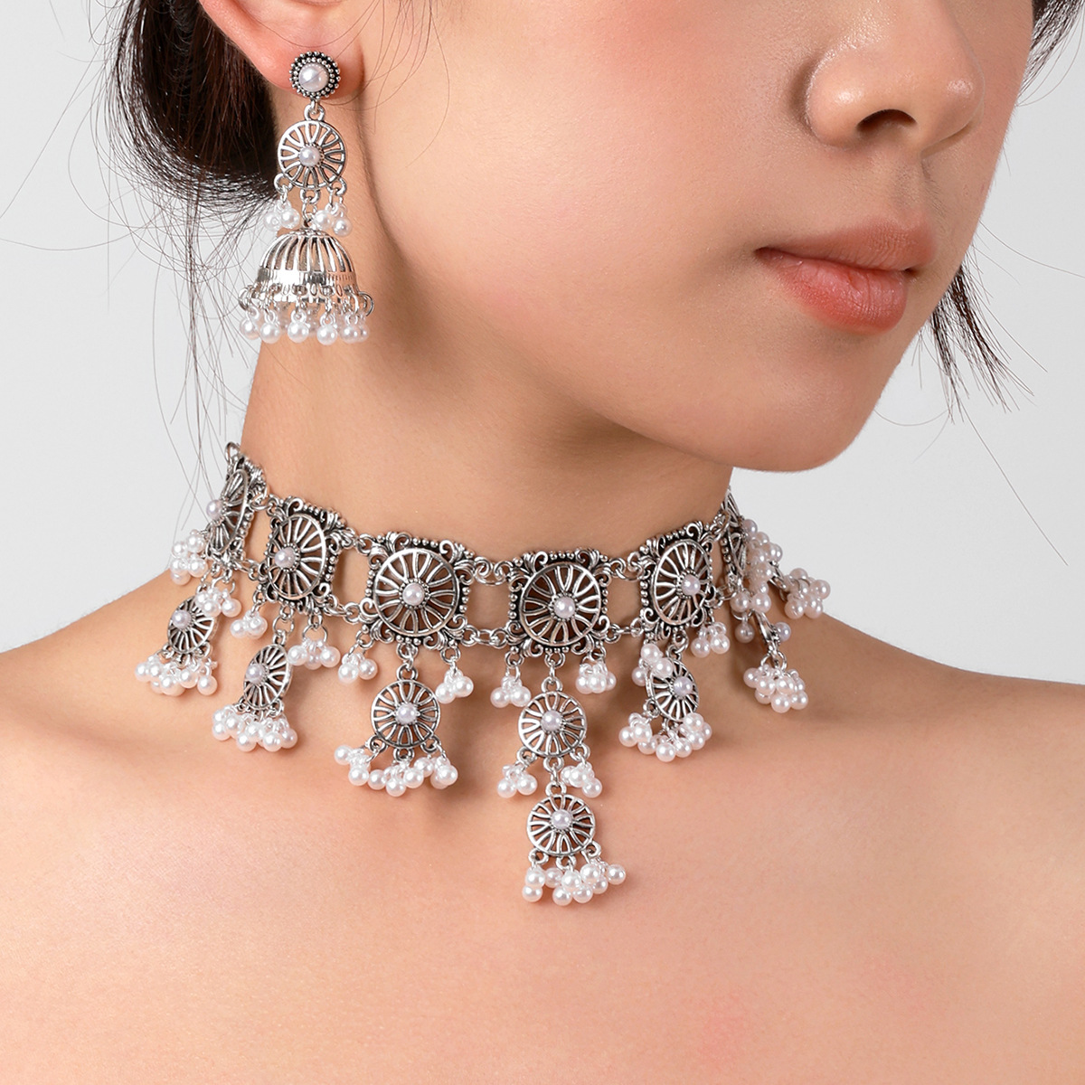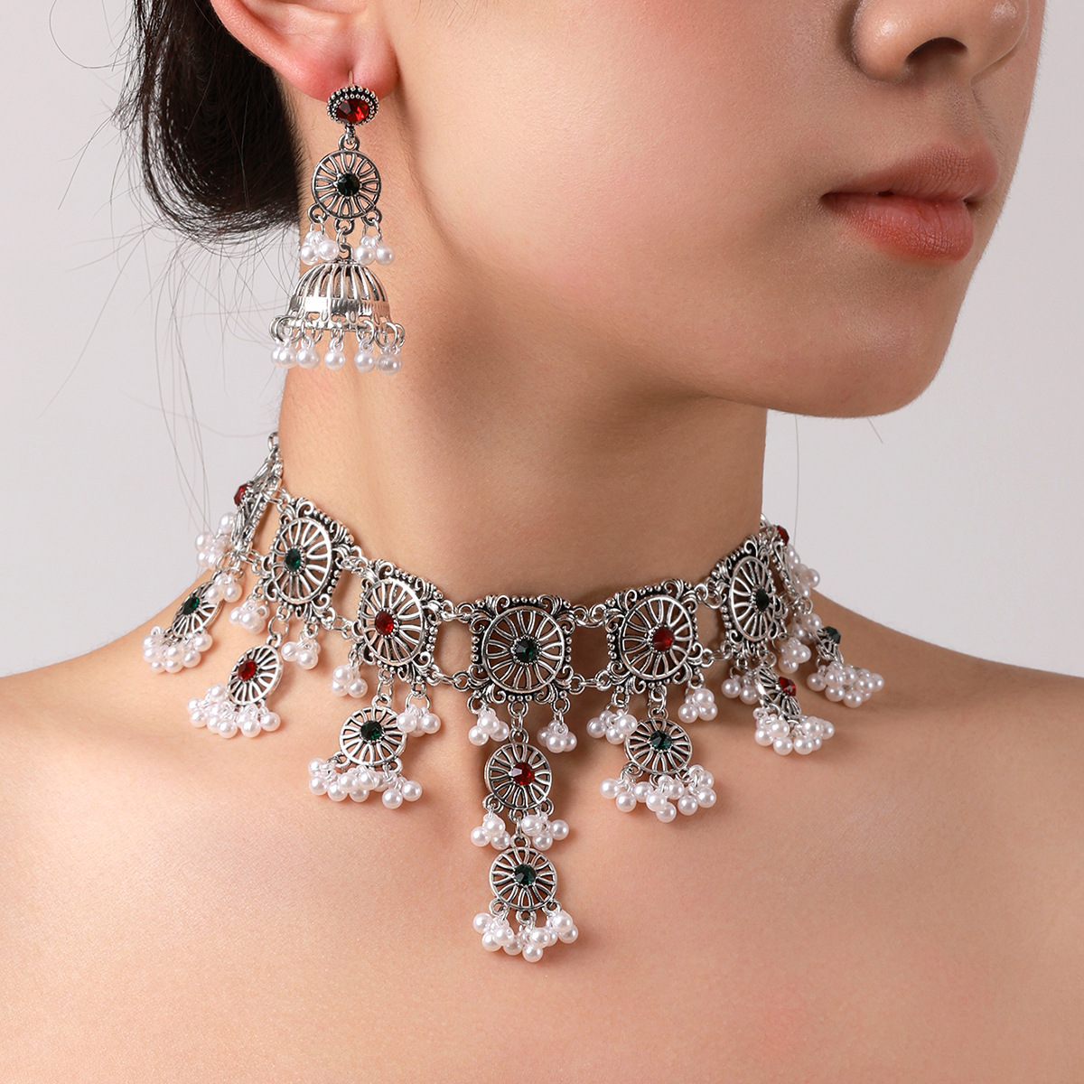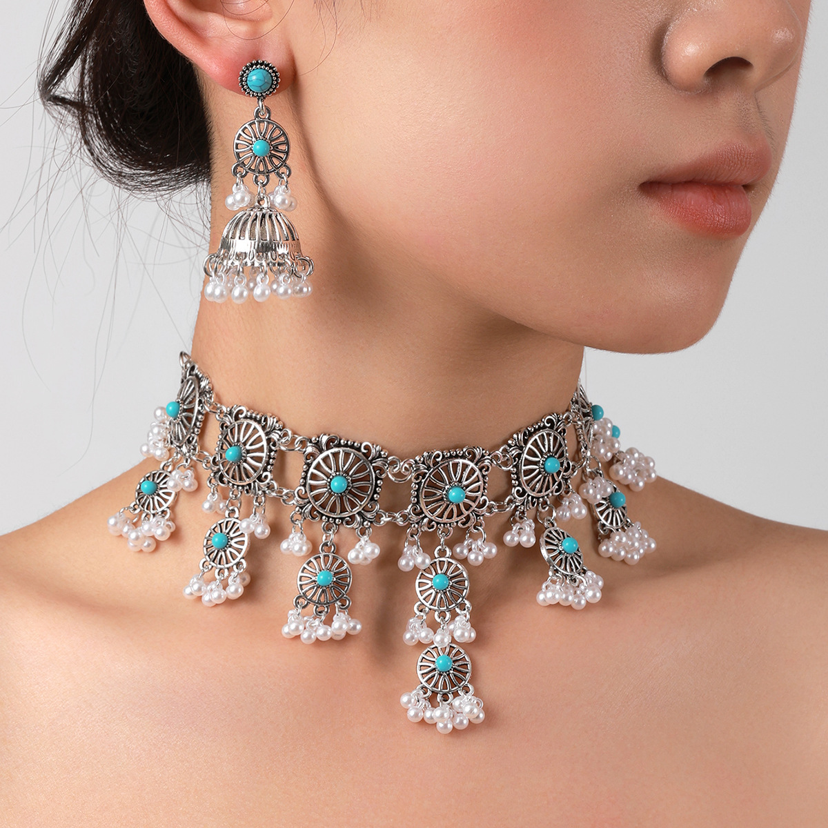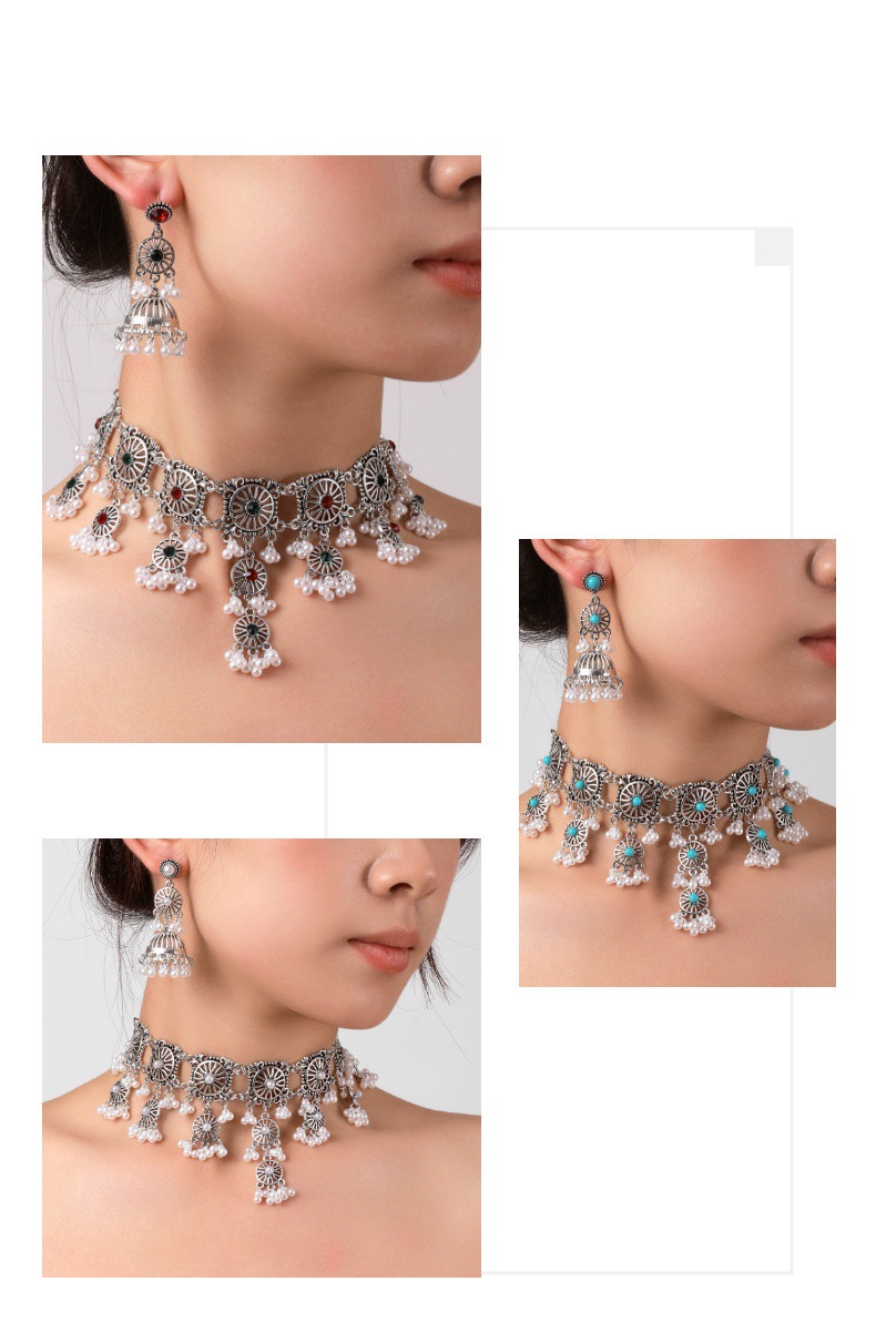 欧美时尚复古镂空滴穗气质夸张女项链耳环女首饰套装