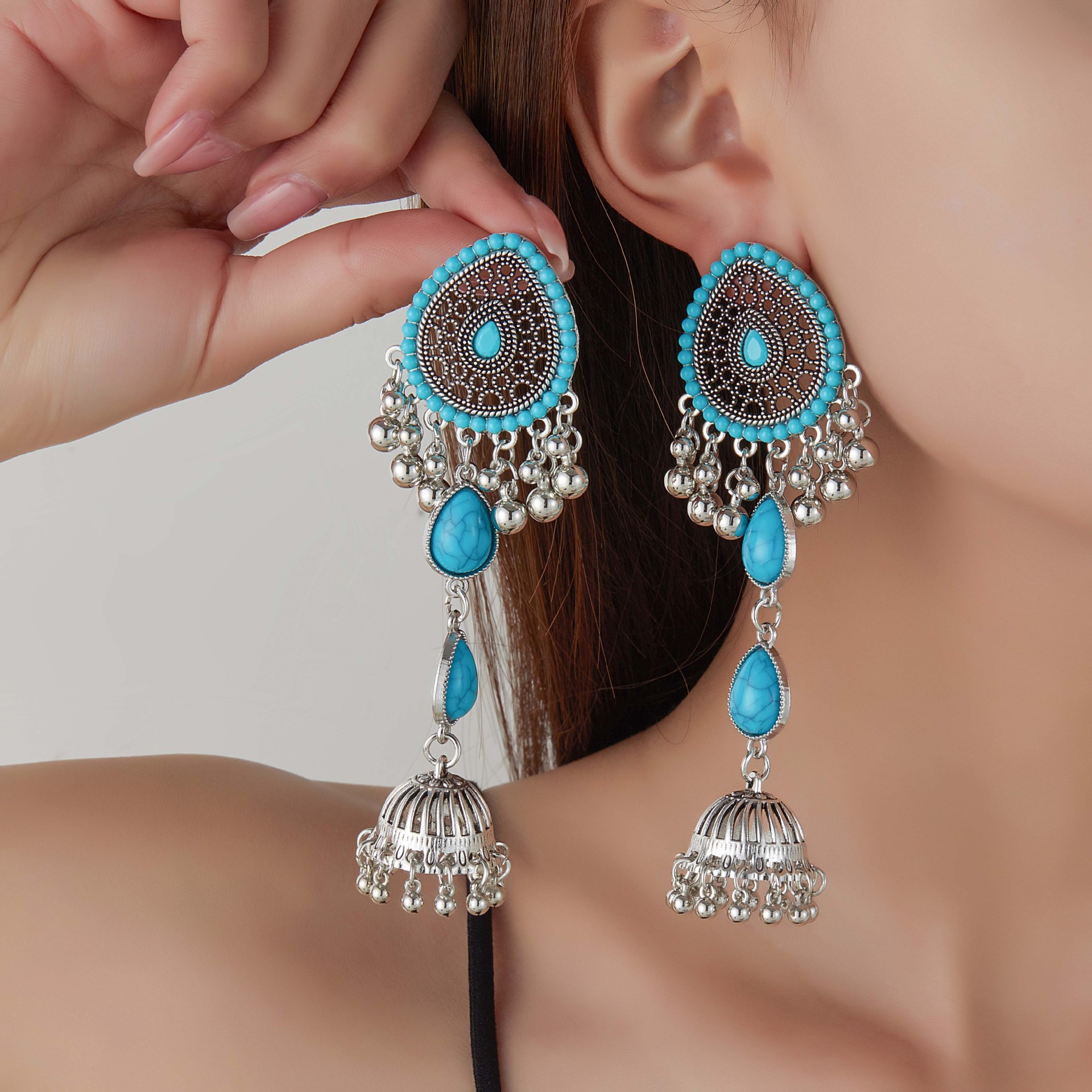 跨境热卖民族风夸张个性长款耳环 异域风情耳环轻奢高级感耳饰