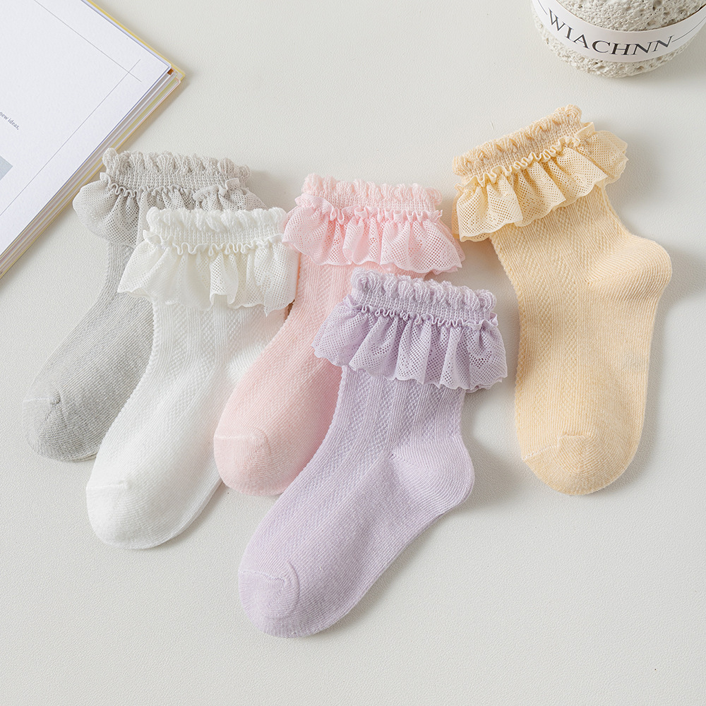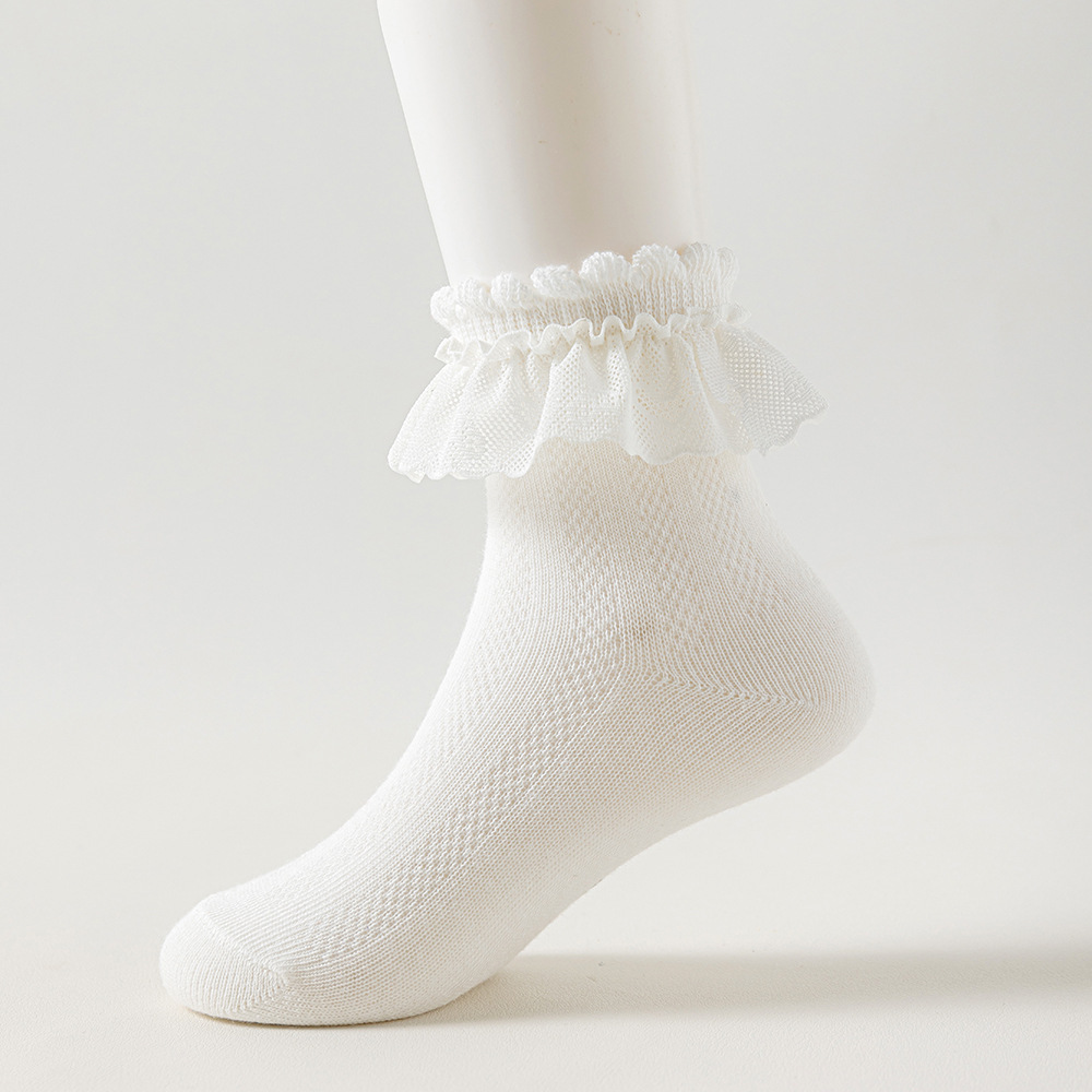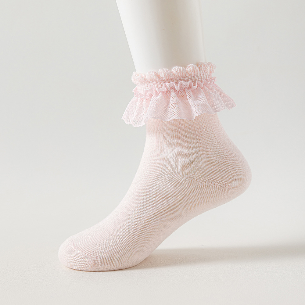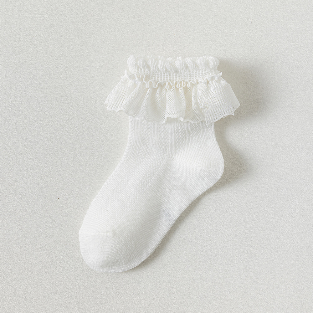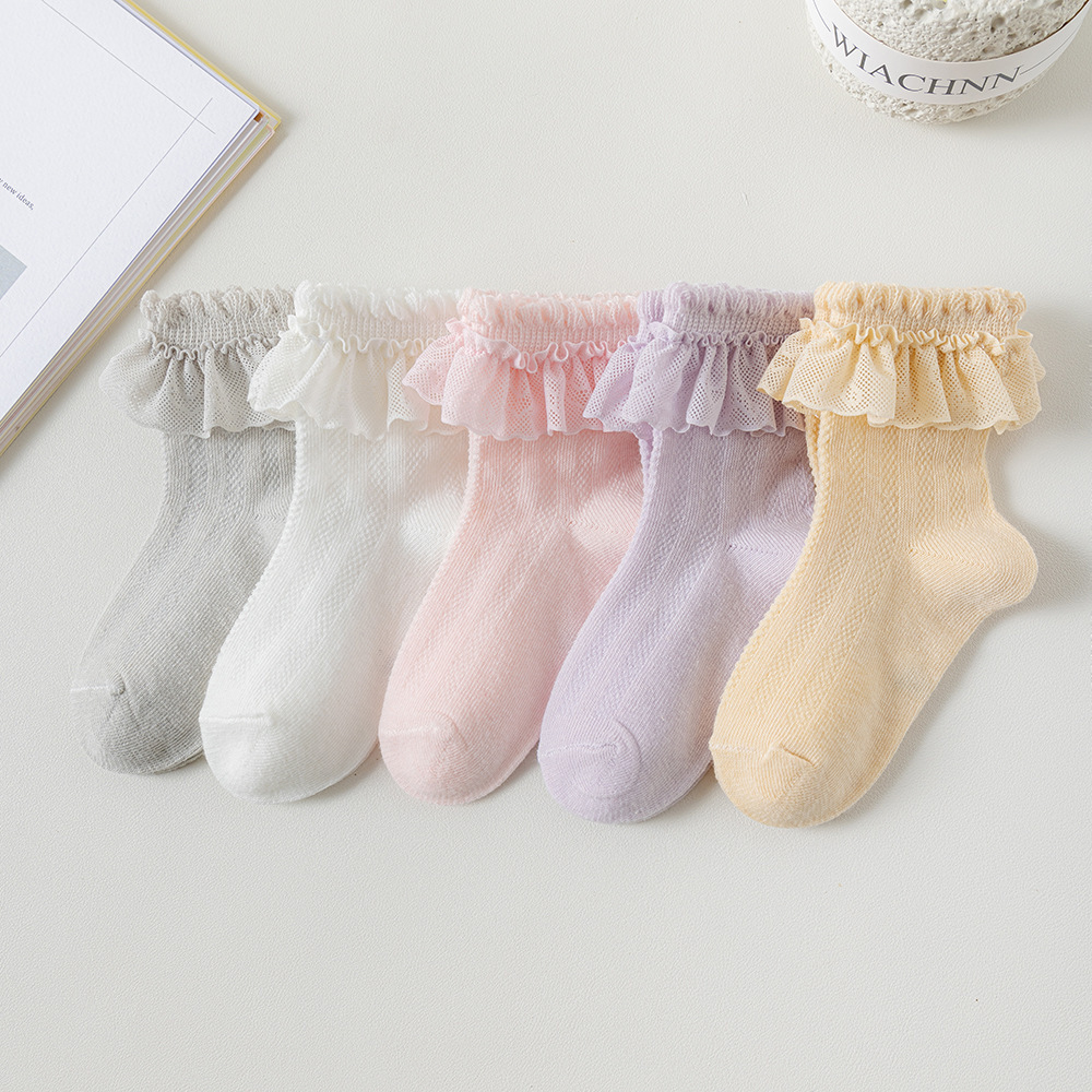 儿童袜子蕾丝花边公主风中筒袜网眼透气可爱宝宝女童袜春夏