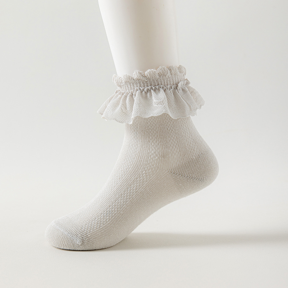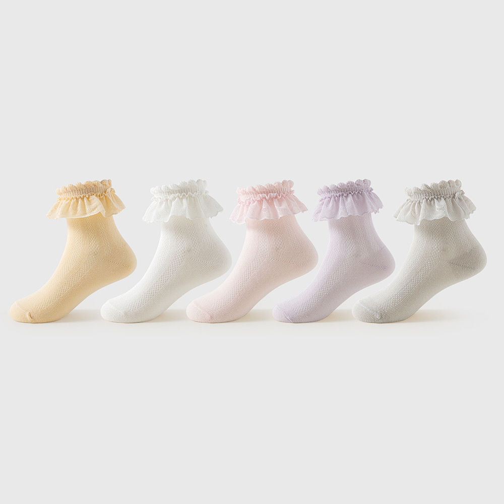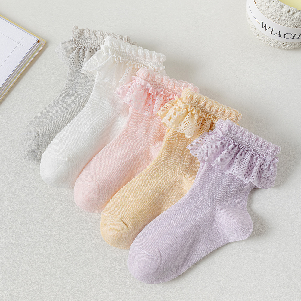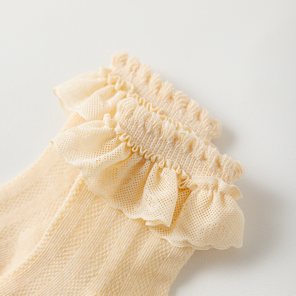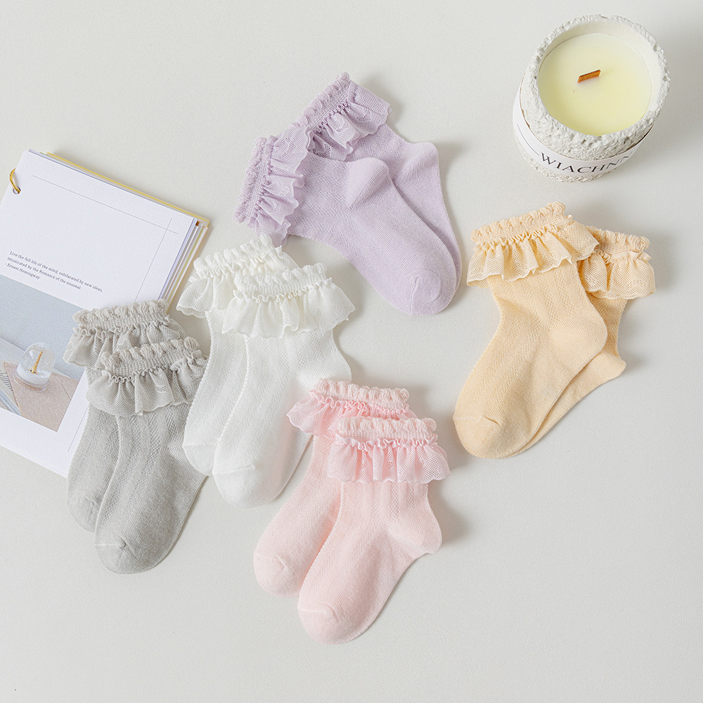 儿童袜子蕾丝花边公主风中筒袜网眼透气可爱宝宝女童袜春夏