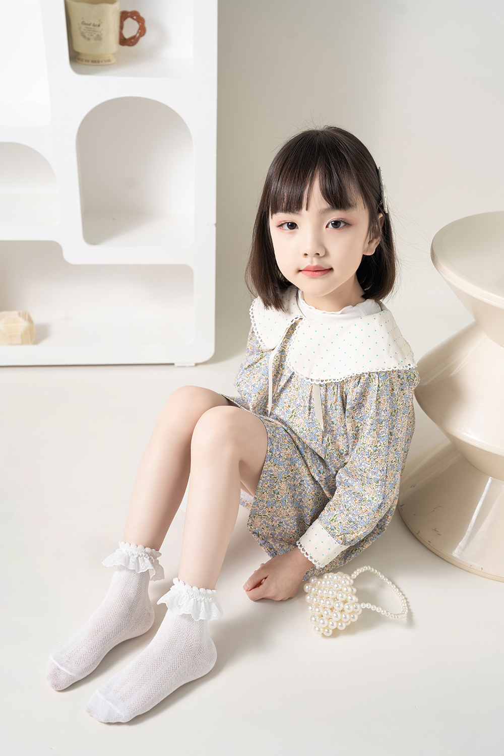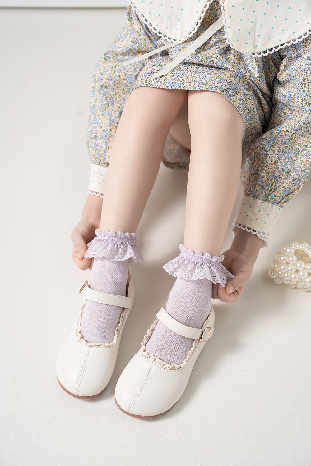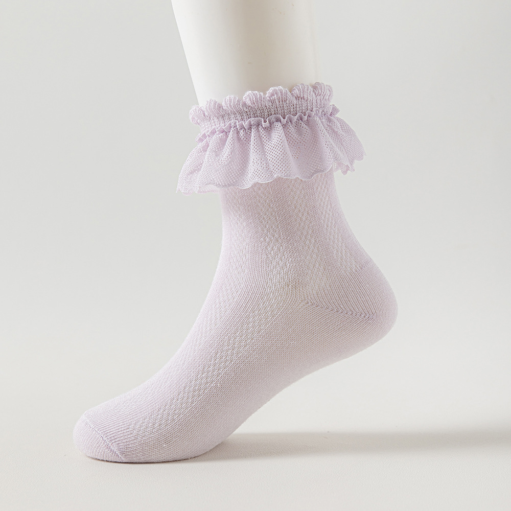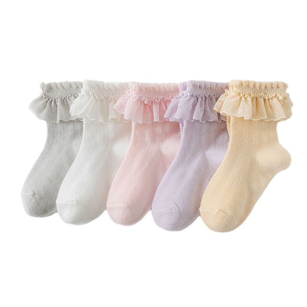 儿童袜子蕾丝花边公主风中筒袜网眼透气可爱宝宝女童袜春夏
