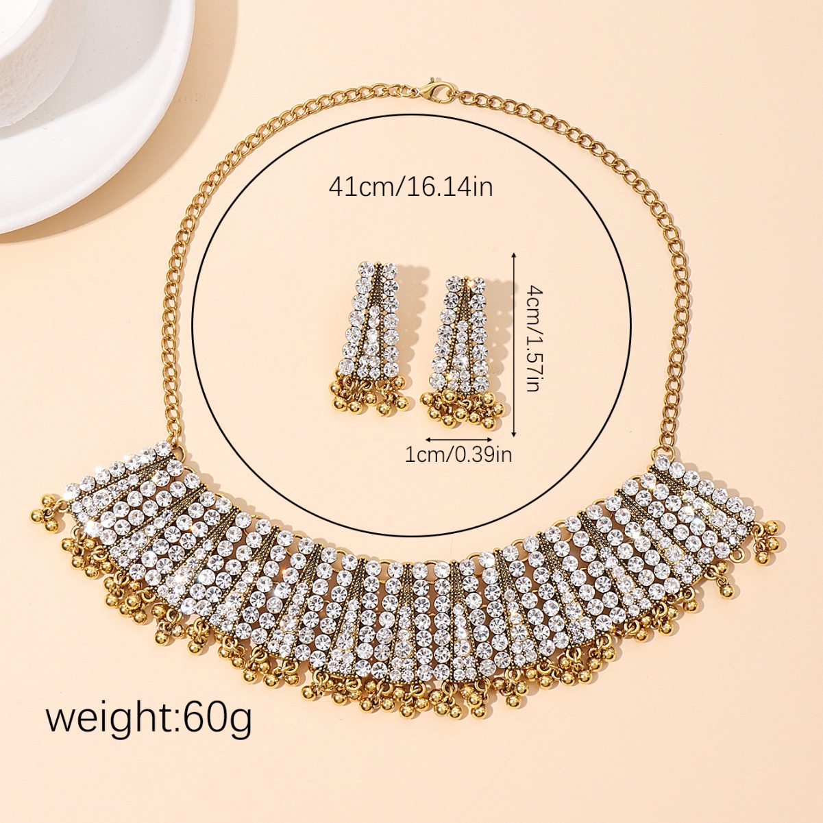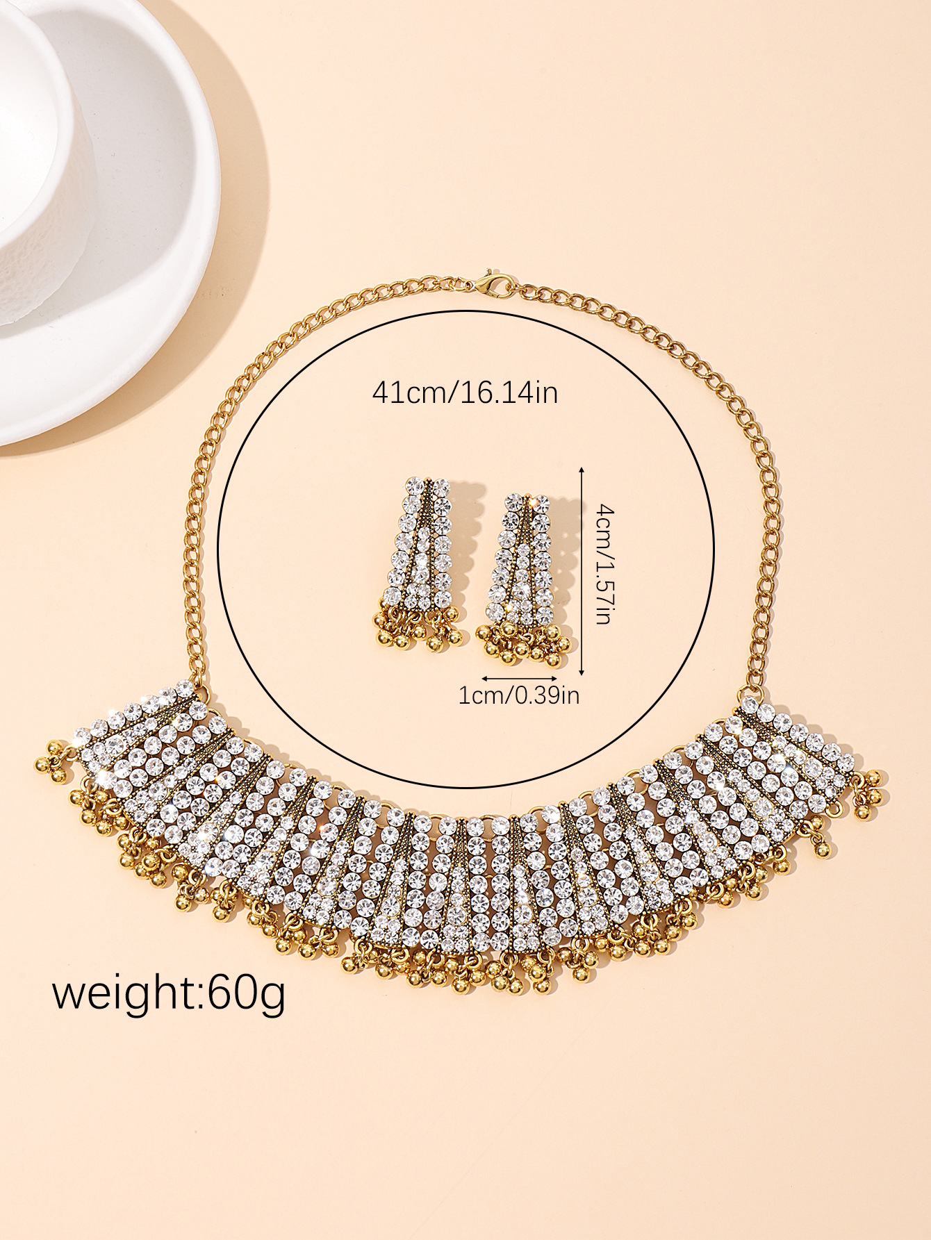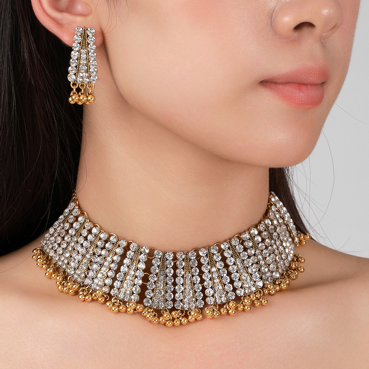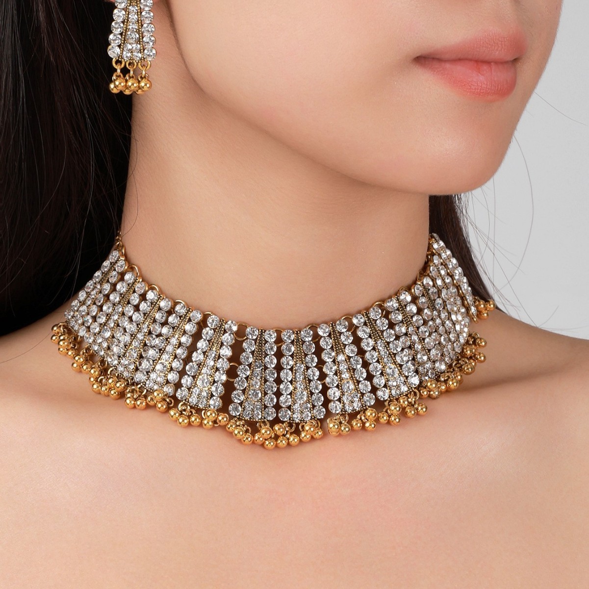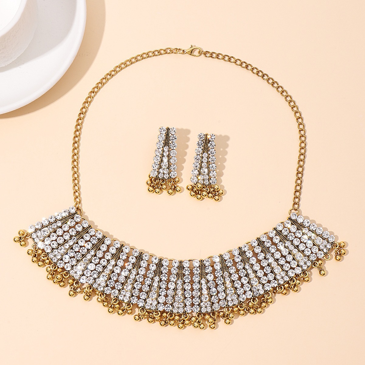 跨境欧美复夸张镶钻吊坠珍珠流苏锁骨颈链宴会礼服配饰品