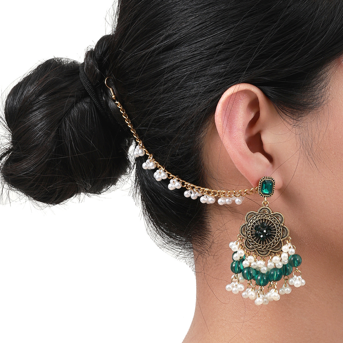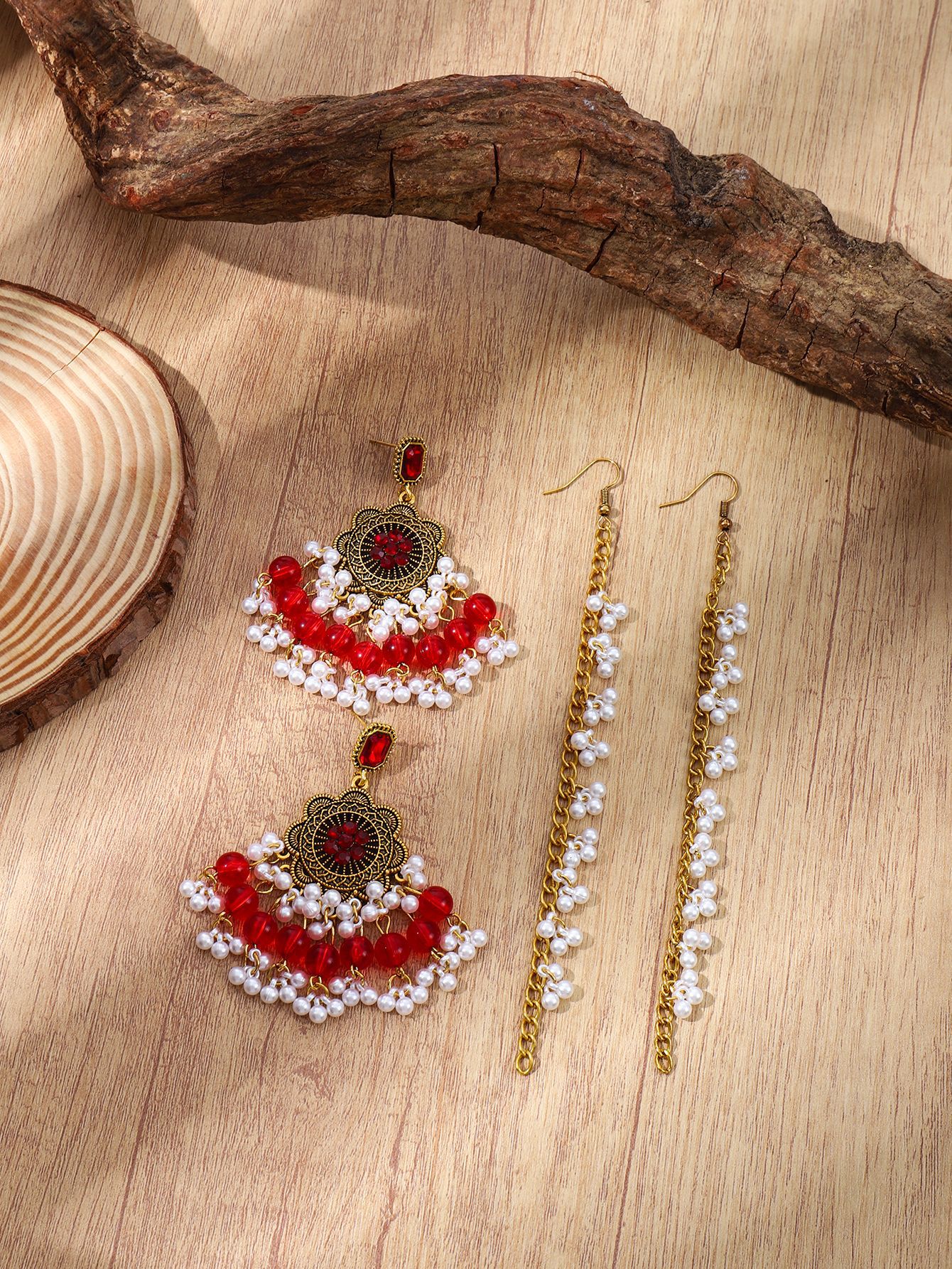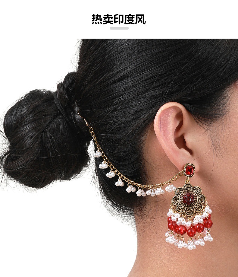 波西米亚风跨境复古民族风时尚潮流印度异域风情珍珠流苏耳环女可