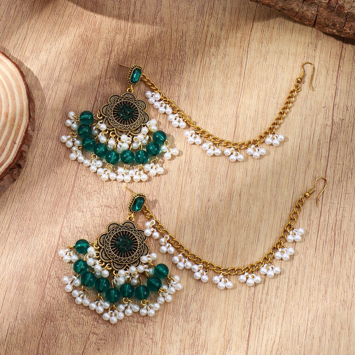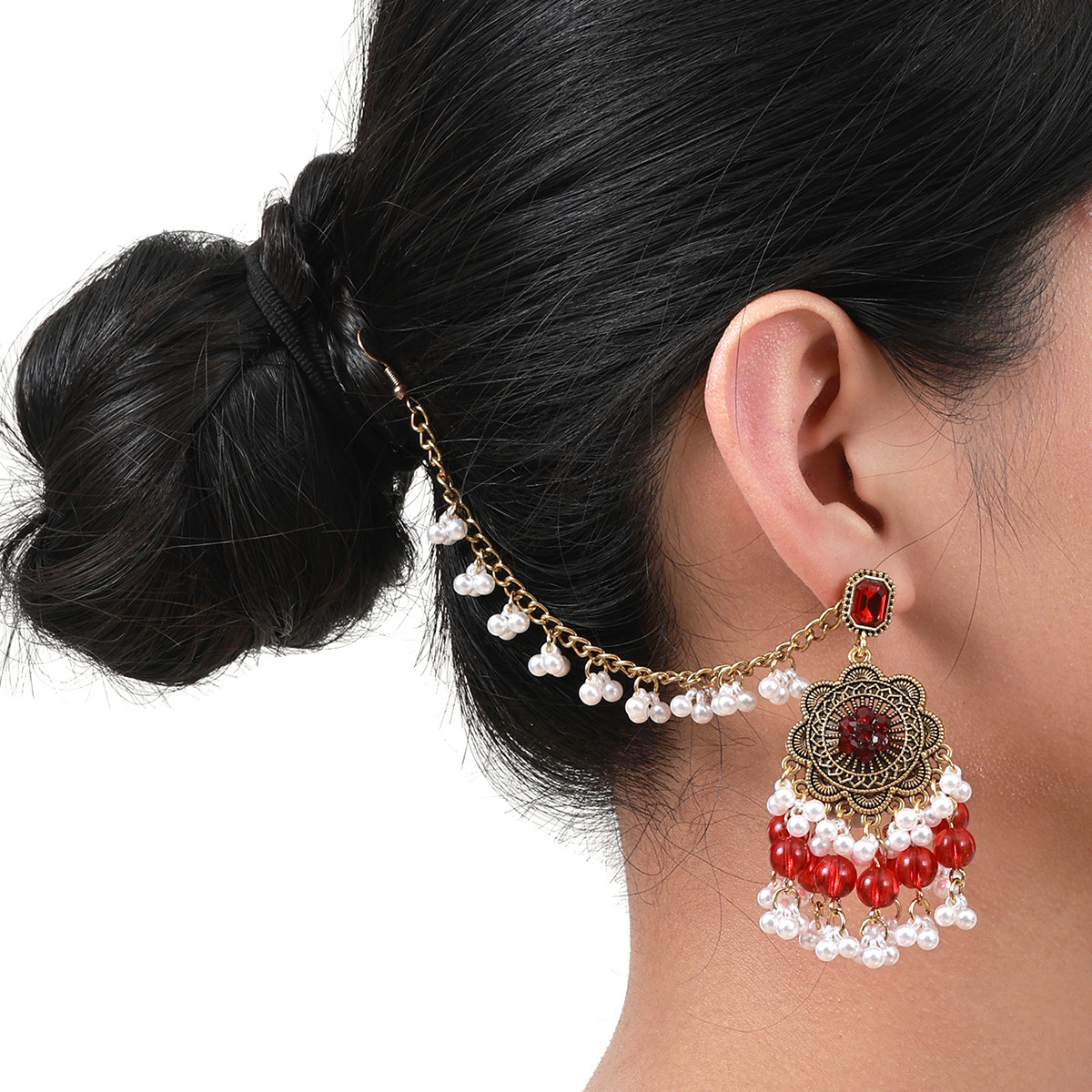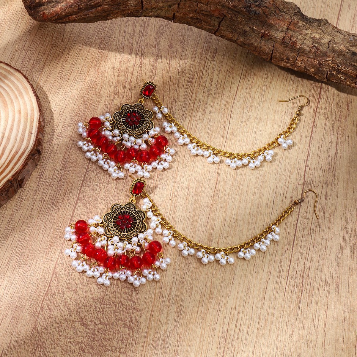 波西米亚风跨境复古民族风时尚潮流印度异域风情珍珠流苏耳环女可