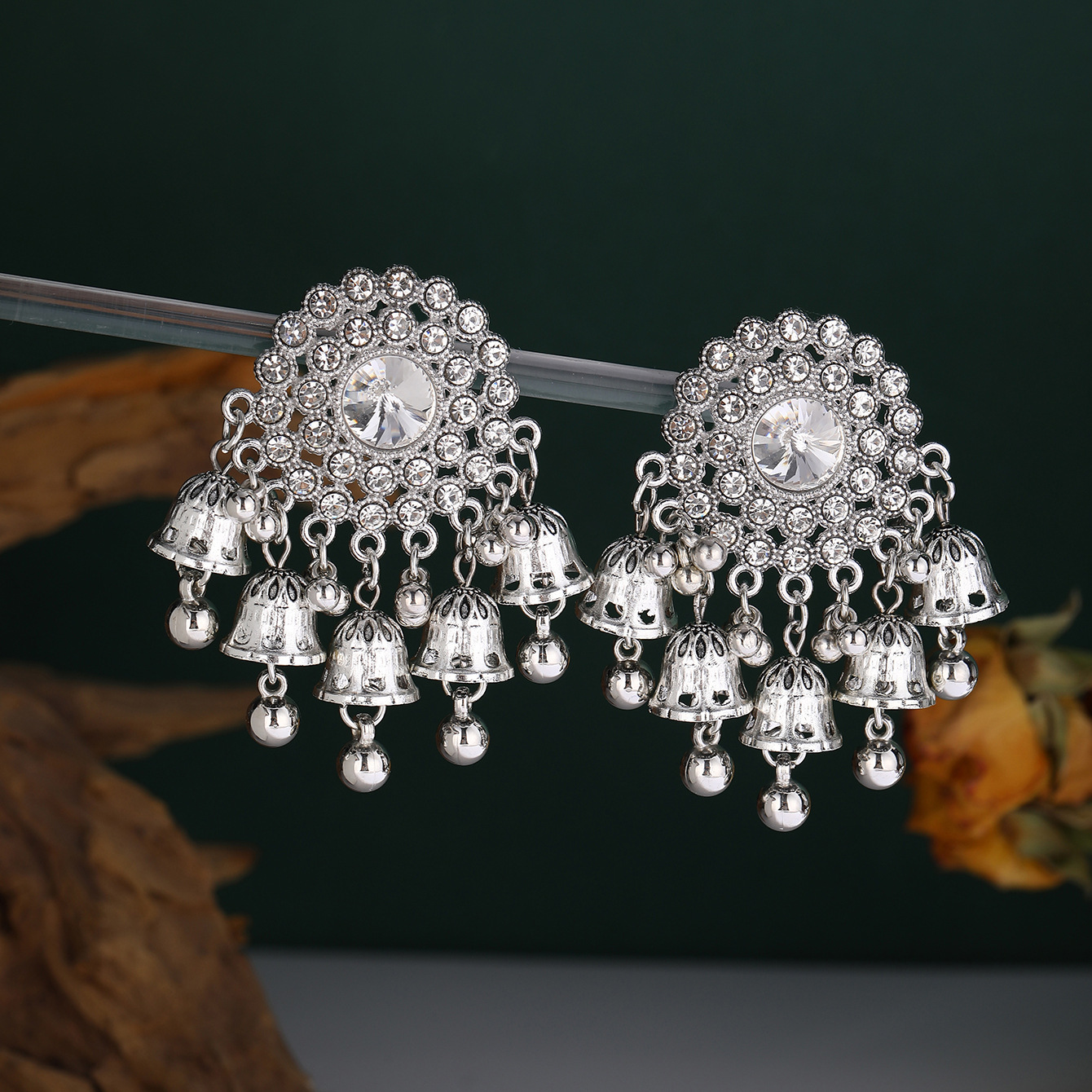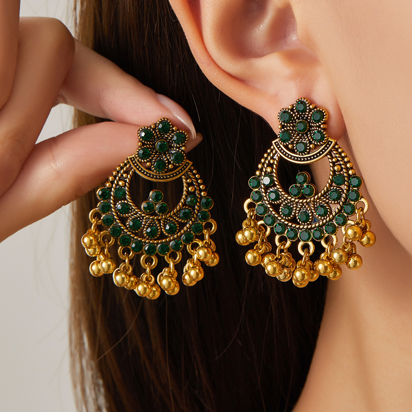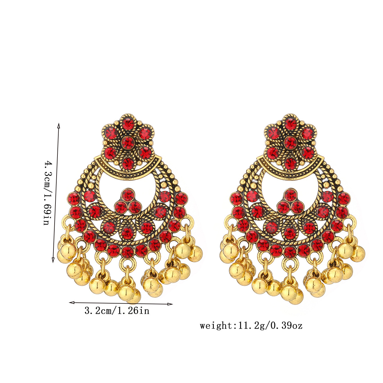 复古镶钻镂空流苏花瓣耳环女波西米亚民族风夸张雕花旅游耳坠耳饰