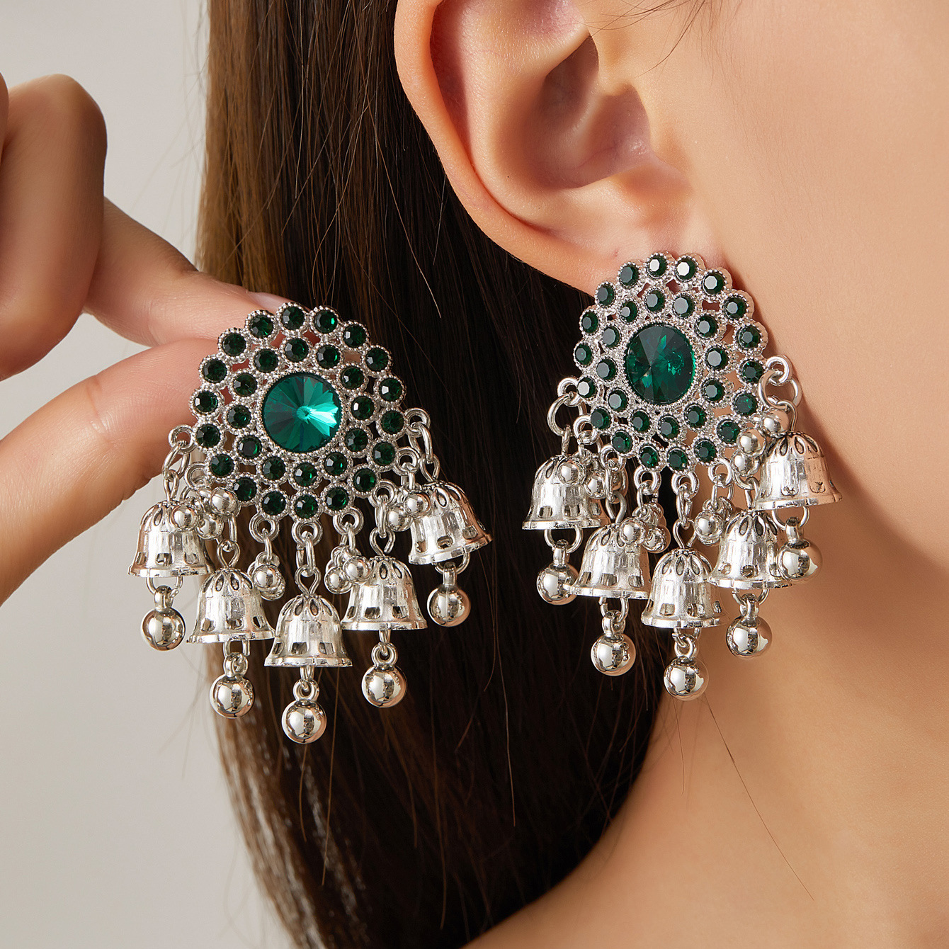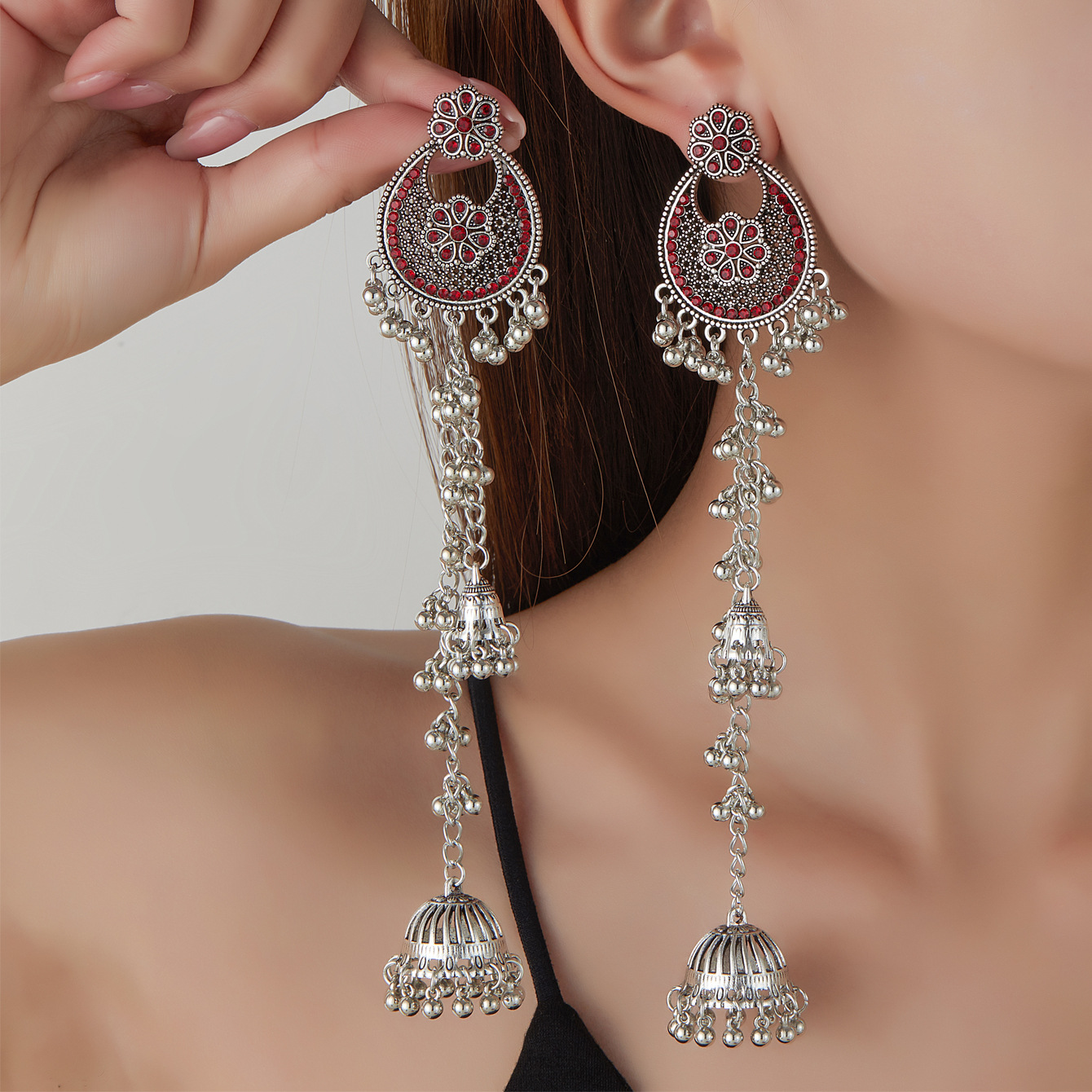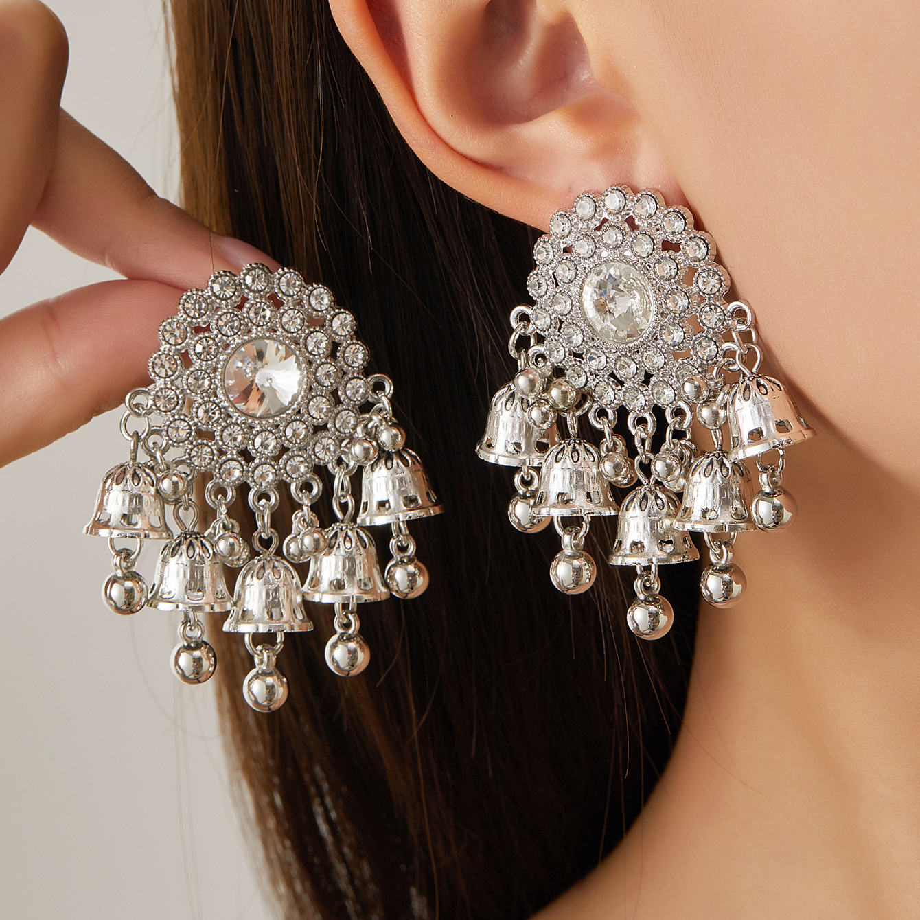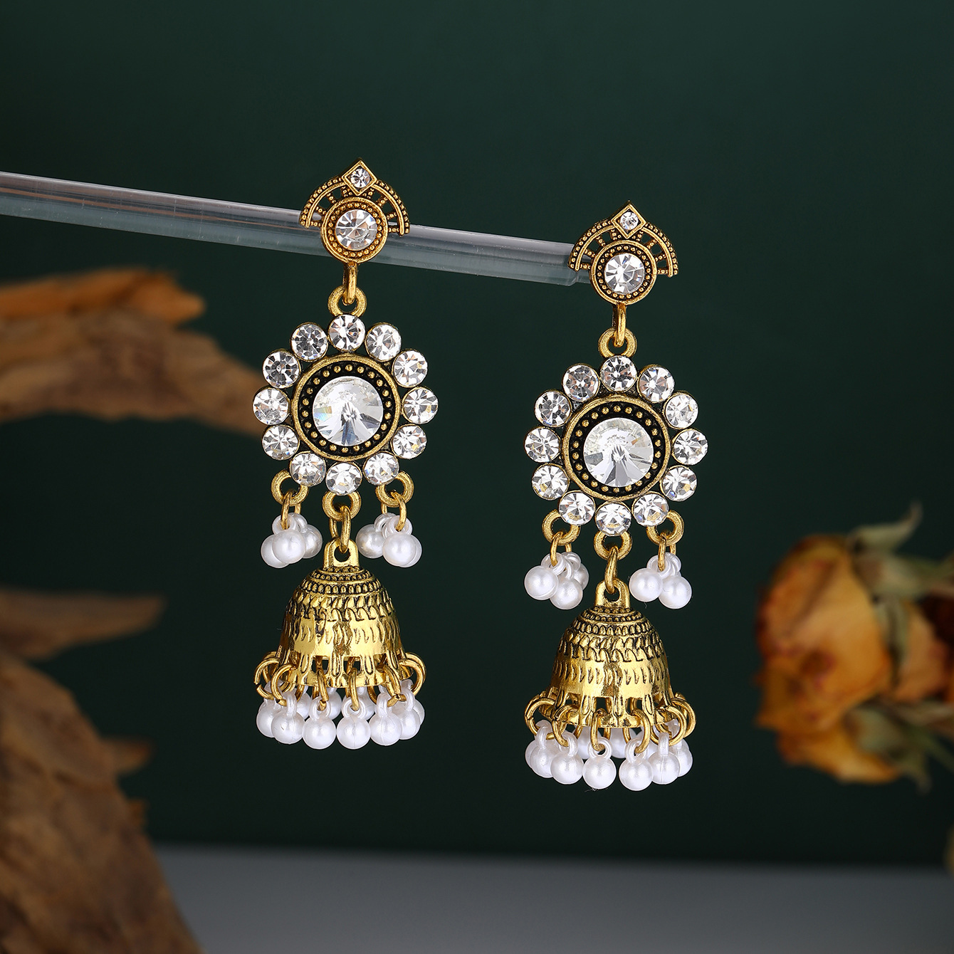 复古镶钻镂空流苏花瓣耳环女波西米亚民族风夸张雕花旅游耳坠耳饰