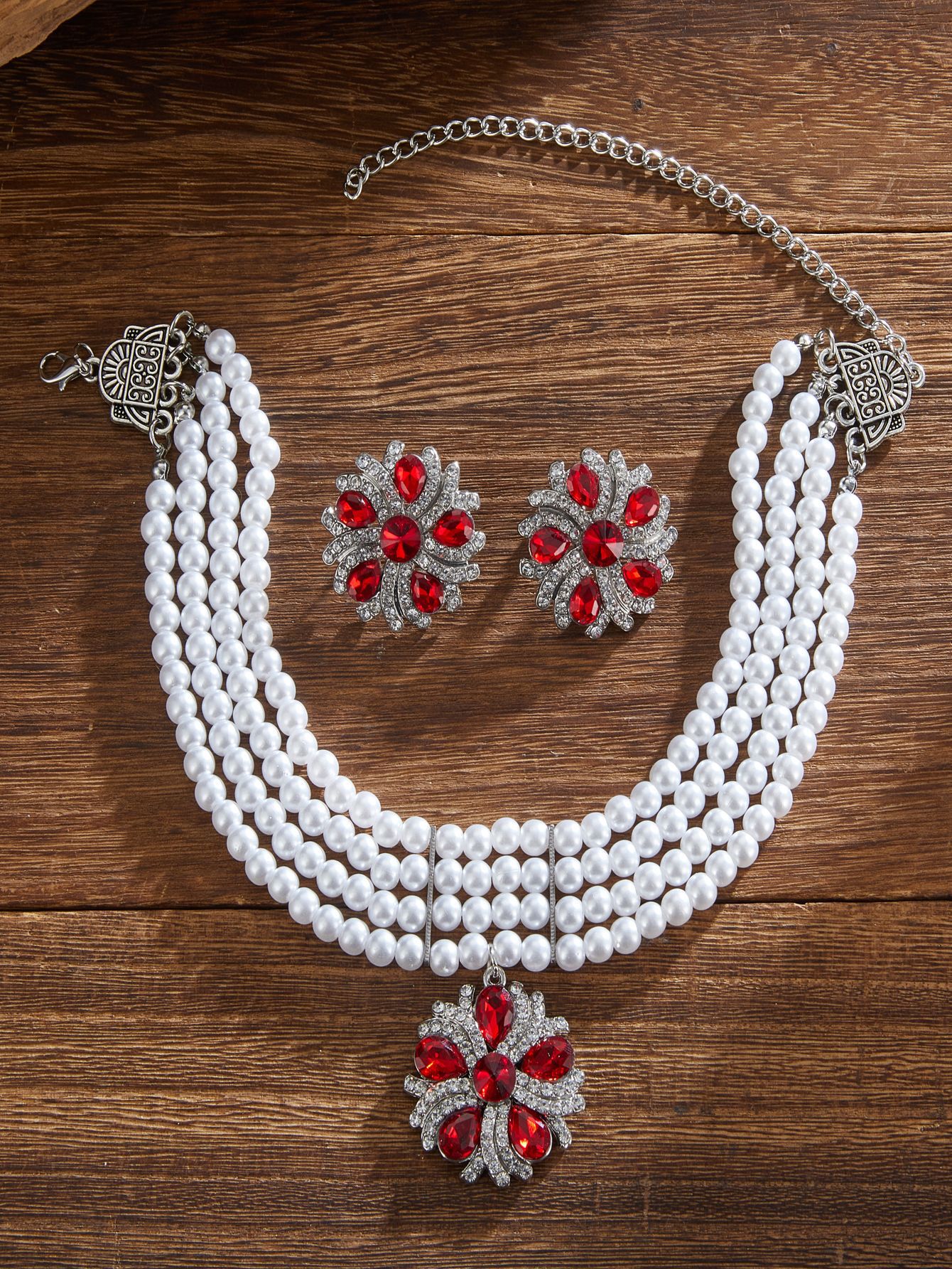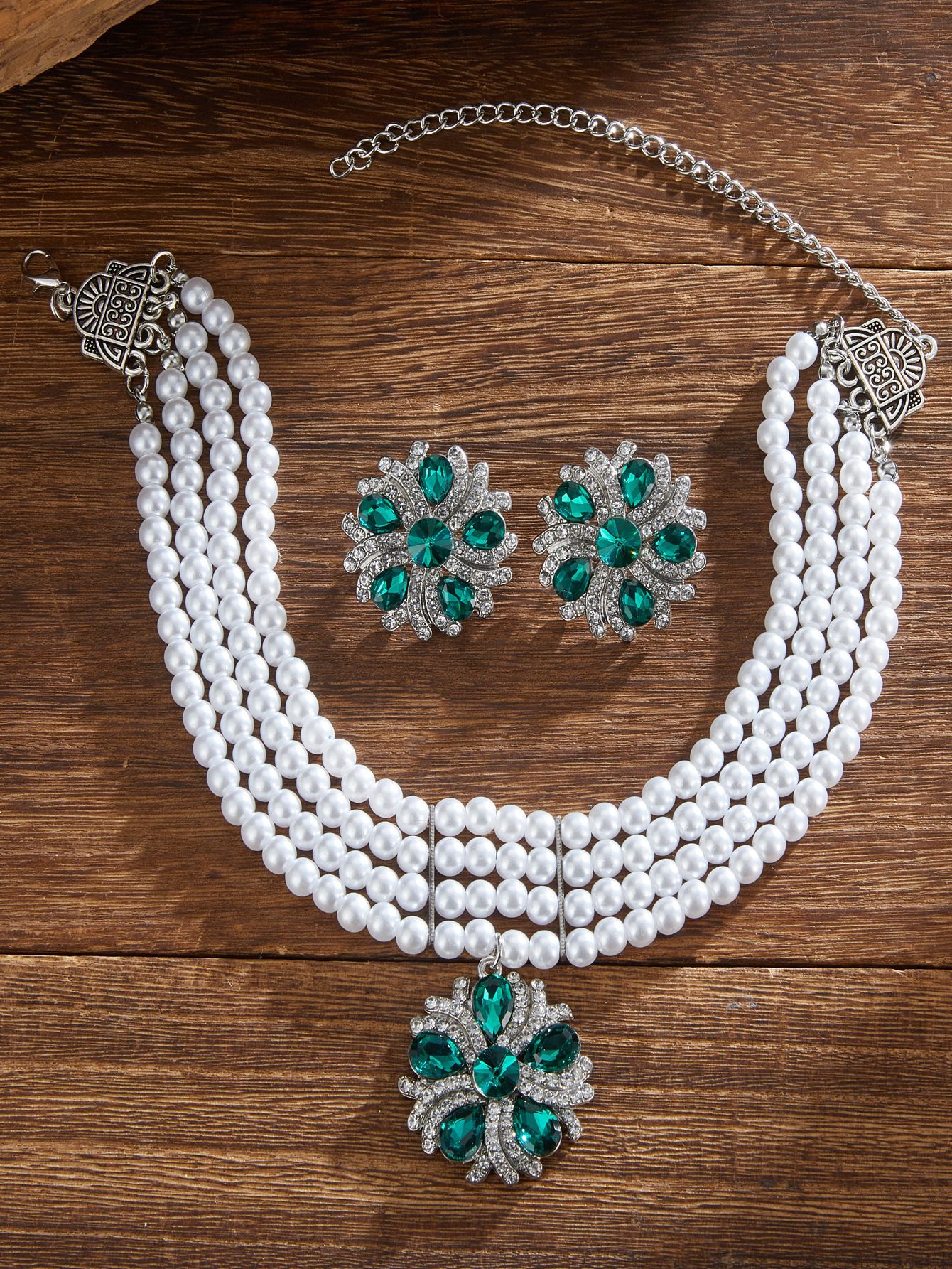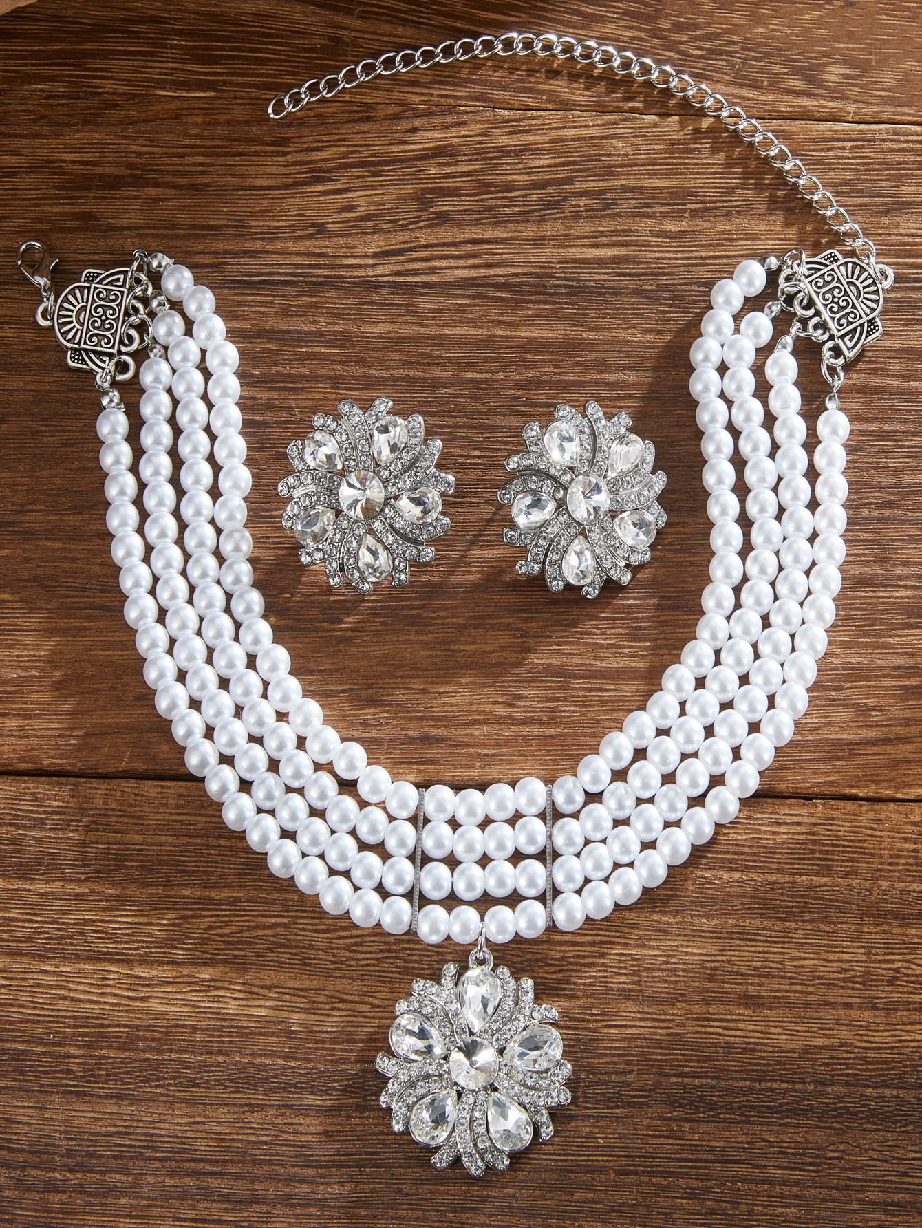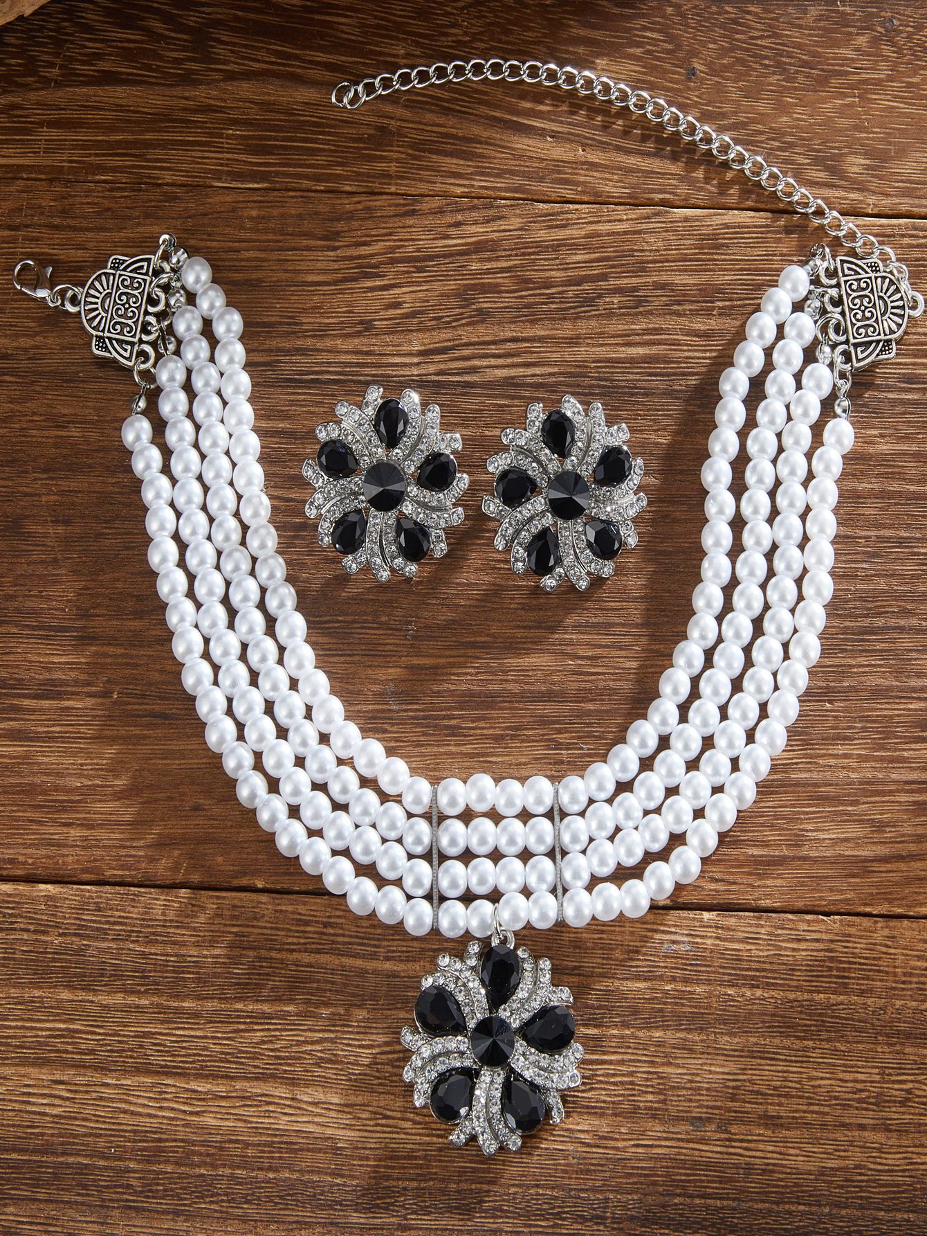 跨境热卖欧美复古民族风多层珍珠椭圆形项链耳环 跨境波西米亚首