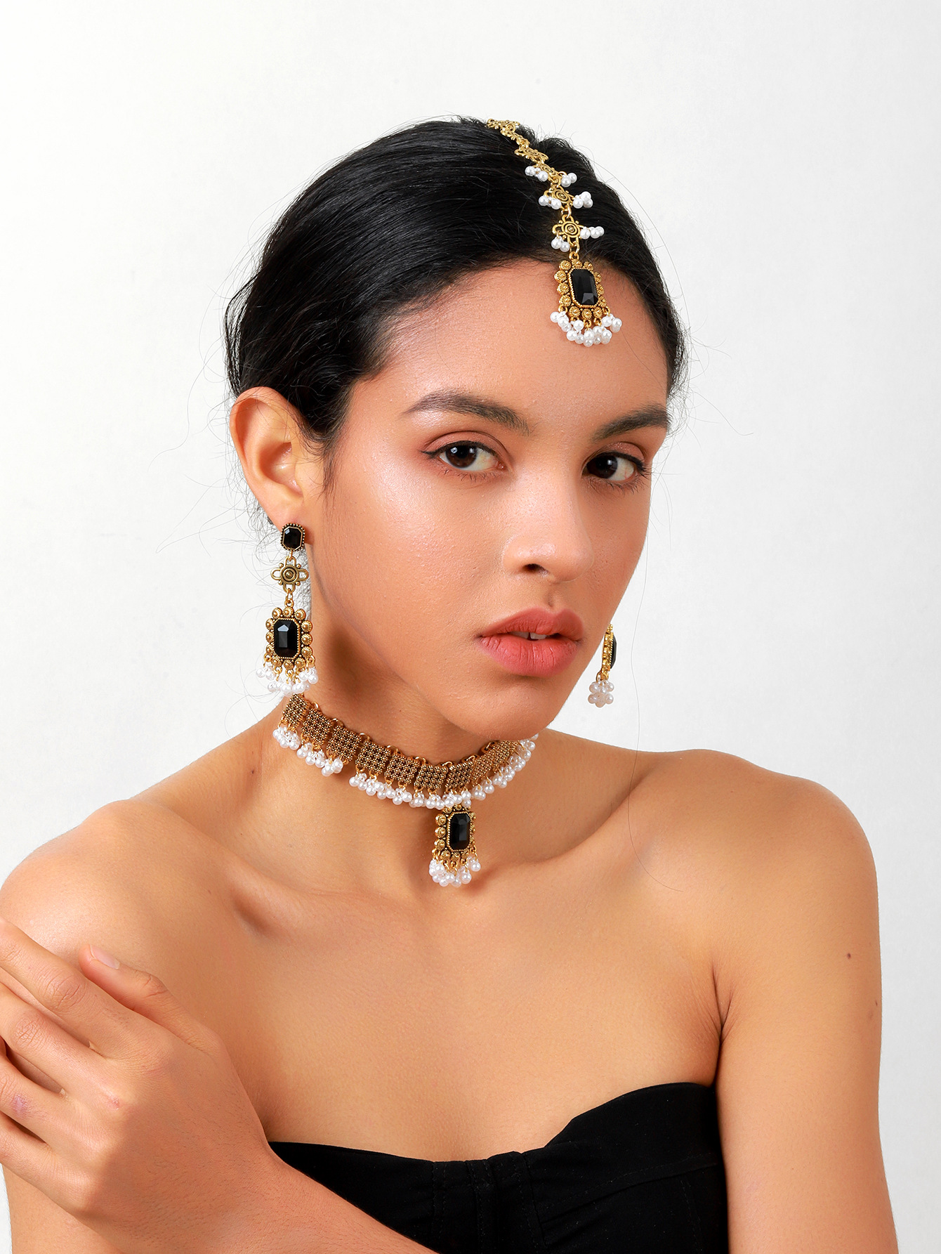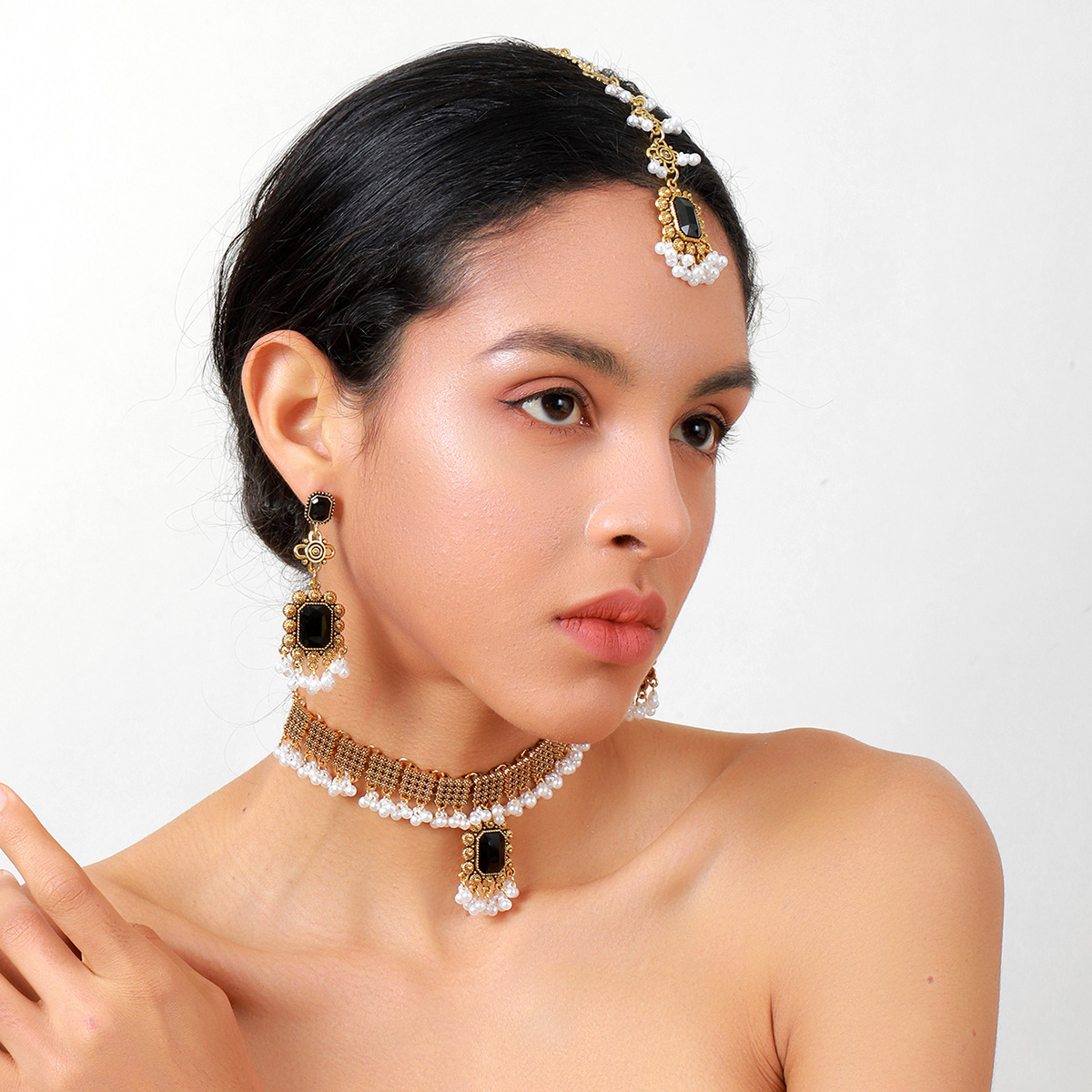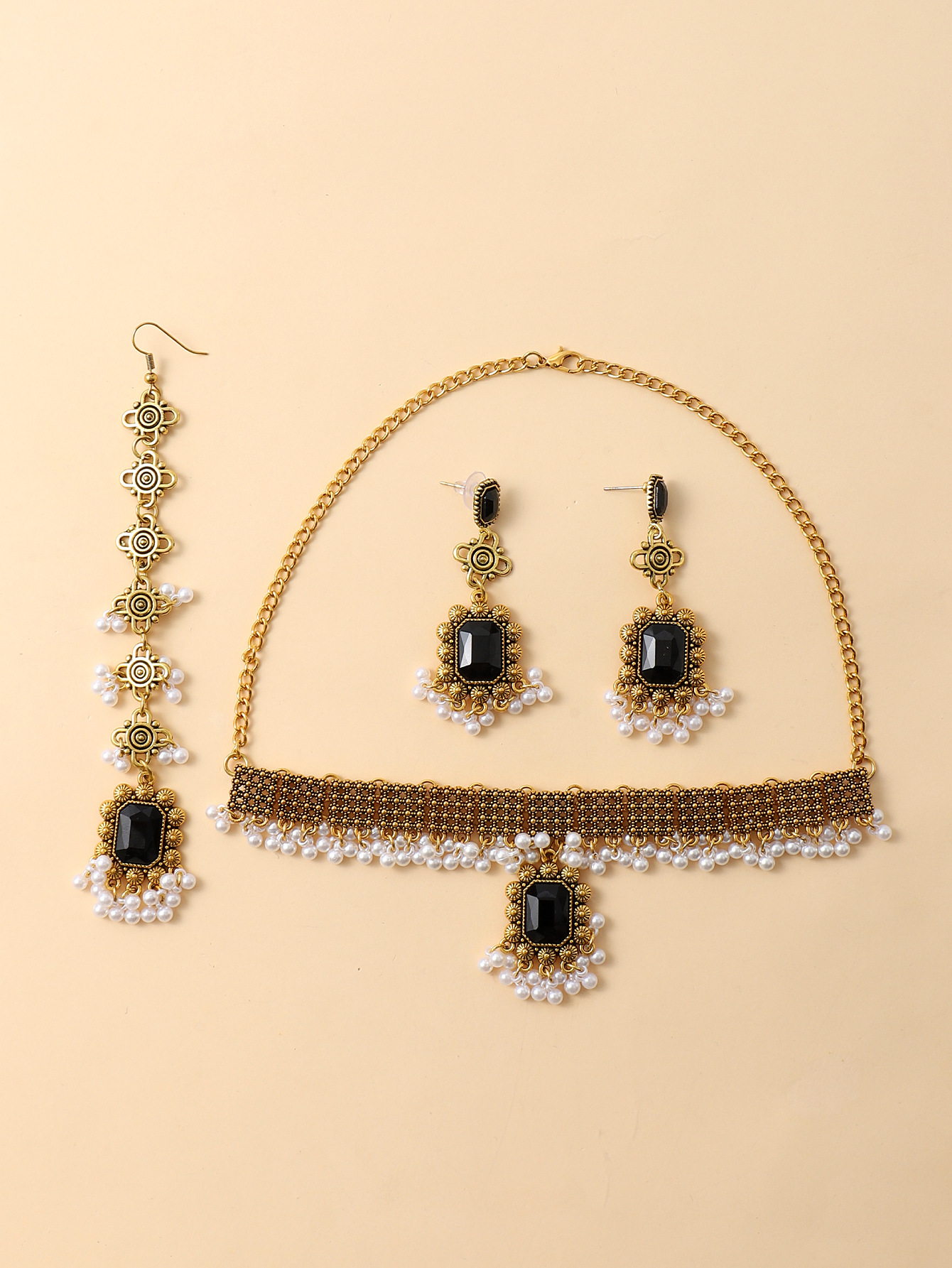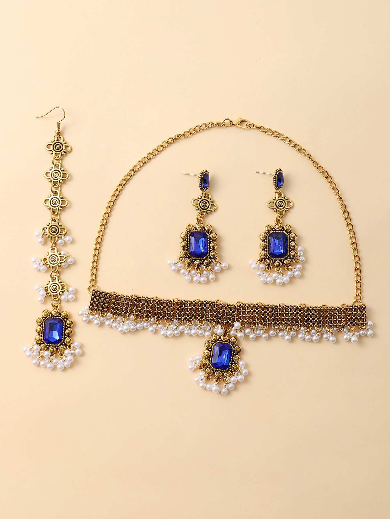 欧美跨境复古民族风女式首饰套装项链加耳环加发链