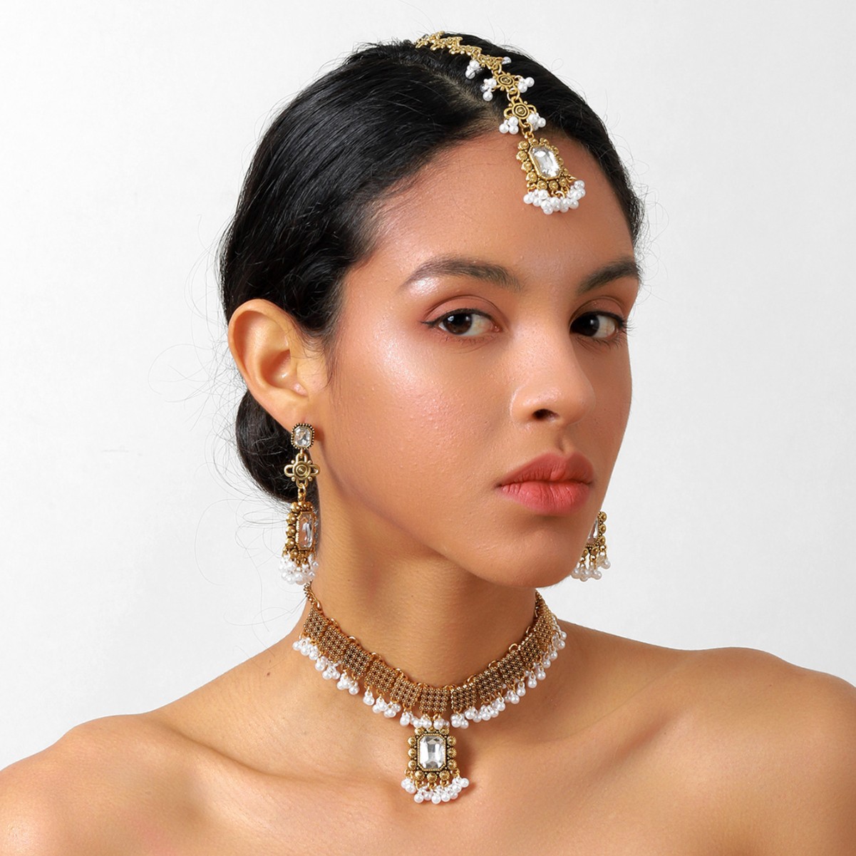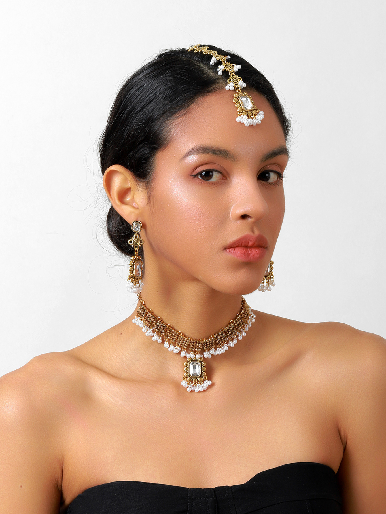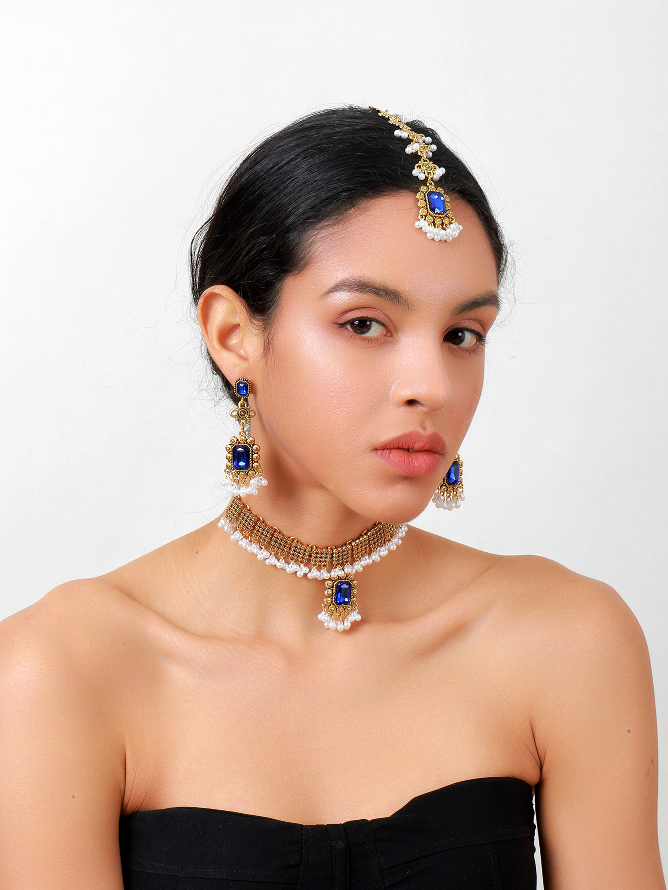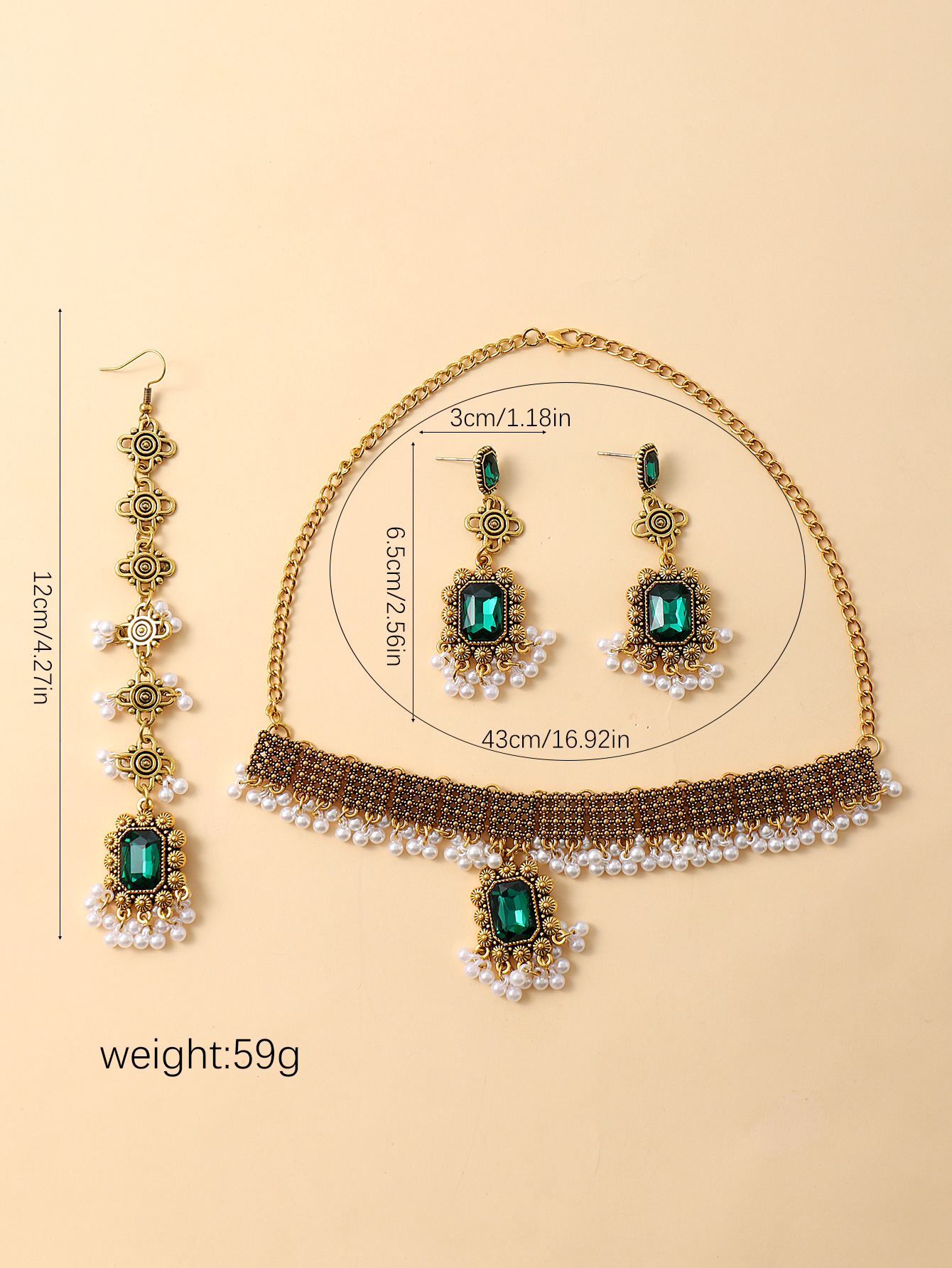 欧美跨境复古民族风女式首饰套装项链加耳环加发链