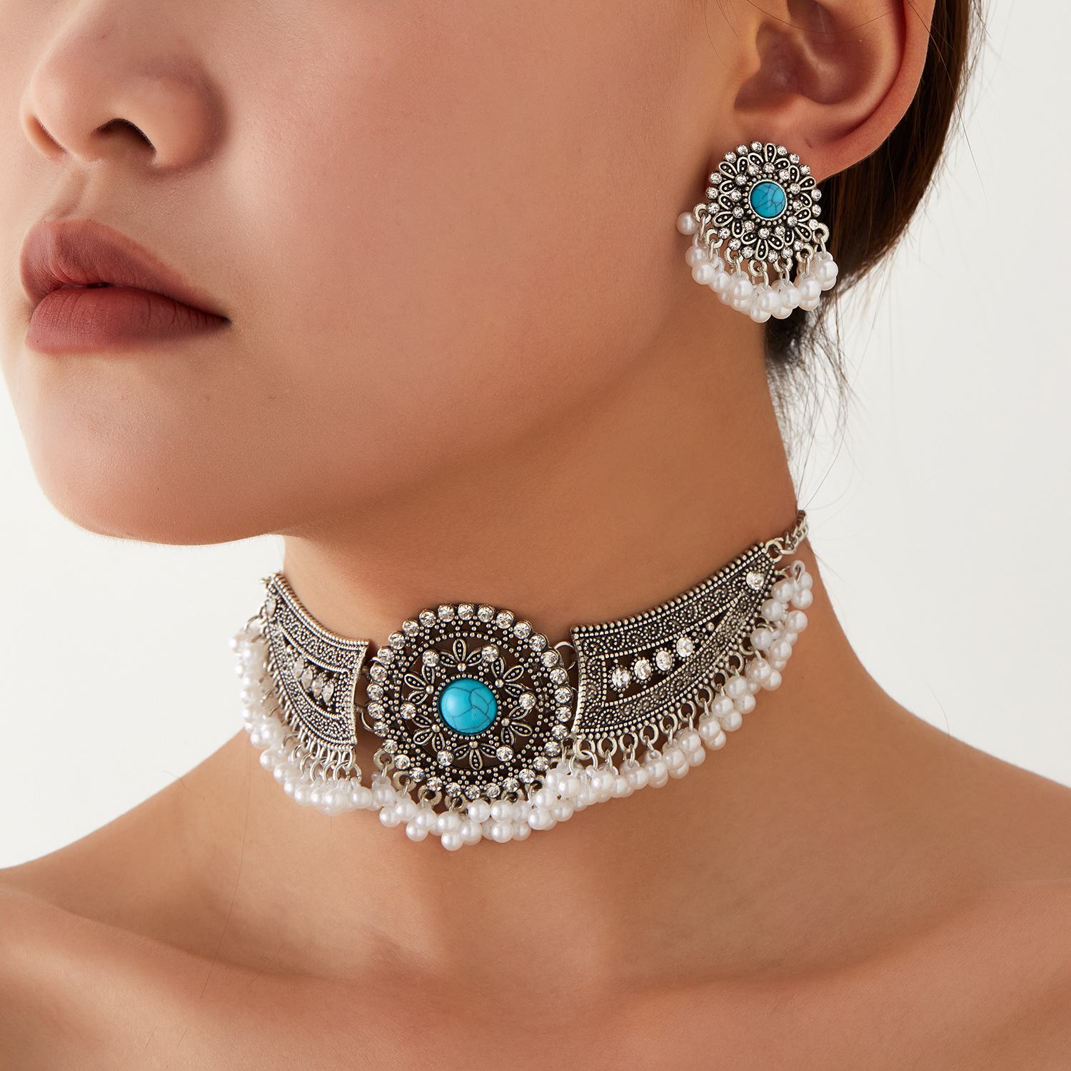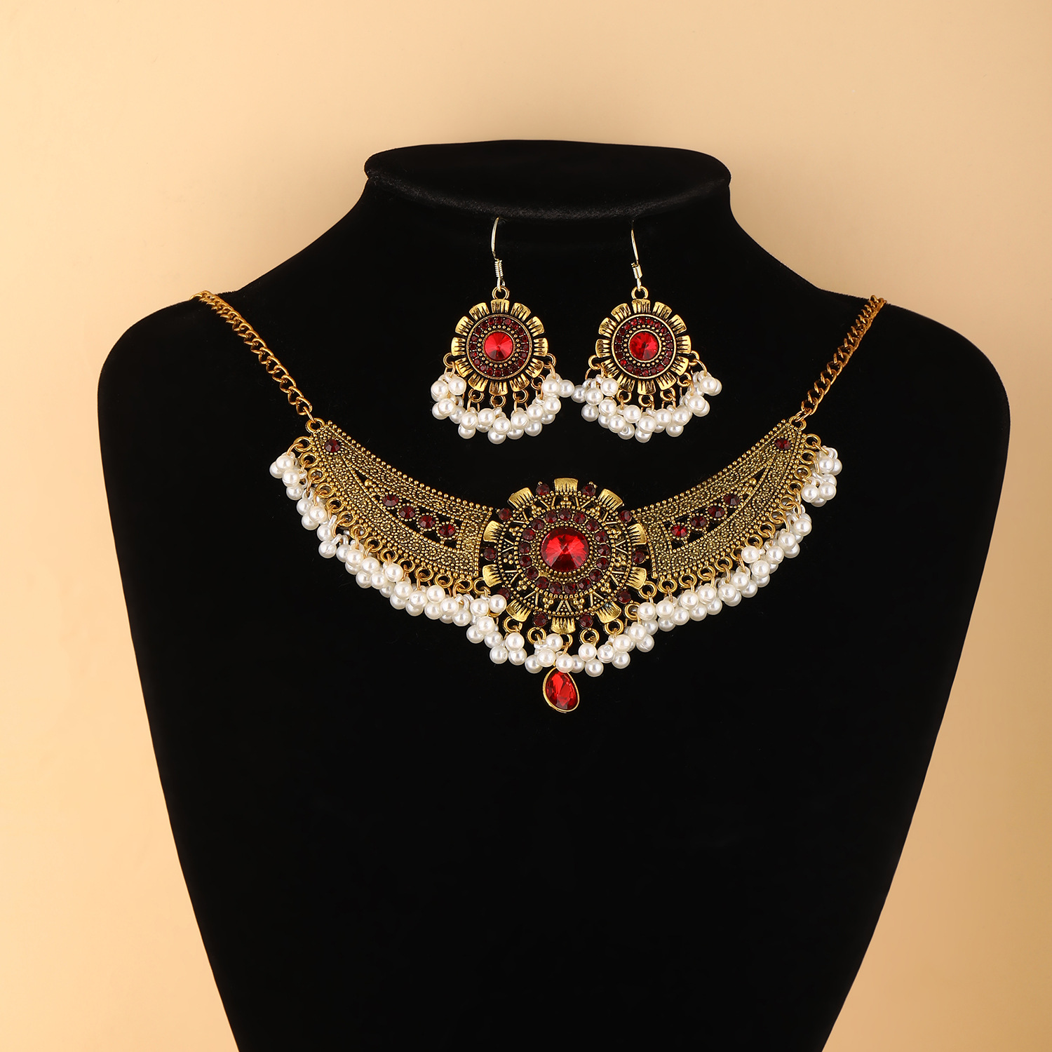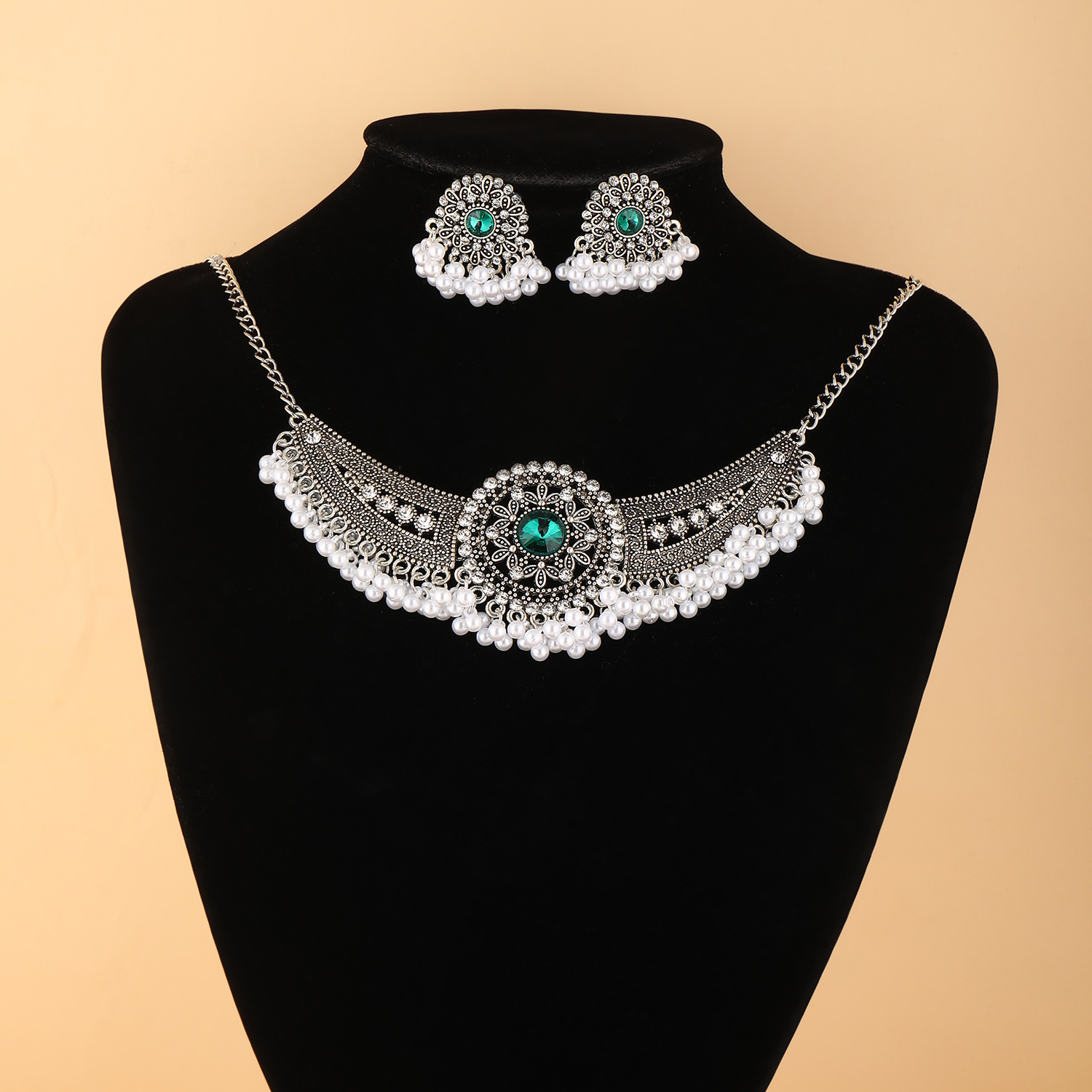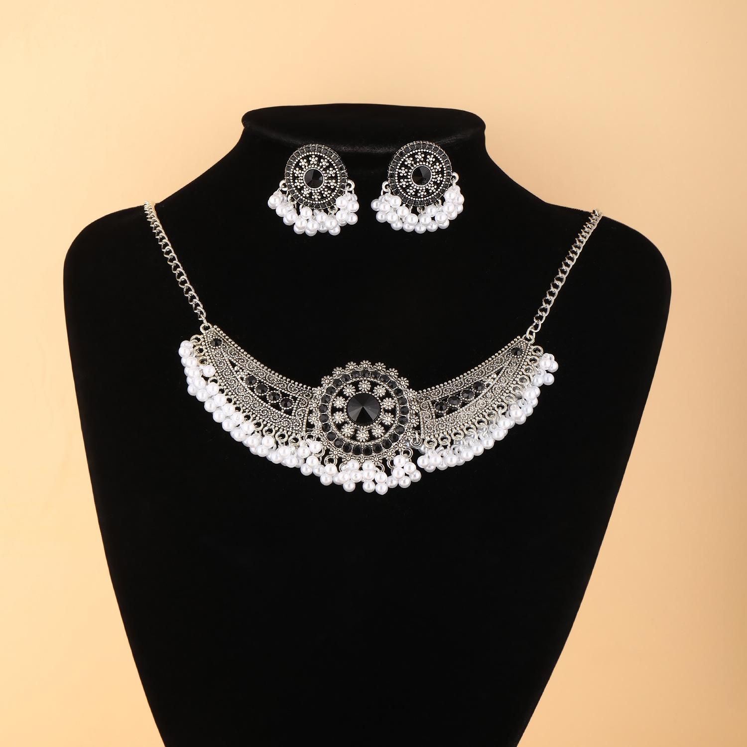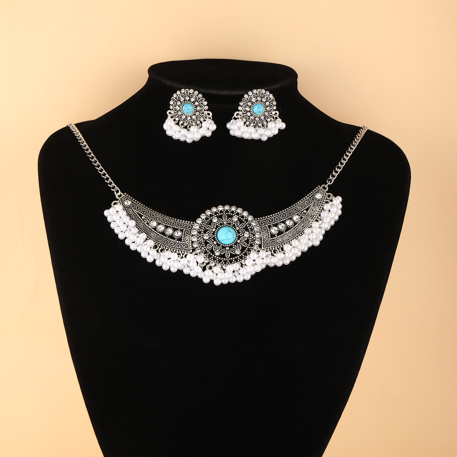 跨境热卖波西米亚民族风异域风珠串流苏翅膀颈链加耳环首饰套装
