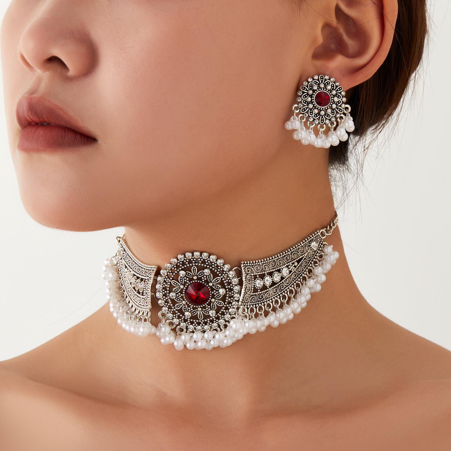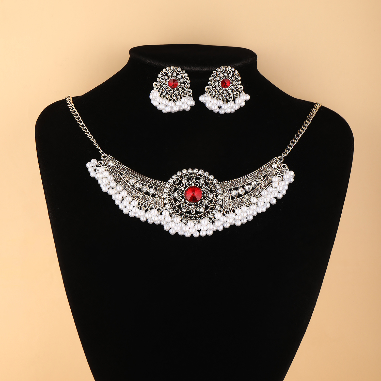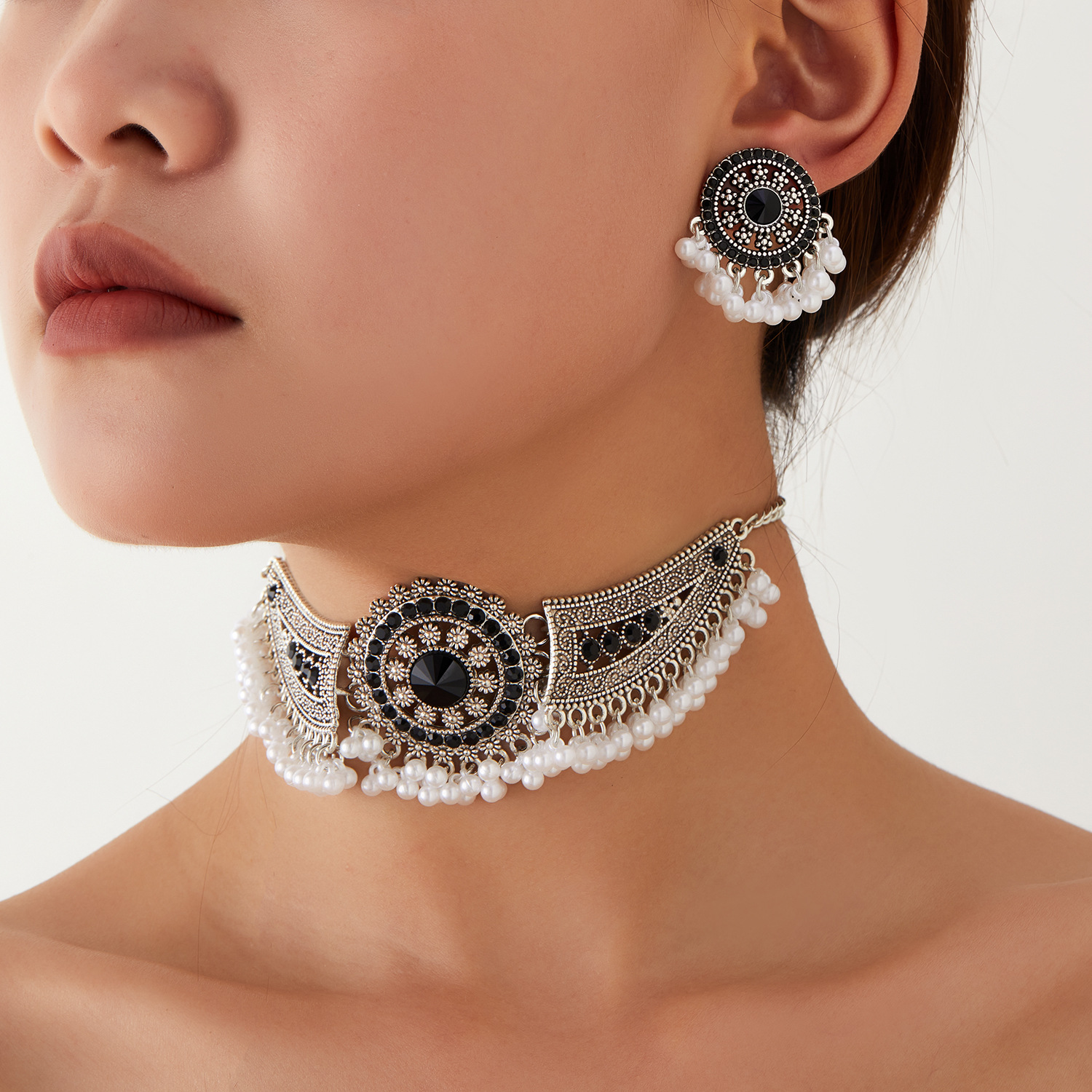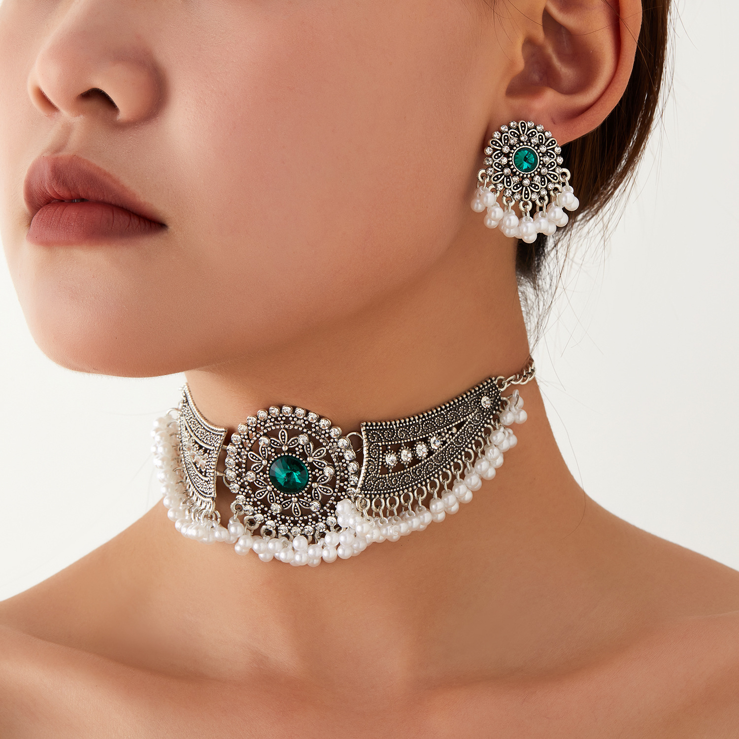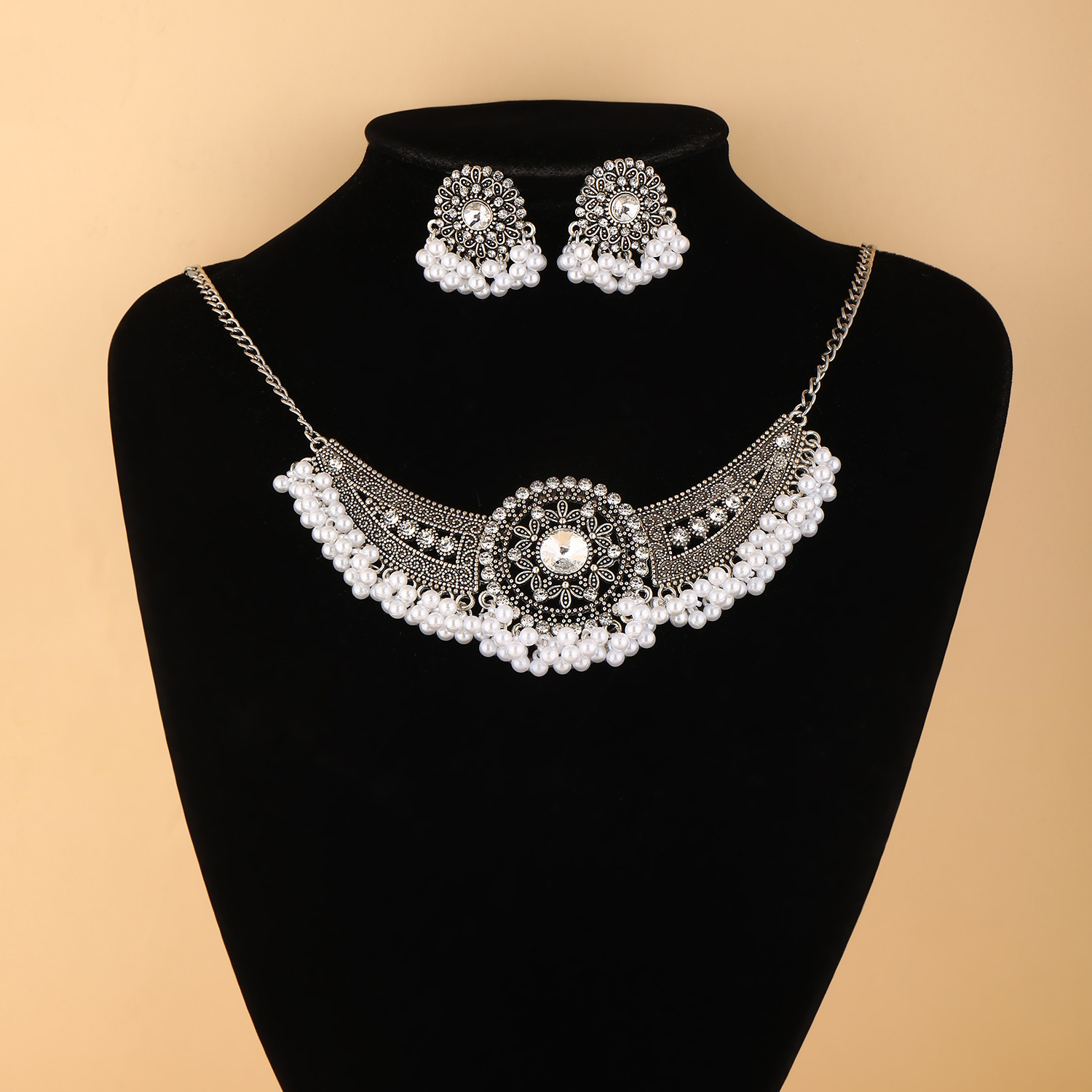 跨境热卖波西米亚民族风异域风珠串流苏翅膀颈链加耳环首饰套装