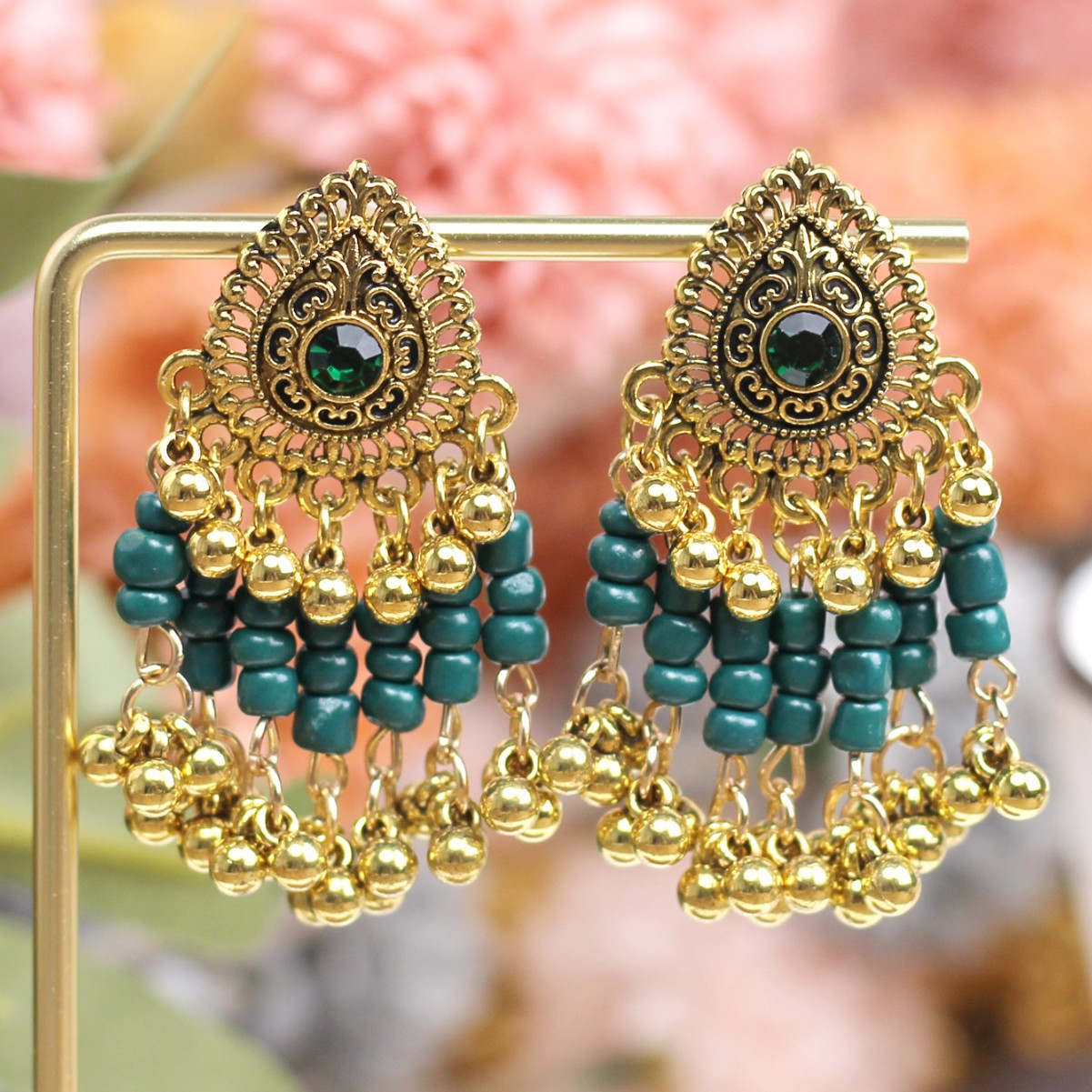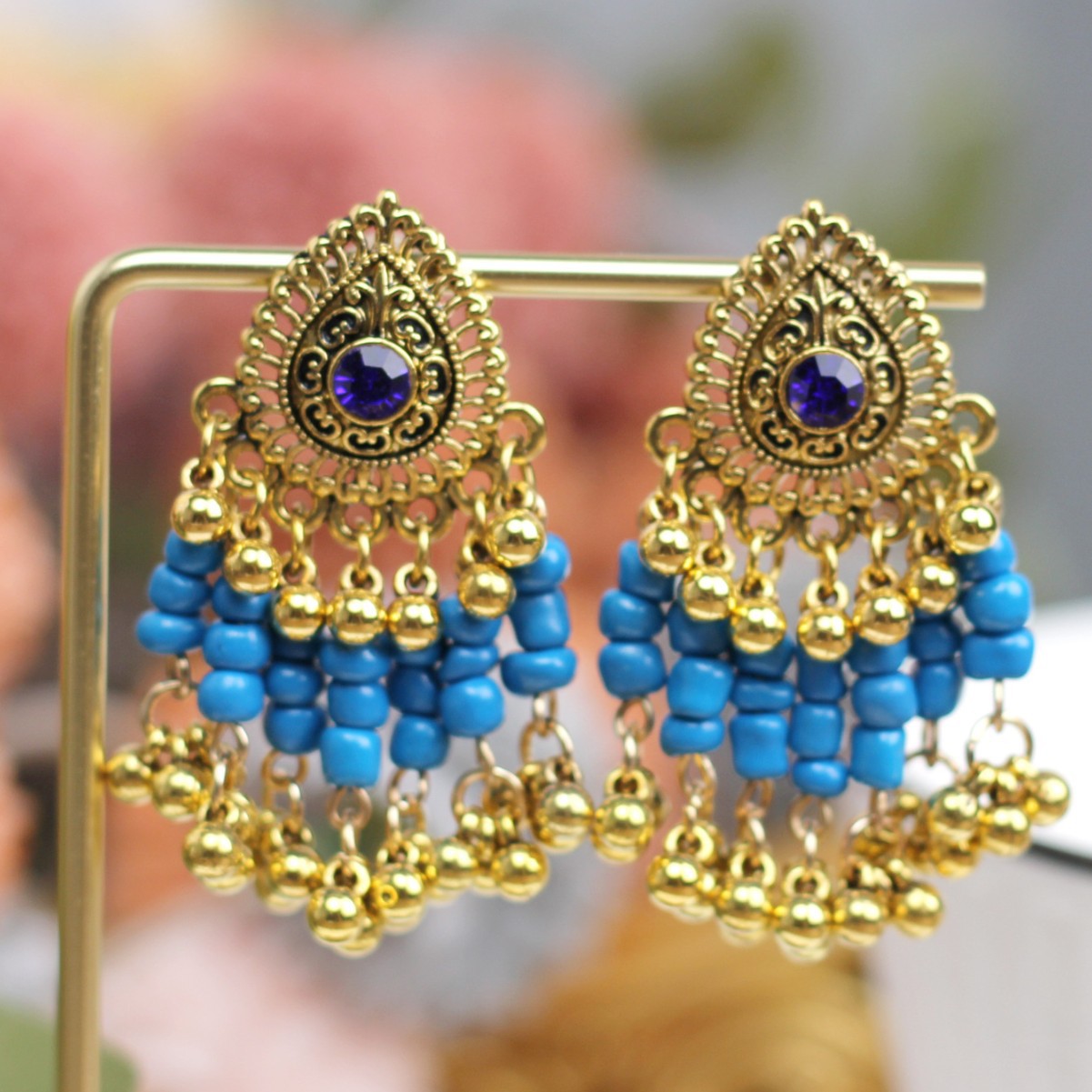 跨境欧美手工波西米亚气质复古宫廷风重工耳饰民族风质感耳环夸张