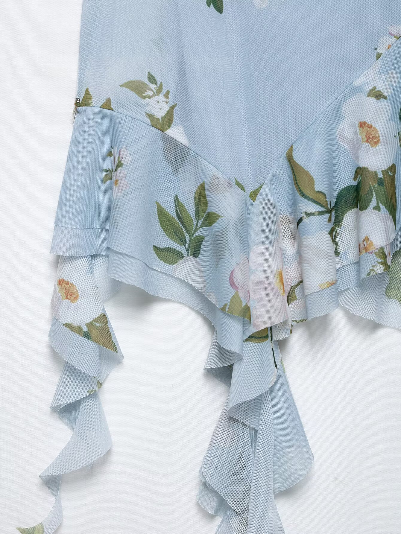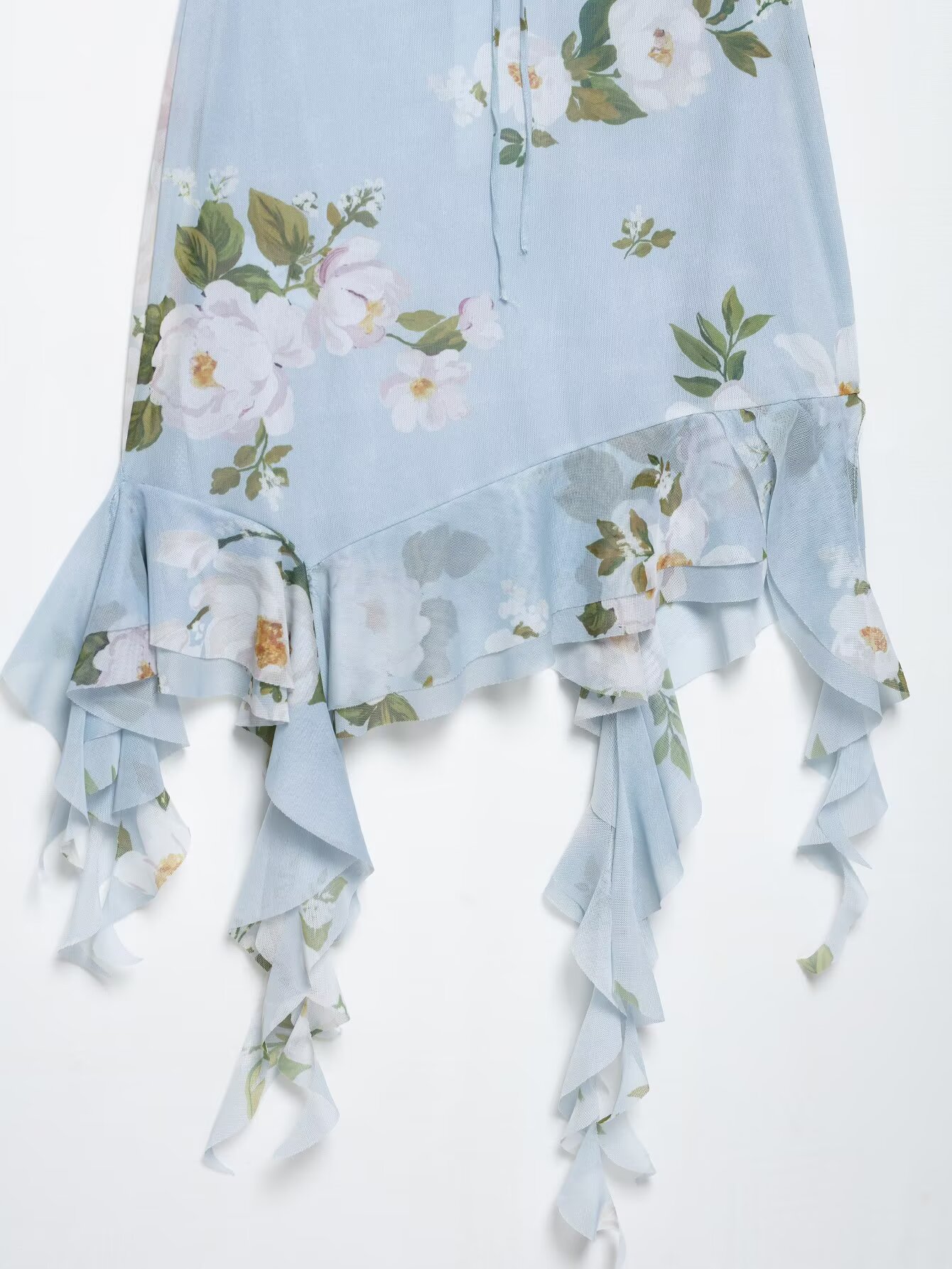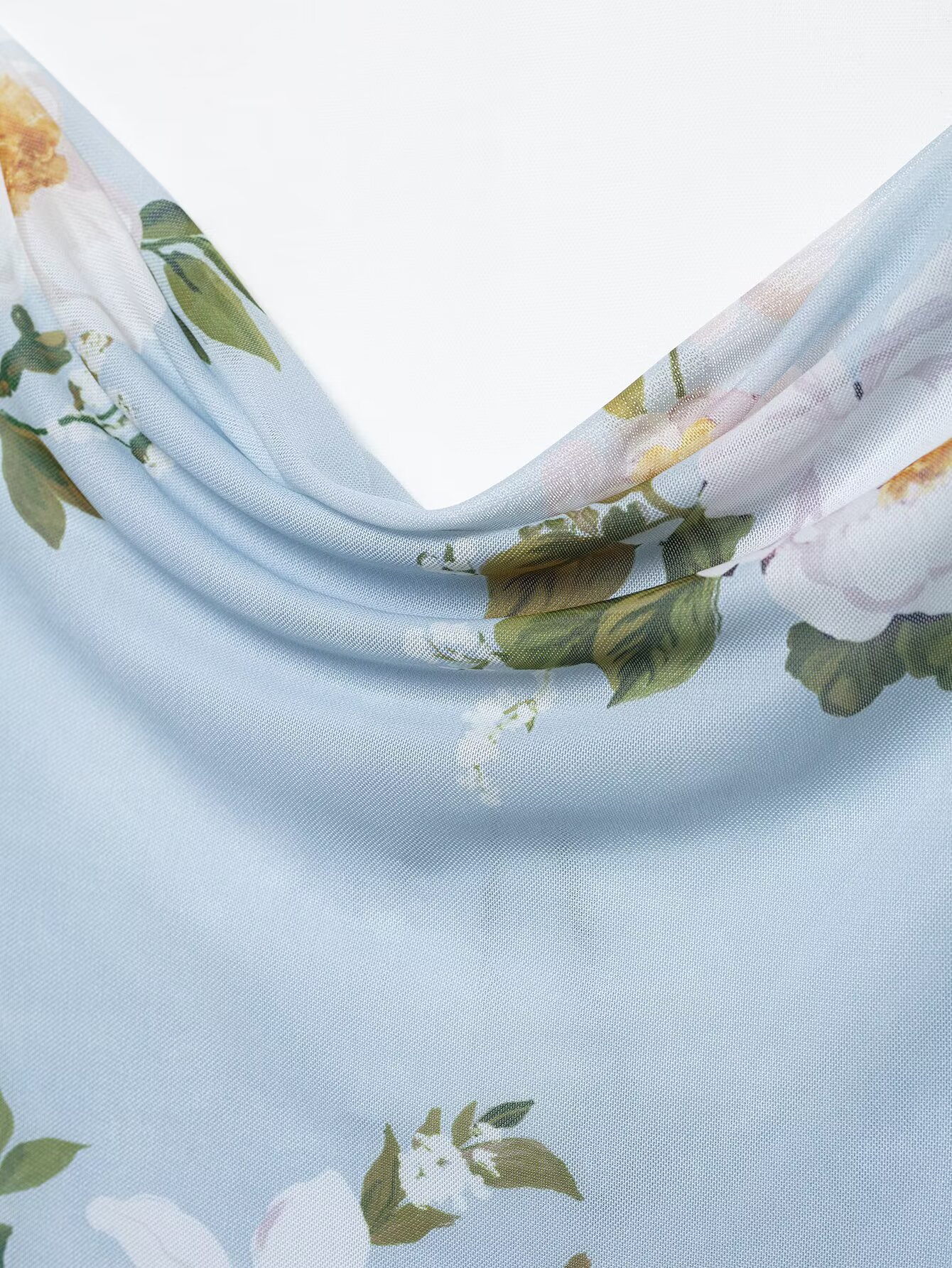 Z跨境2025春季新款女装修身印花绢网垂褶领吊带短连衣裙女5039122