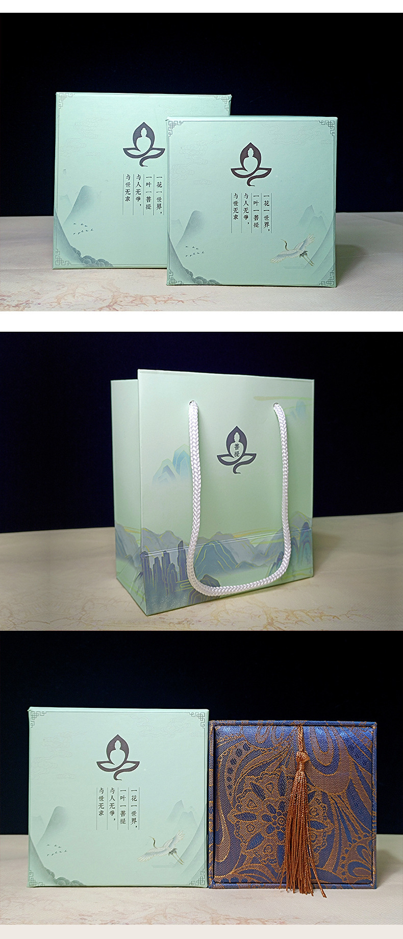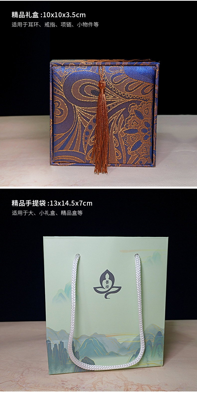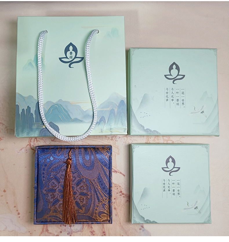 精品礼盒菩提手串手链精美流苏礼盒批发弹力绳国风礼盒抛光棉
