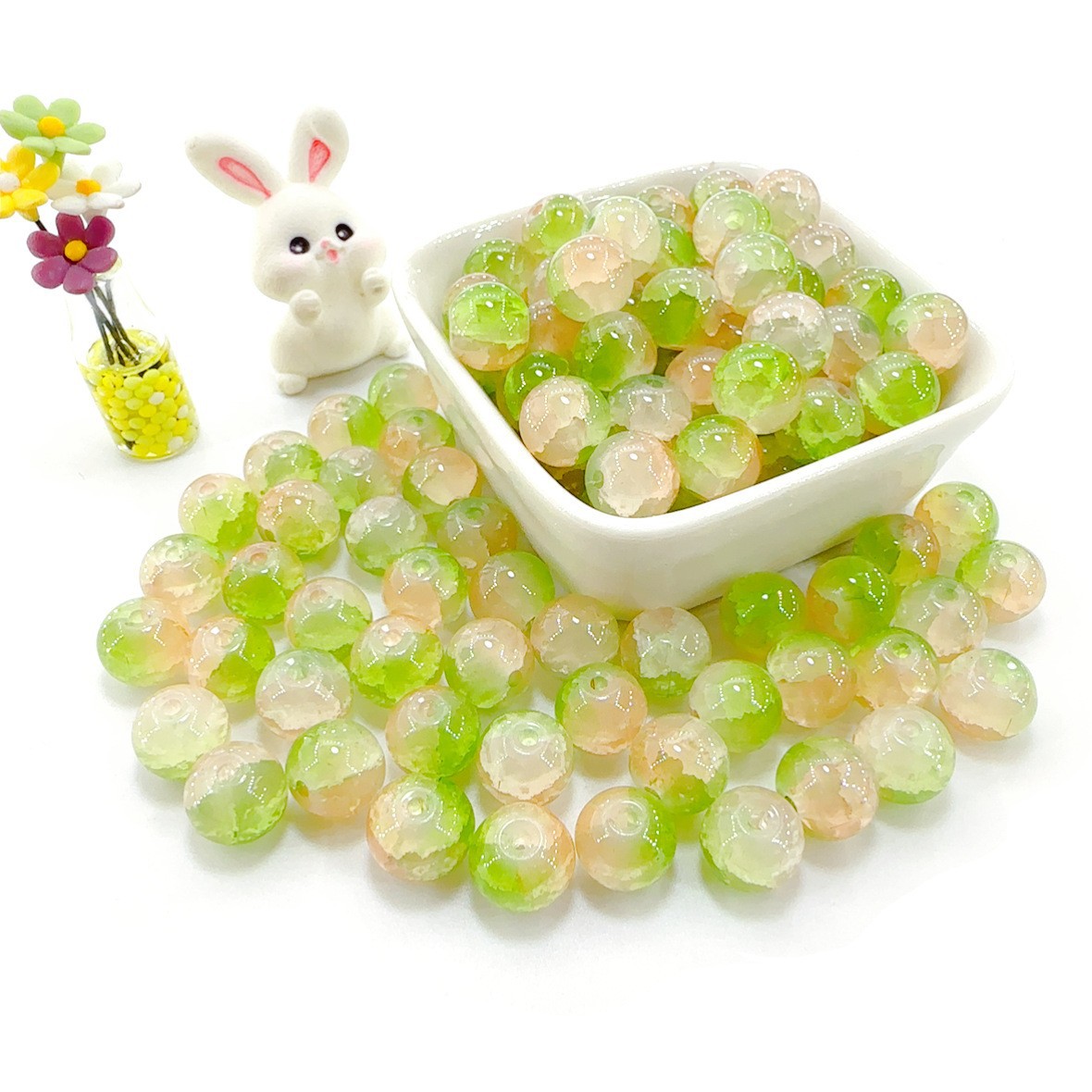 10mm爆花圆珠子散珠散批玻璃琉璃珠手工手链diy材料配件配珠手串