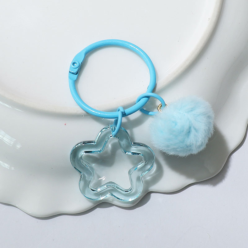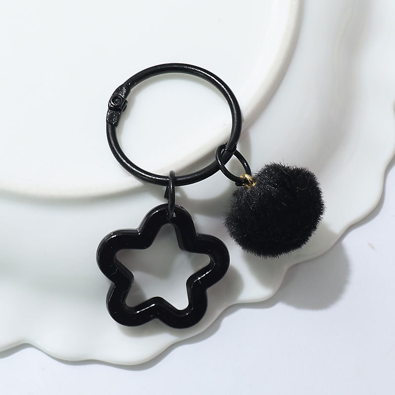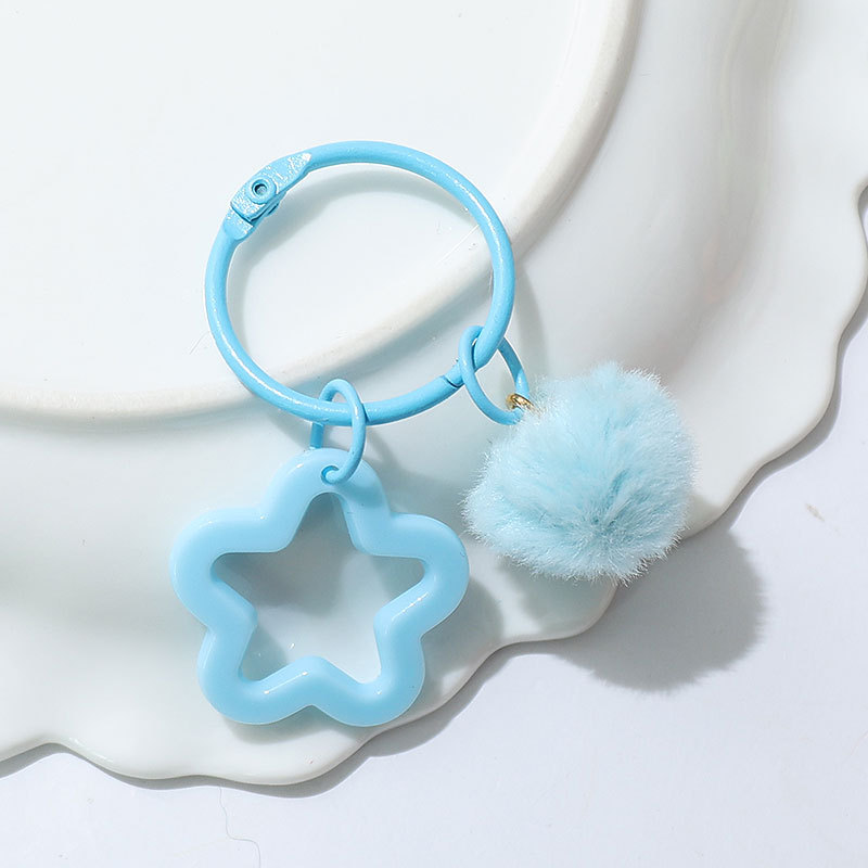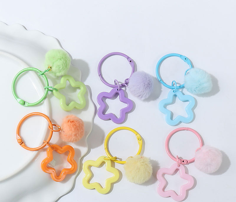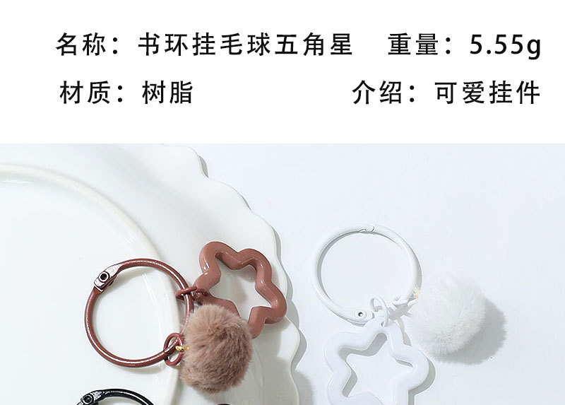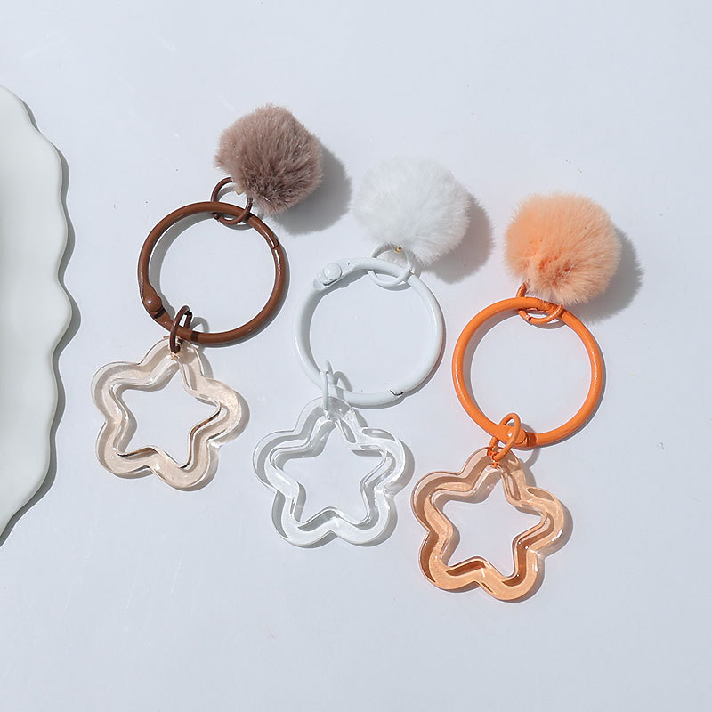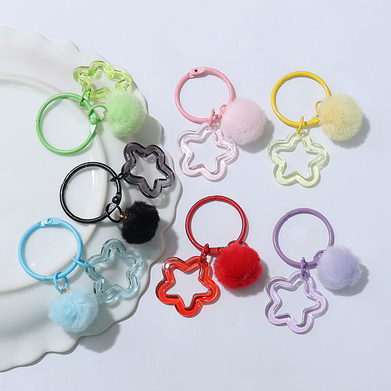 新款创意树脂镂空五角星钥匙扣 diy彩色毛绒球 饰品配件包包挂件