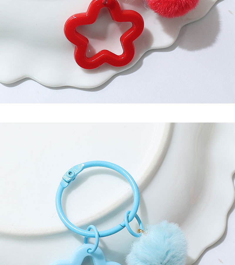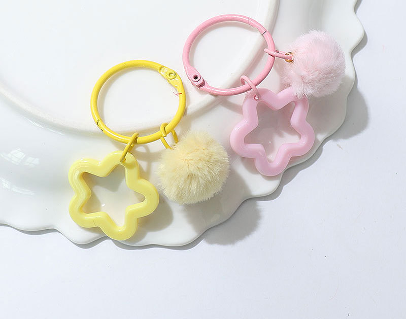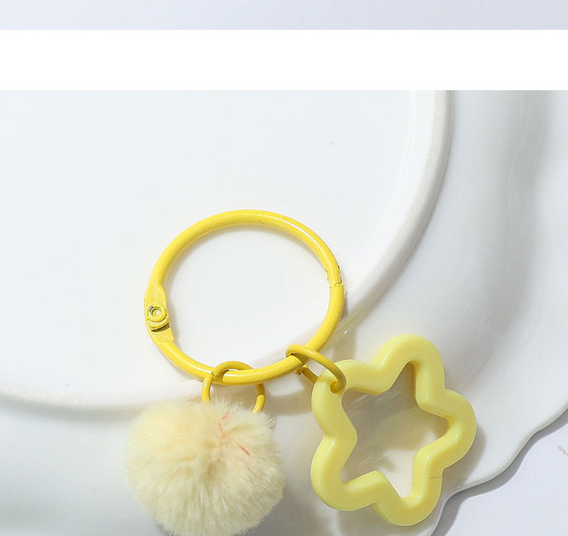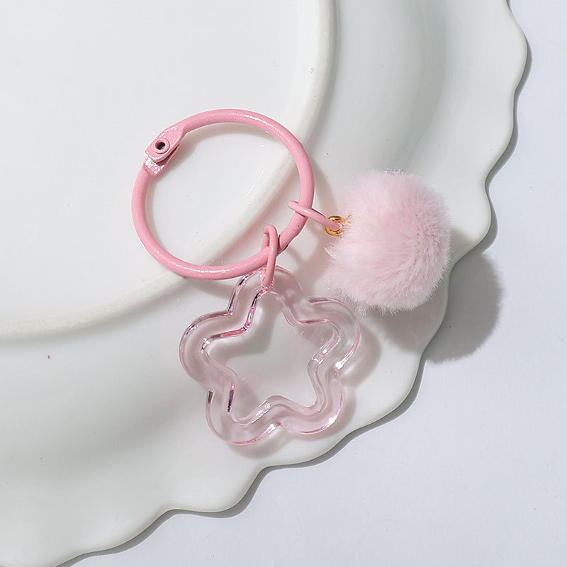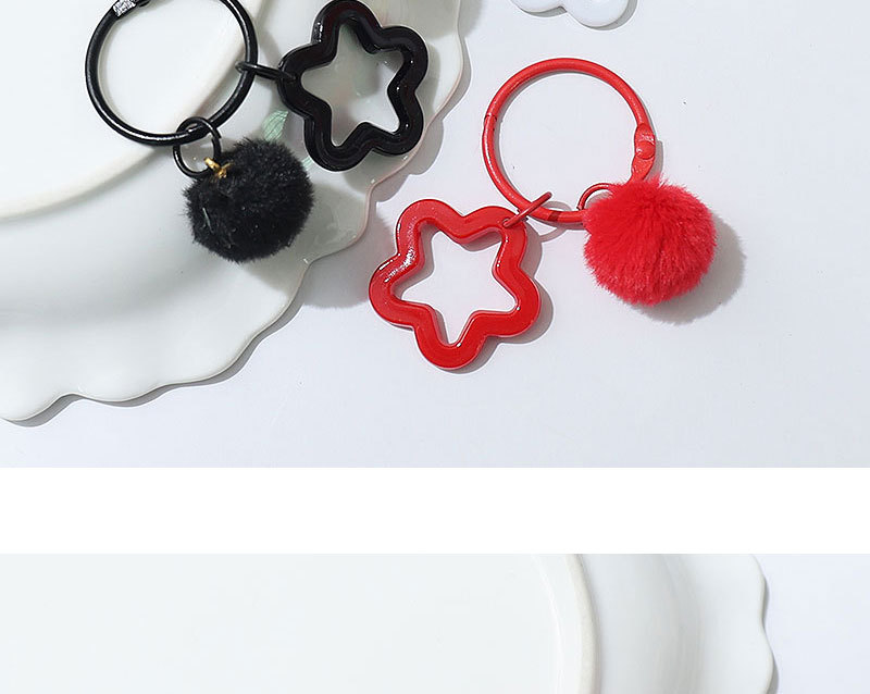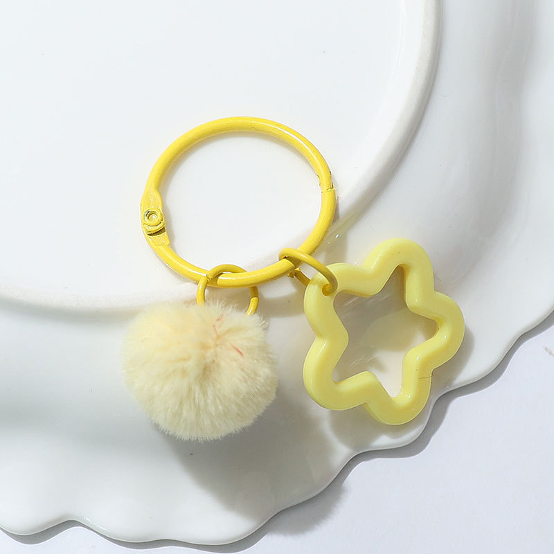 新款创意树脂镂空五角星钥匙扣 diy彩色毛绒球 饰品配件包包挂件