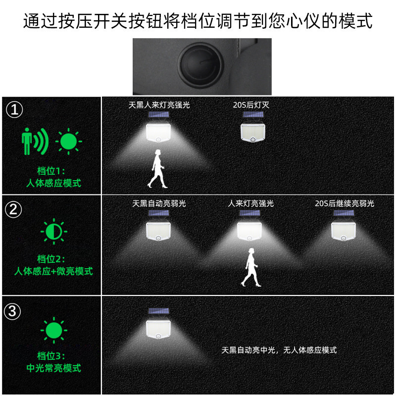 新款太阳能壁灯三头旋转曲面路灯人体感应车库照明234LED庭院灯