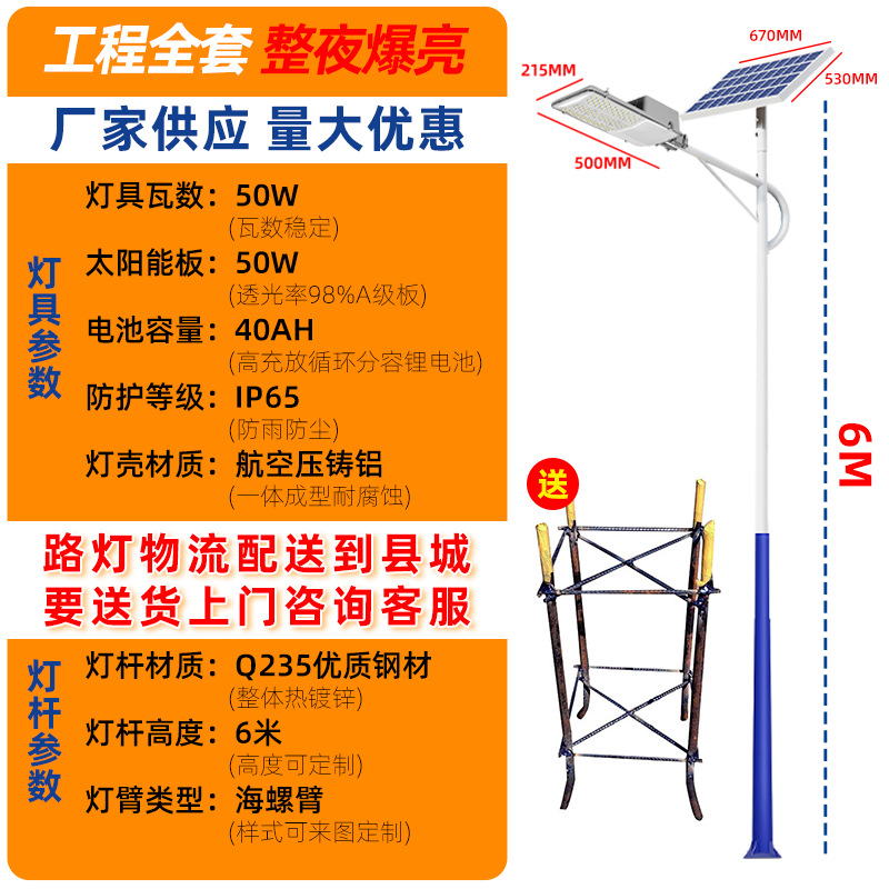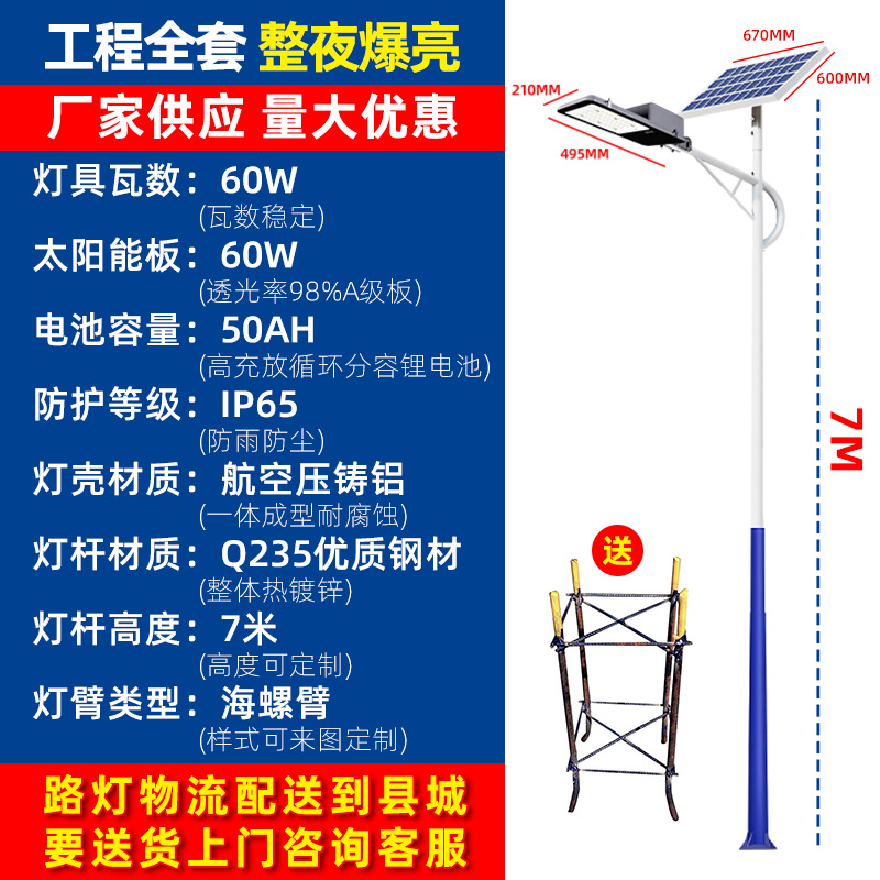 太阳能路灯户外防水庭院灯新农村6米工程款大功率光伏led路灯批发