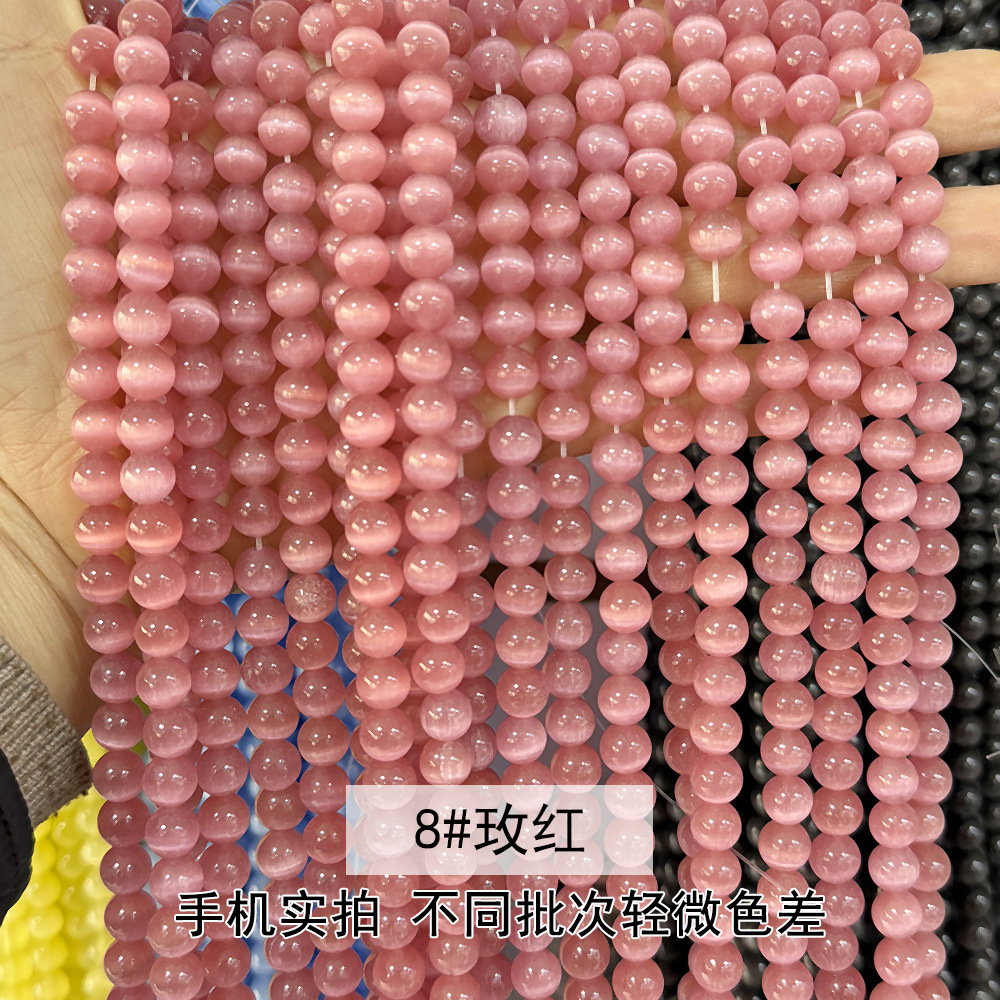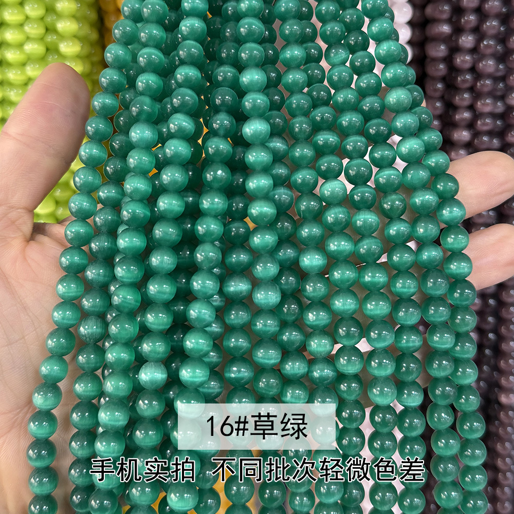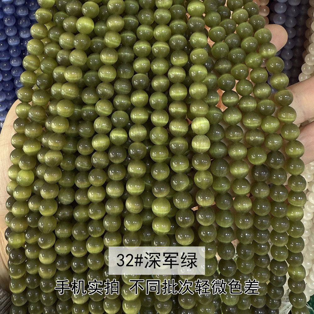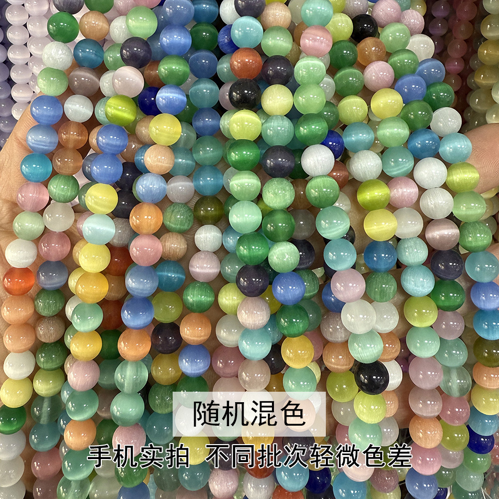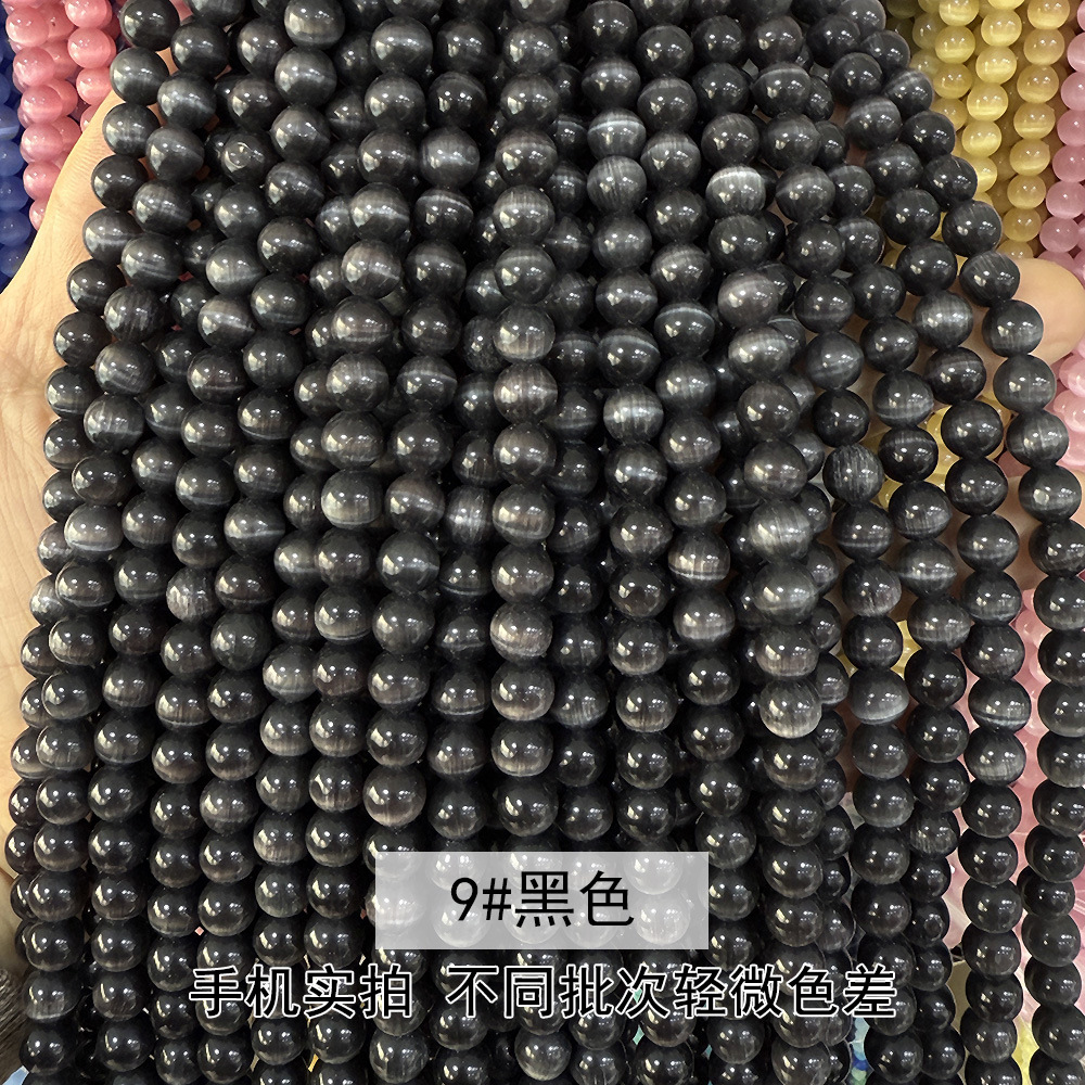 猫眼石珠子散批diy手串配饰串珠猫眼珠合成石头半成品直孔圆珠