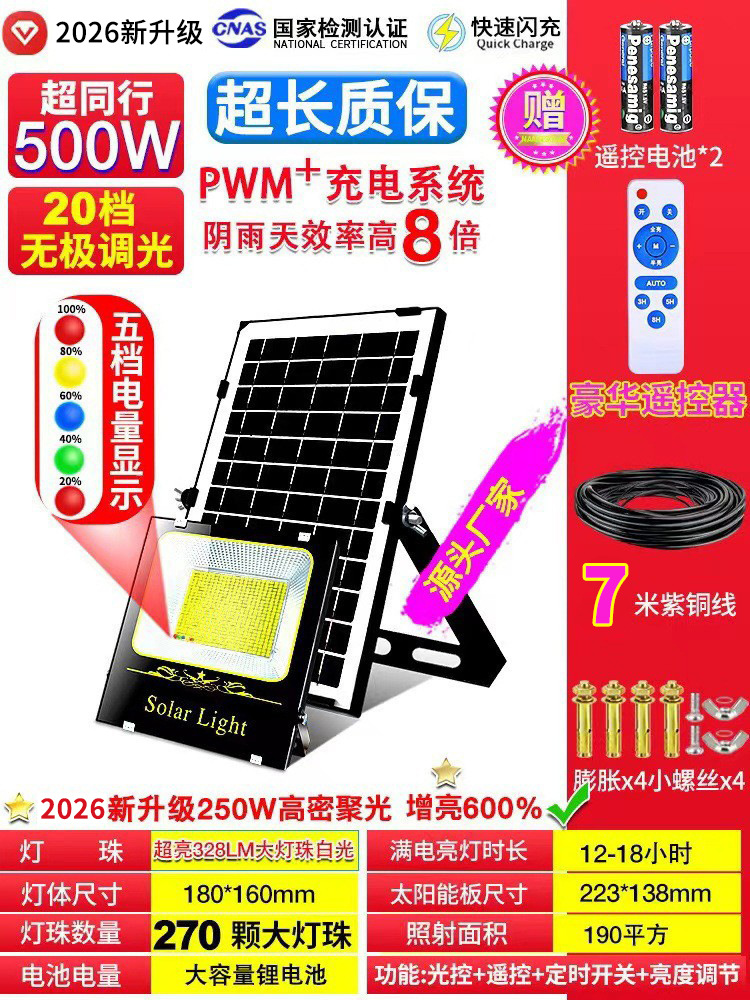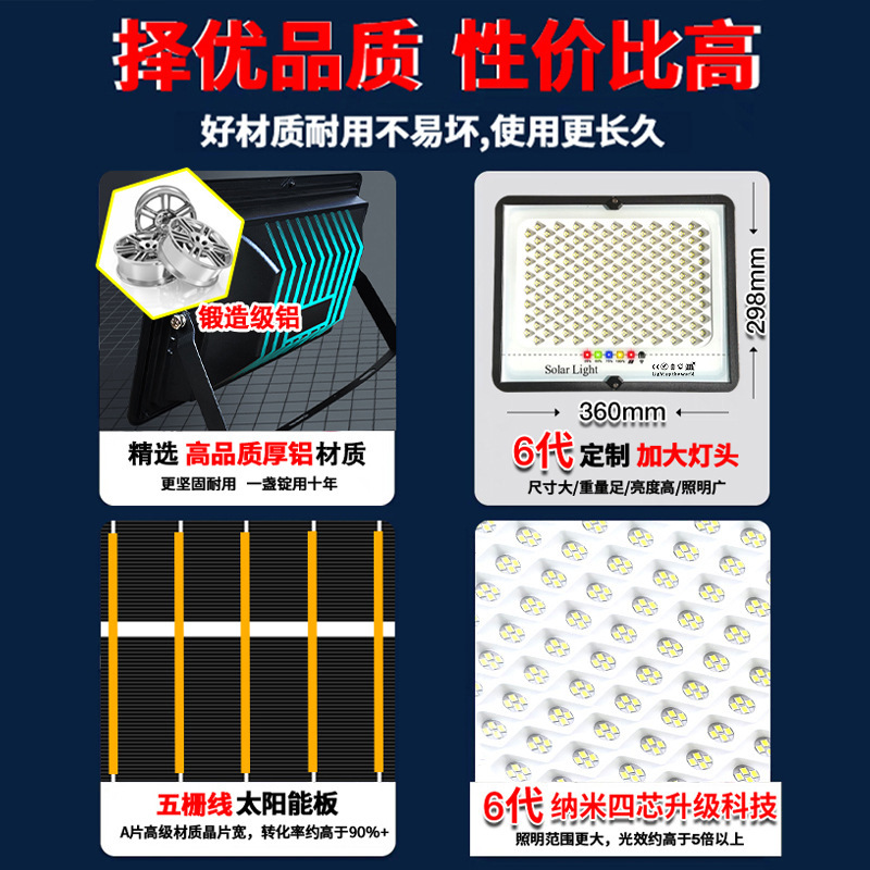 太阳能户外投光灯新农村庭院灯家用防雨一拖二大功率照明路灯批发