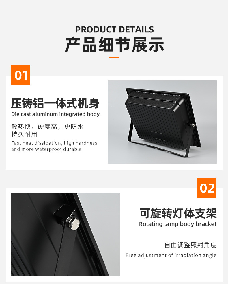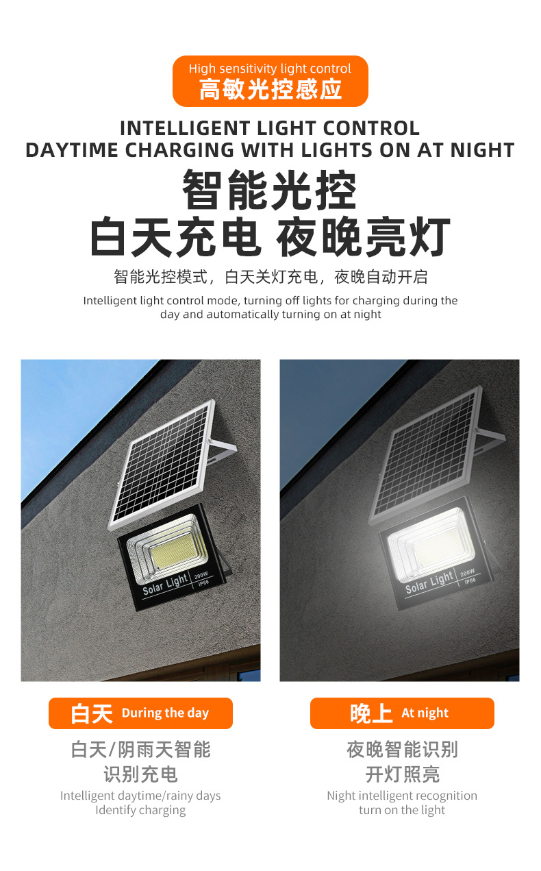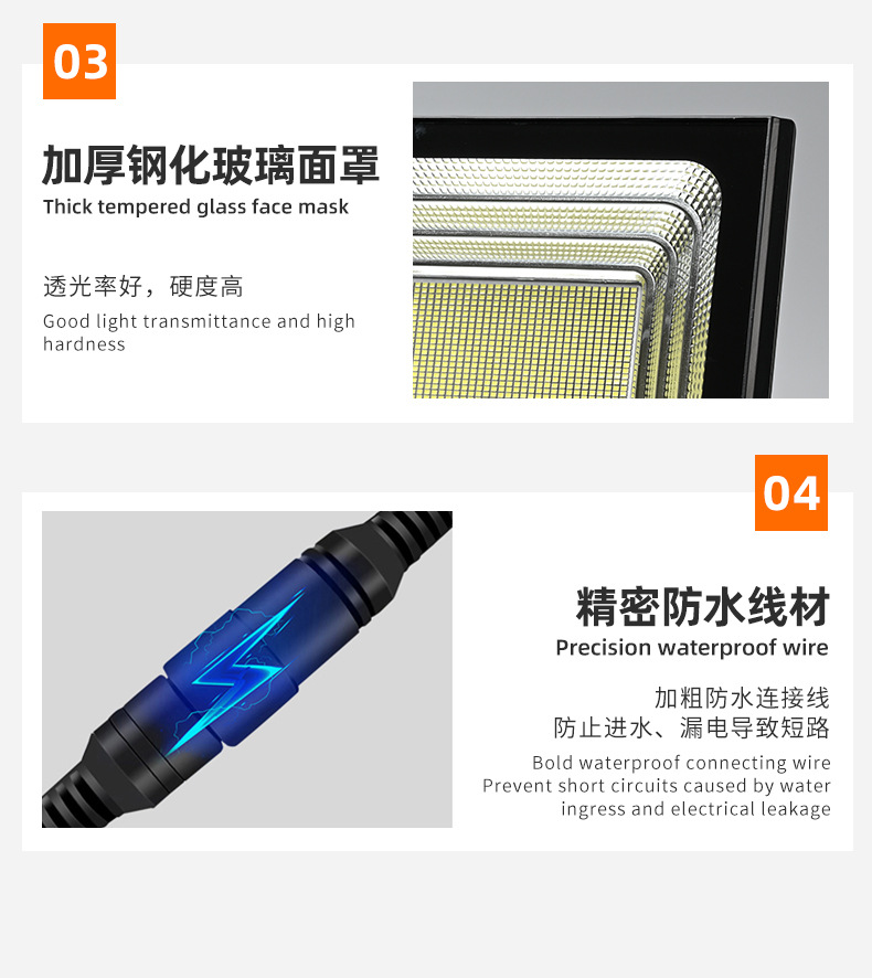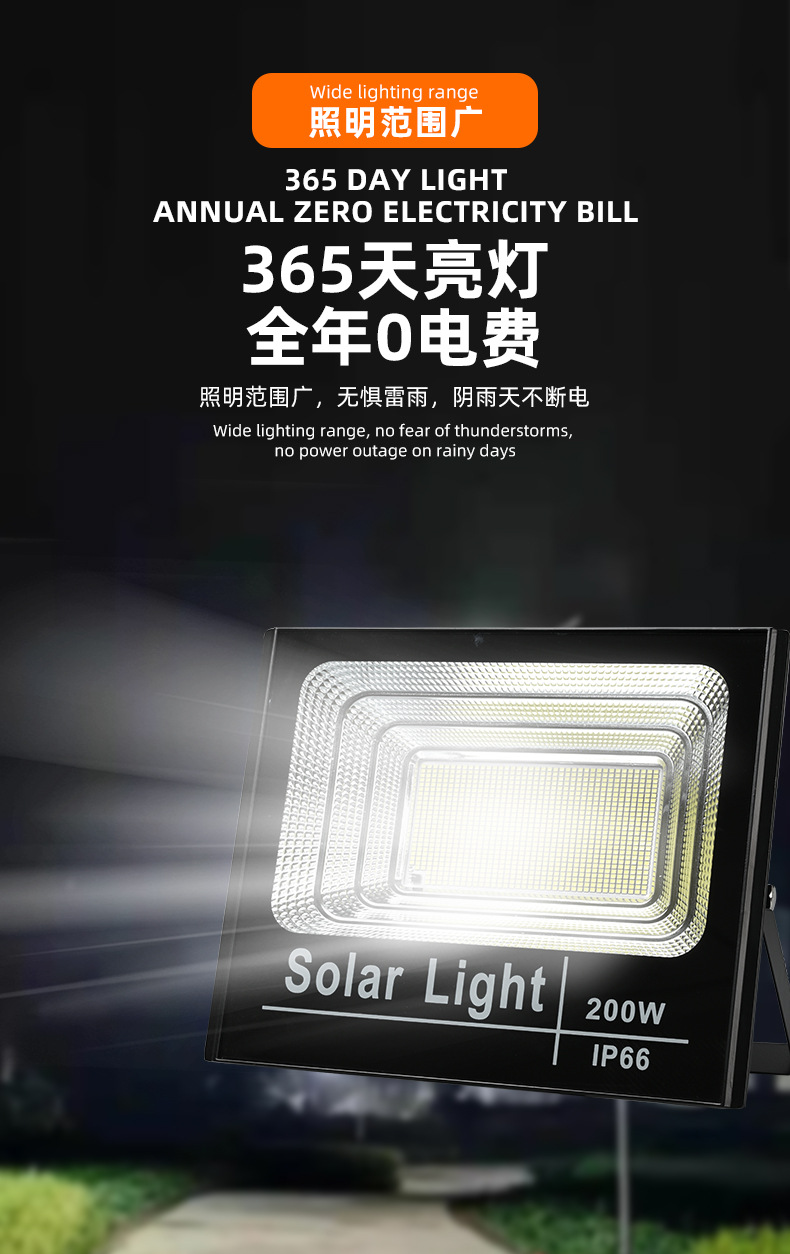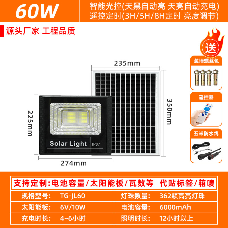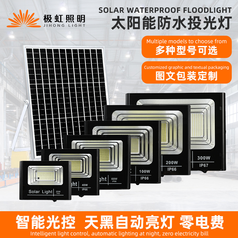 跨境太阳能投光灯防水户外照明庭院灯新农村路灯小区篮球场投光灯