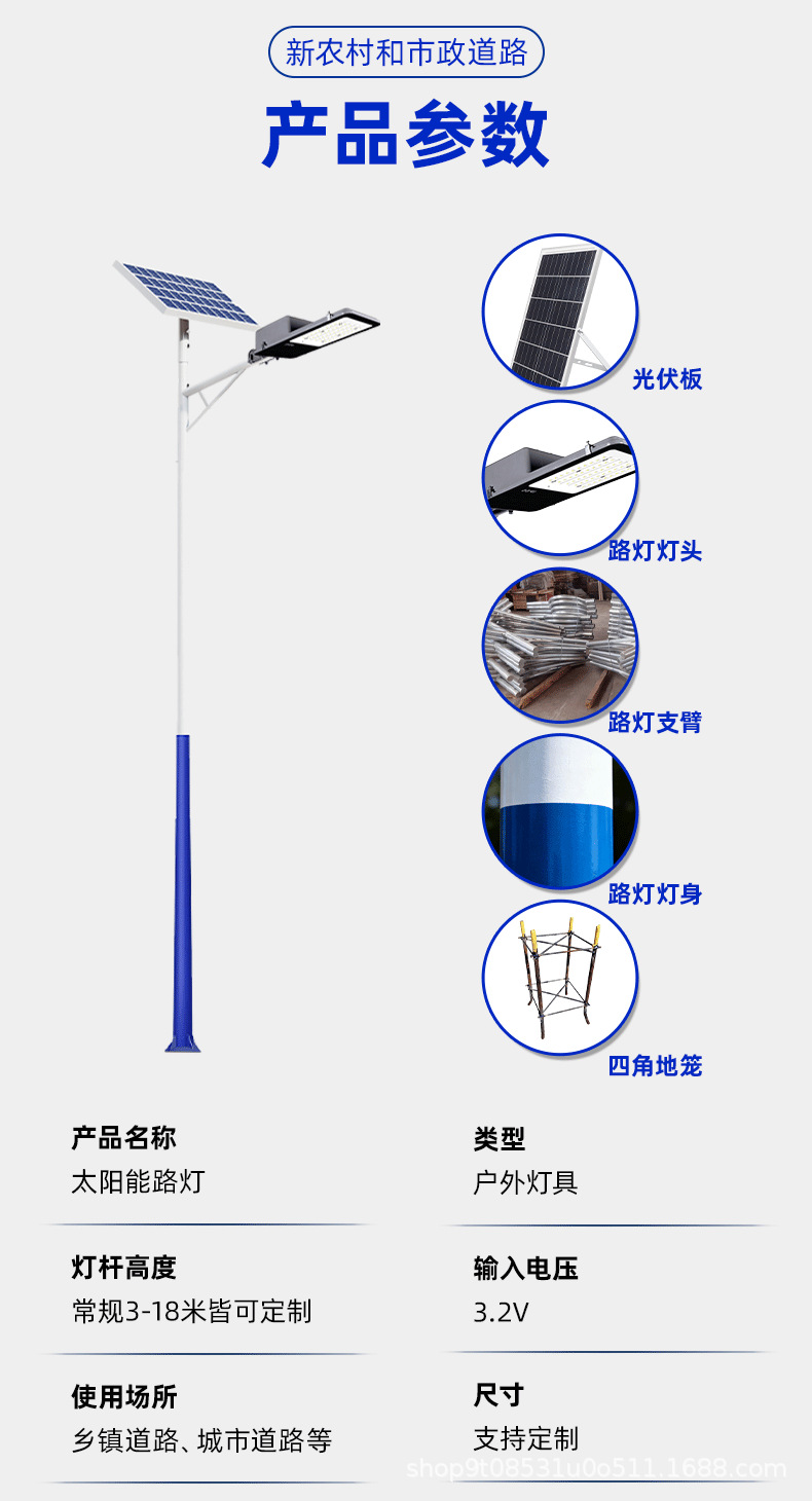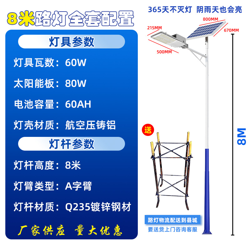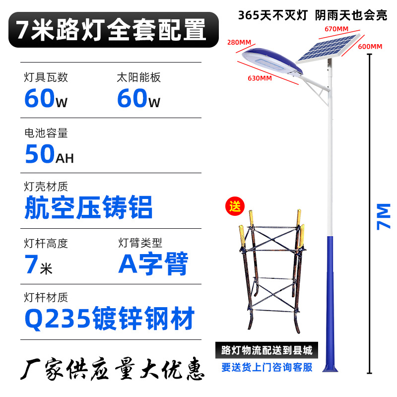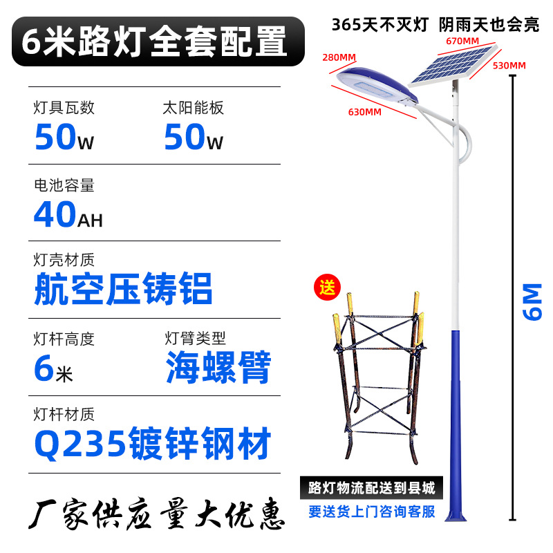 新款太阳能路灯6米新农村公路照明灯LED户外超亮大功率路灯太阳能