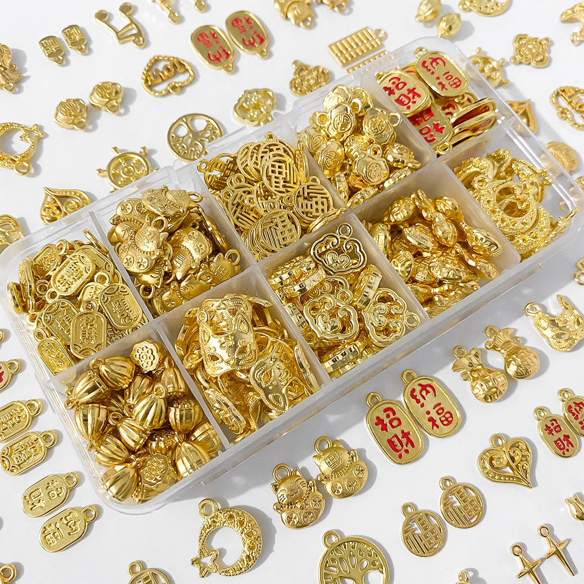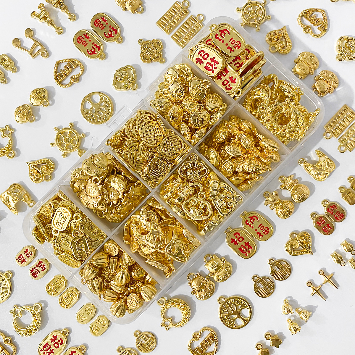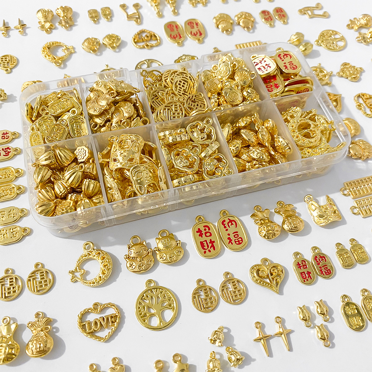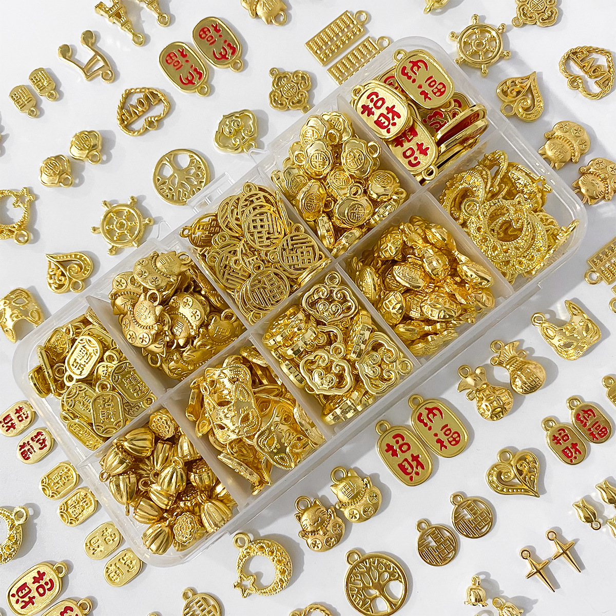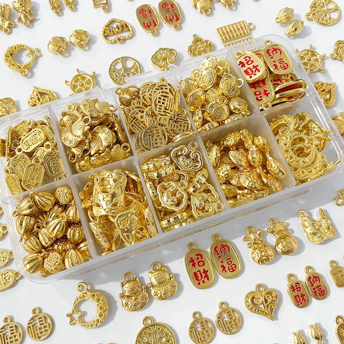 金色合金配件吊坠挂件diy手工手链饰品材料福字饰品手串挂坠配饰