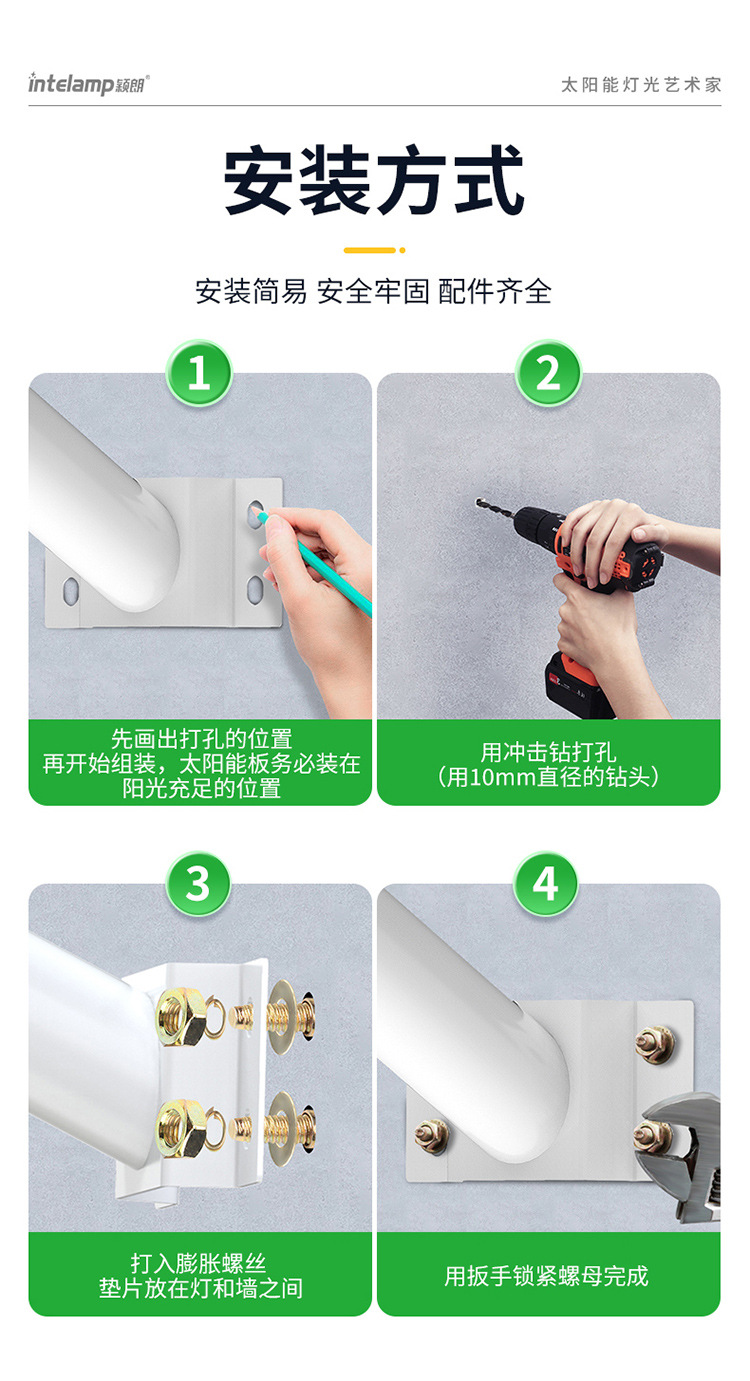 颖朗太阳能灯厂家用户外庭院爆亮防水墙壁安装照明新农村工程路灯