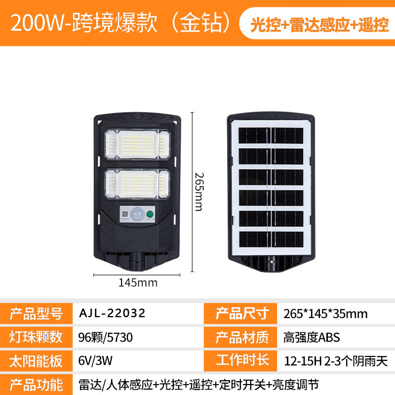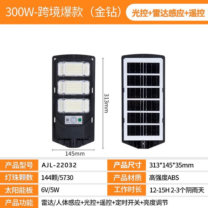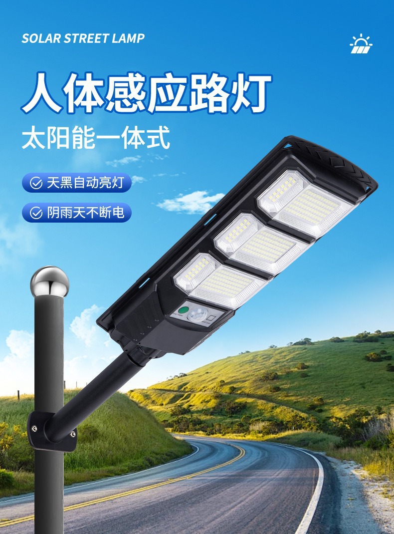 跨境新款太阳能灯户外照明超亮人体感应庭院灯一体化太阳能路灯