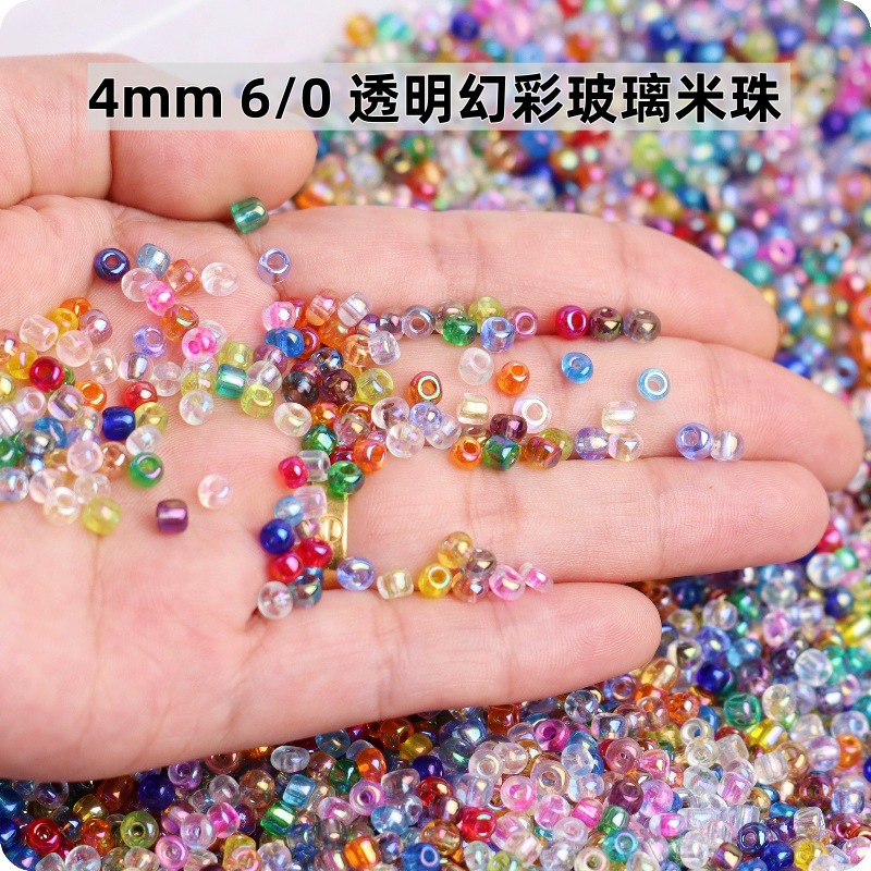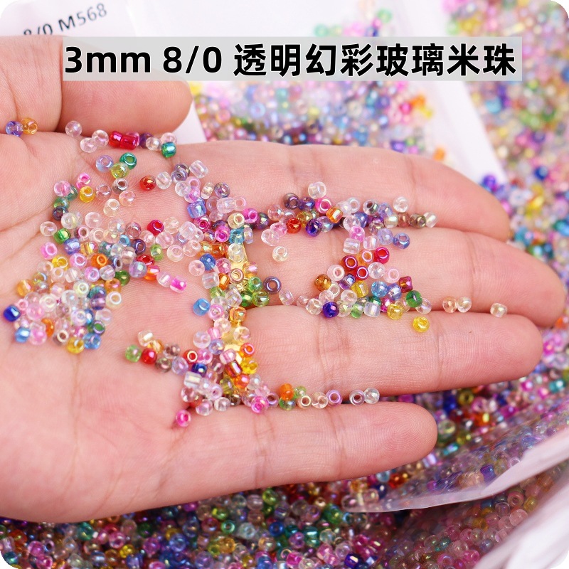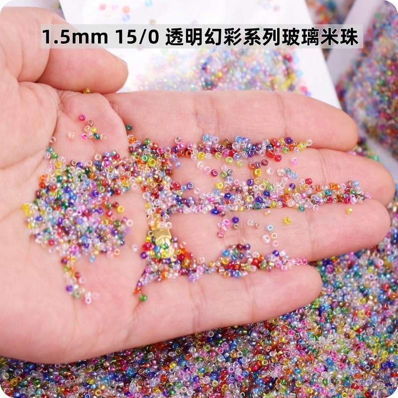 1.5-4mm日系透明幻彩玻璃米珠十字绣小米珠diy手工饰品编织串珠子