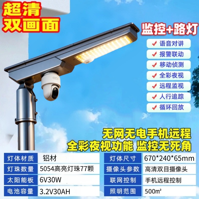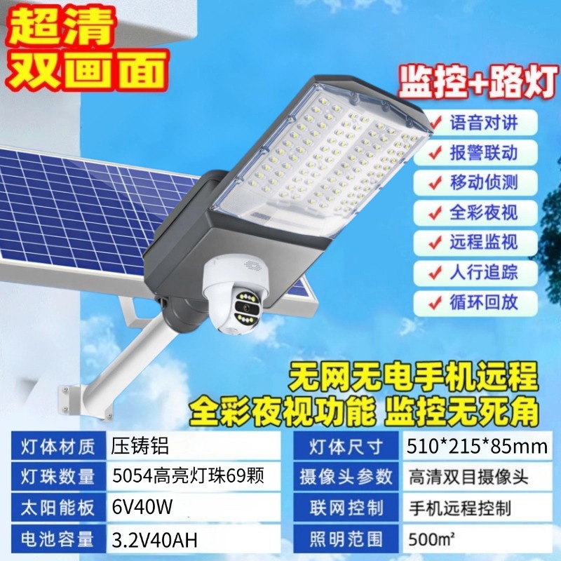 太阳能户外路灯监控超亮大功率家用庭院灯工程4G太阳能摄像头路灯