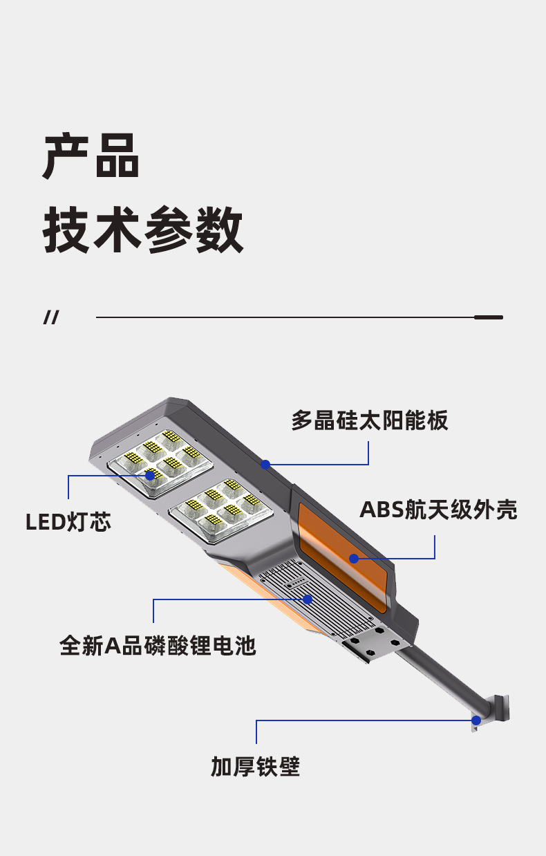 太阳能路灯爆亮户外6米家用路灯led跨境私模一体化太阳能路灯防水
