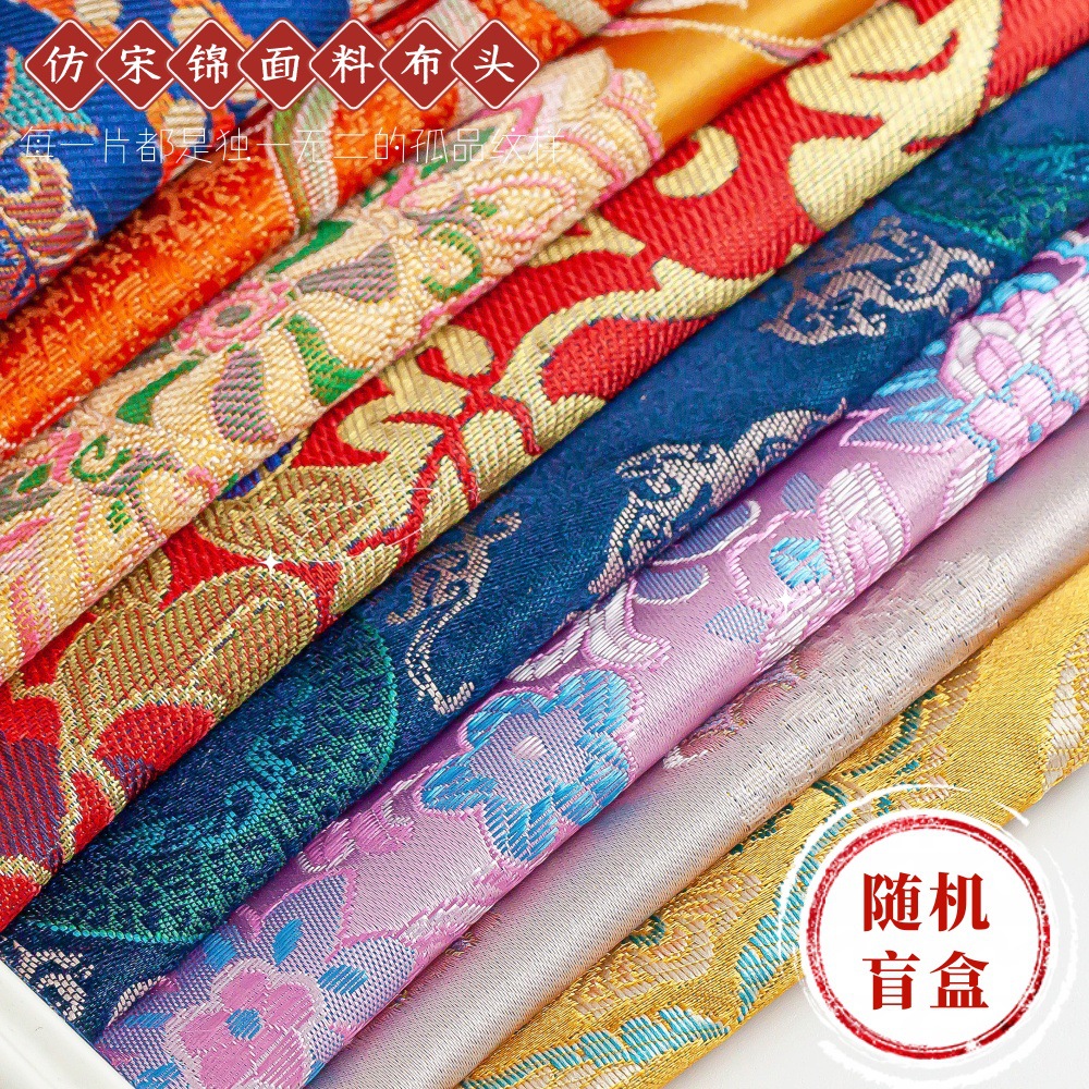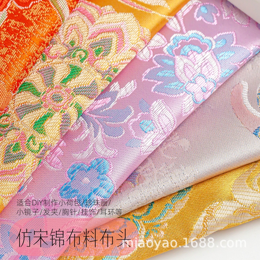 仿宋锦饰品布料碎布头新中式带背胶diy底胚发夹手工配饰材料面料