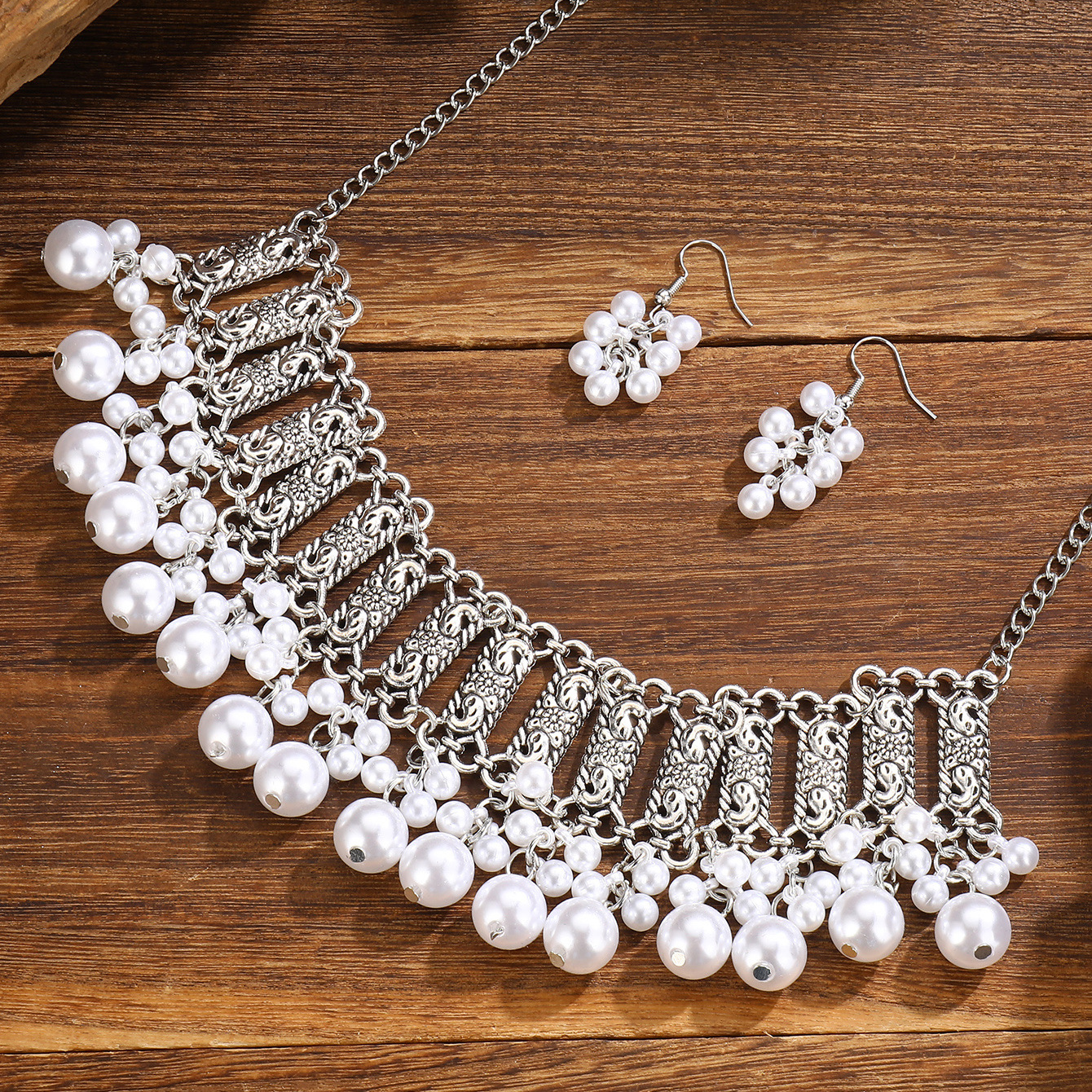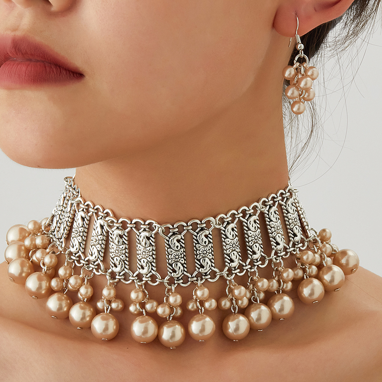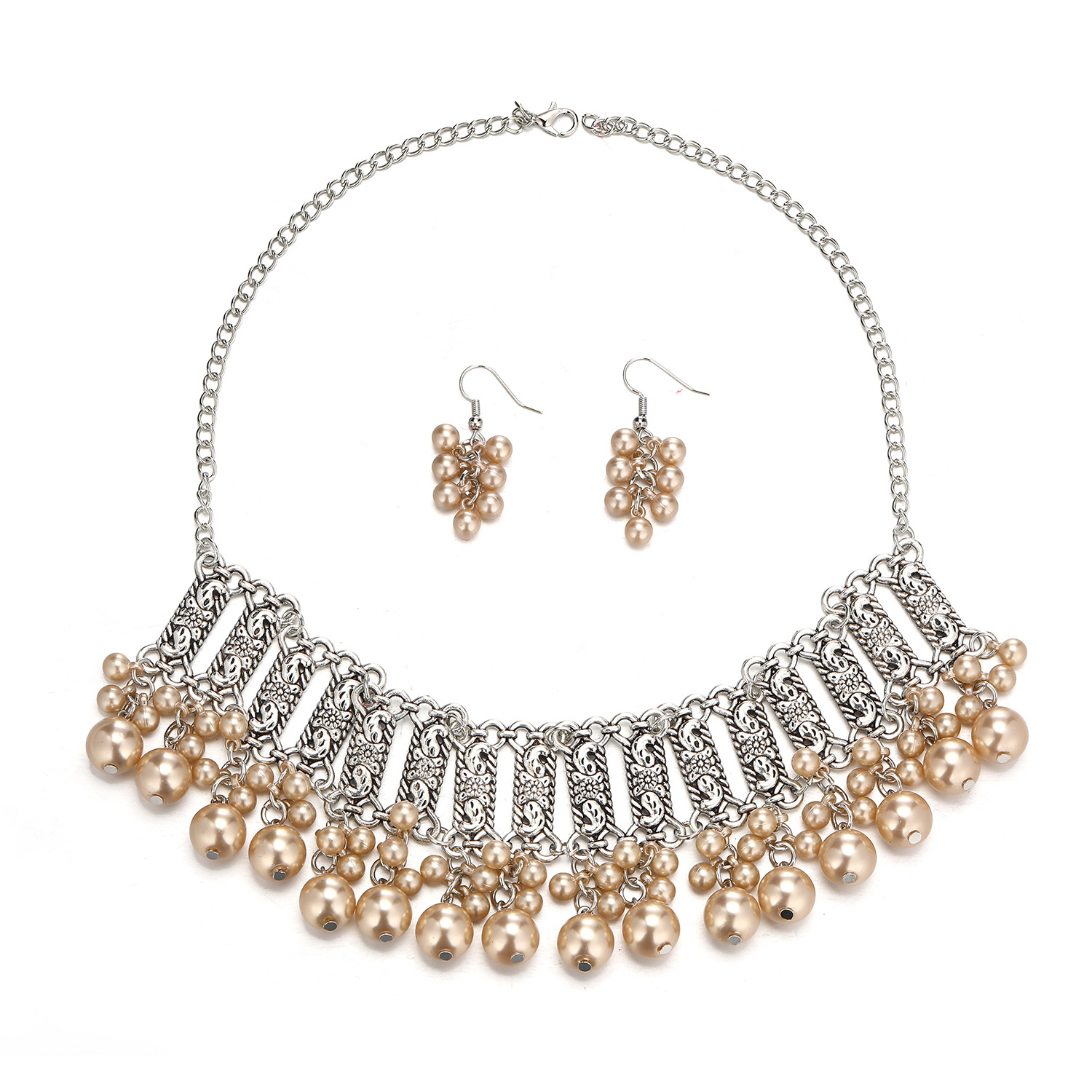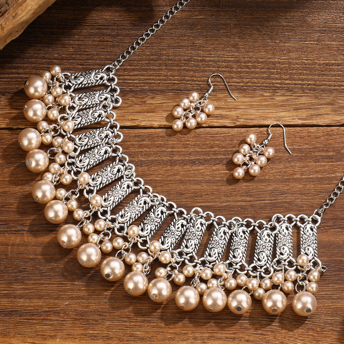 厂家新款时尚波西米亚复古颈链耳环东南亚民族风珍珠珠串项链套装