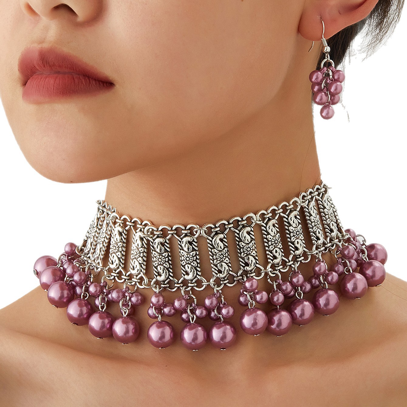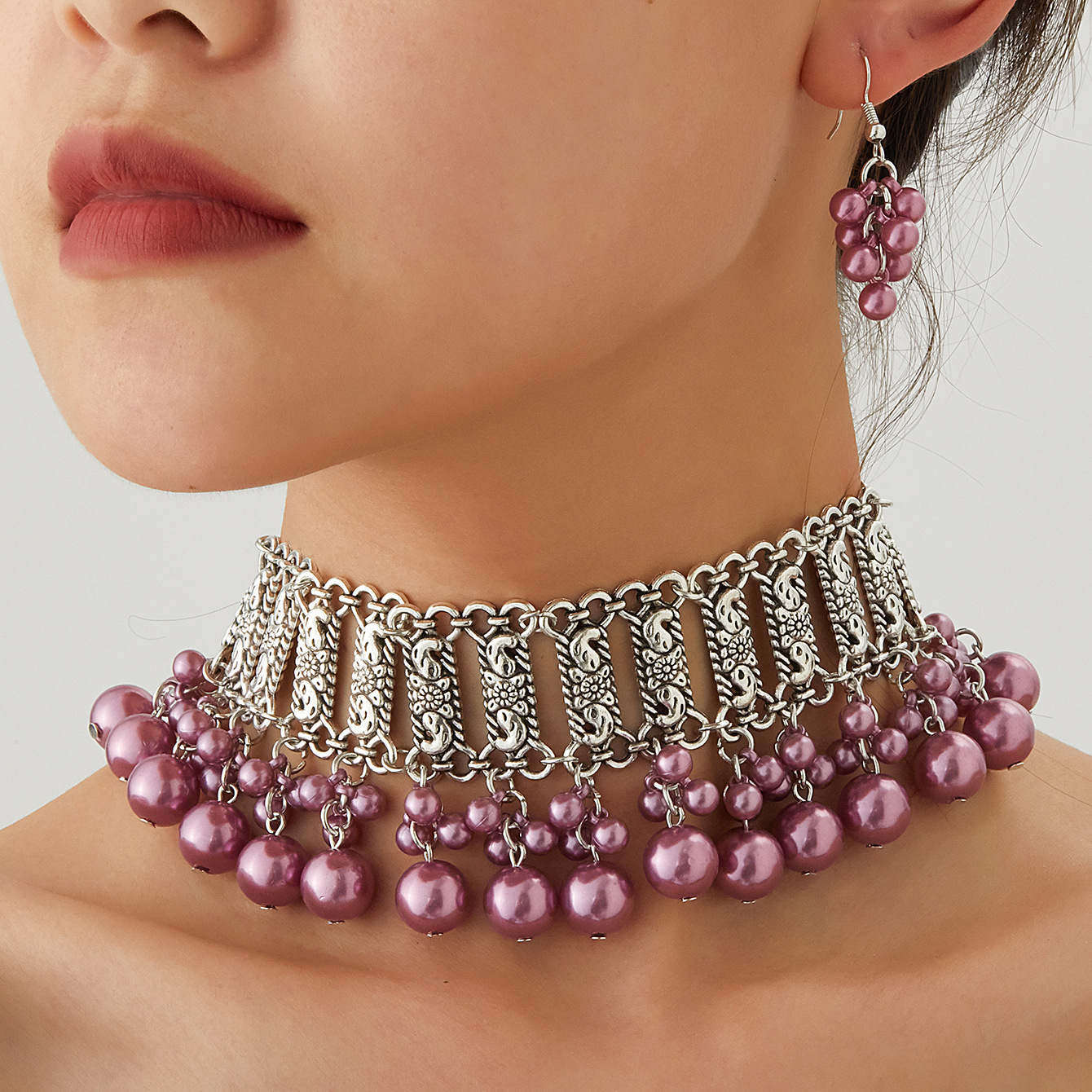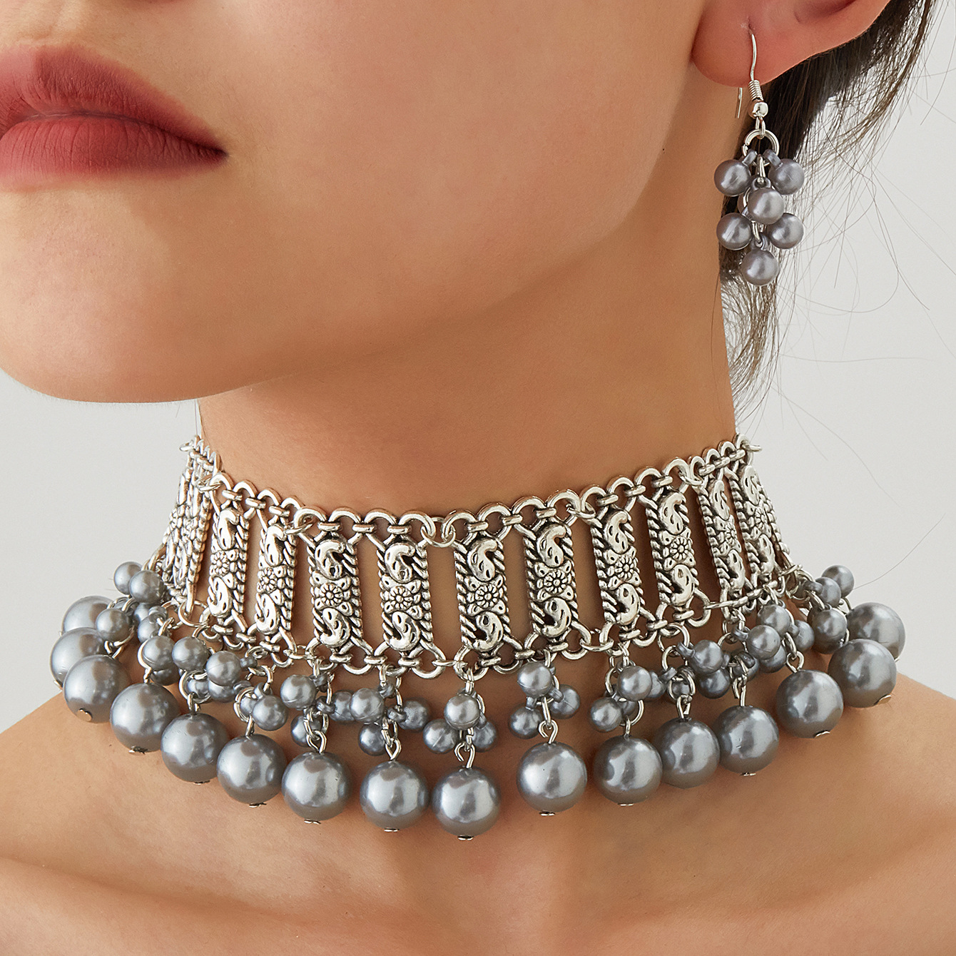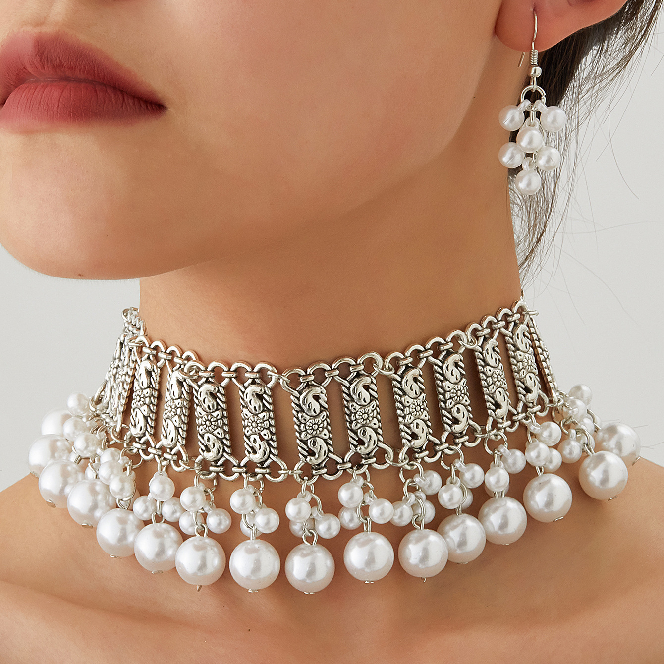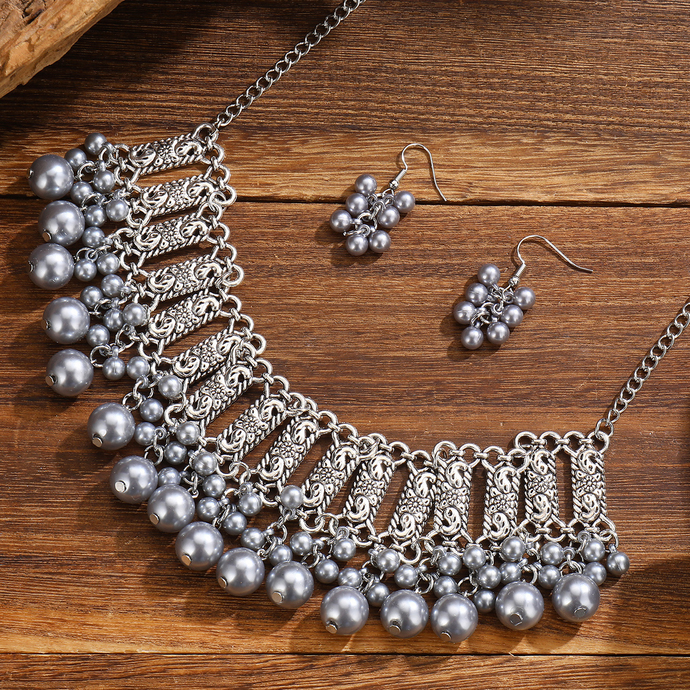 厂家新款时尚波西米亚复古颈链耳环东南亚民族风珍珠珠串项链套装