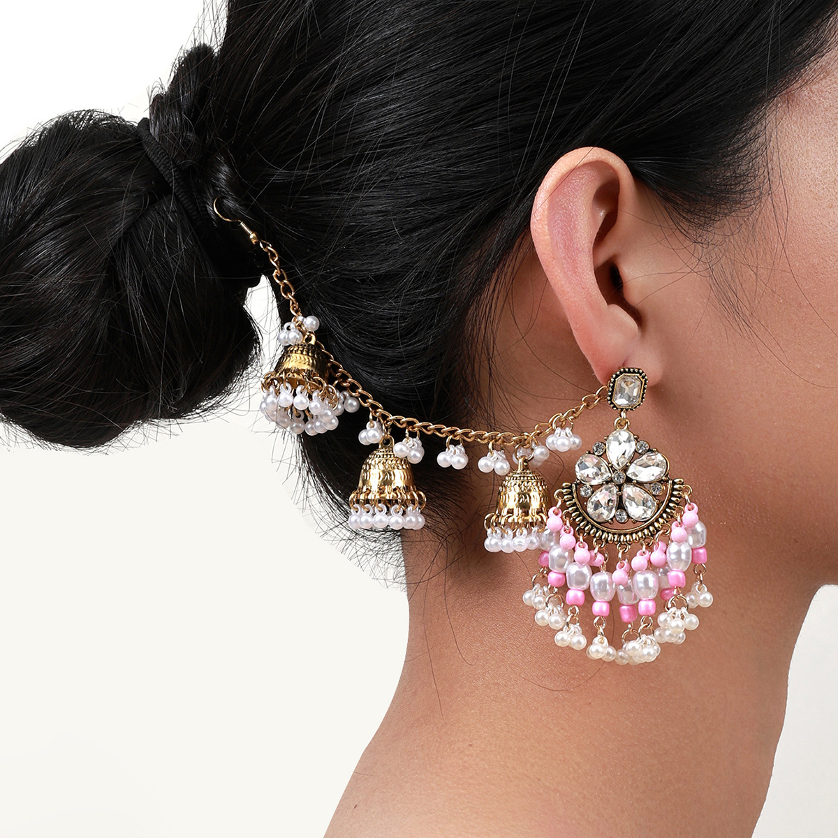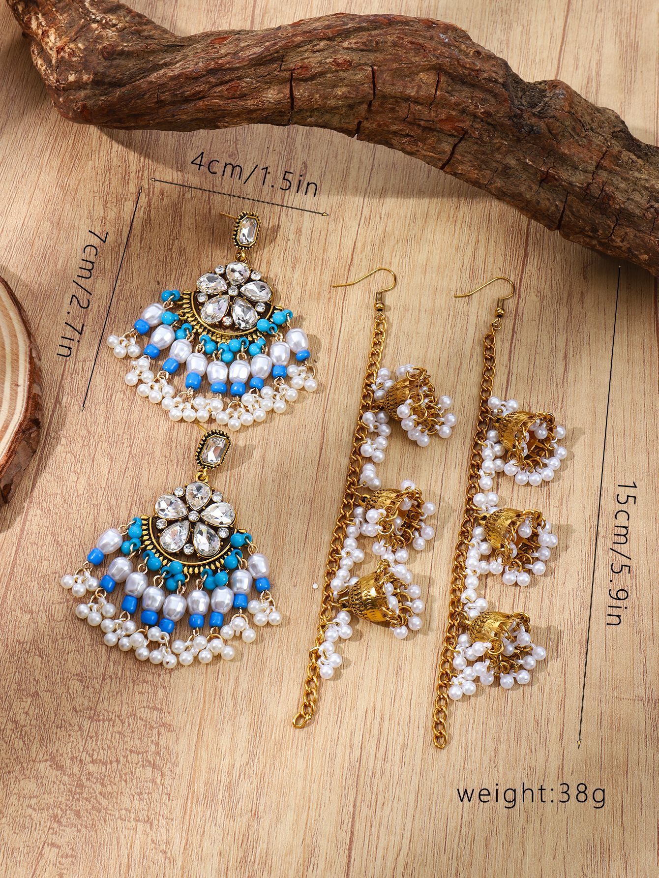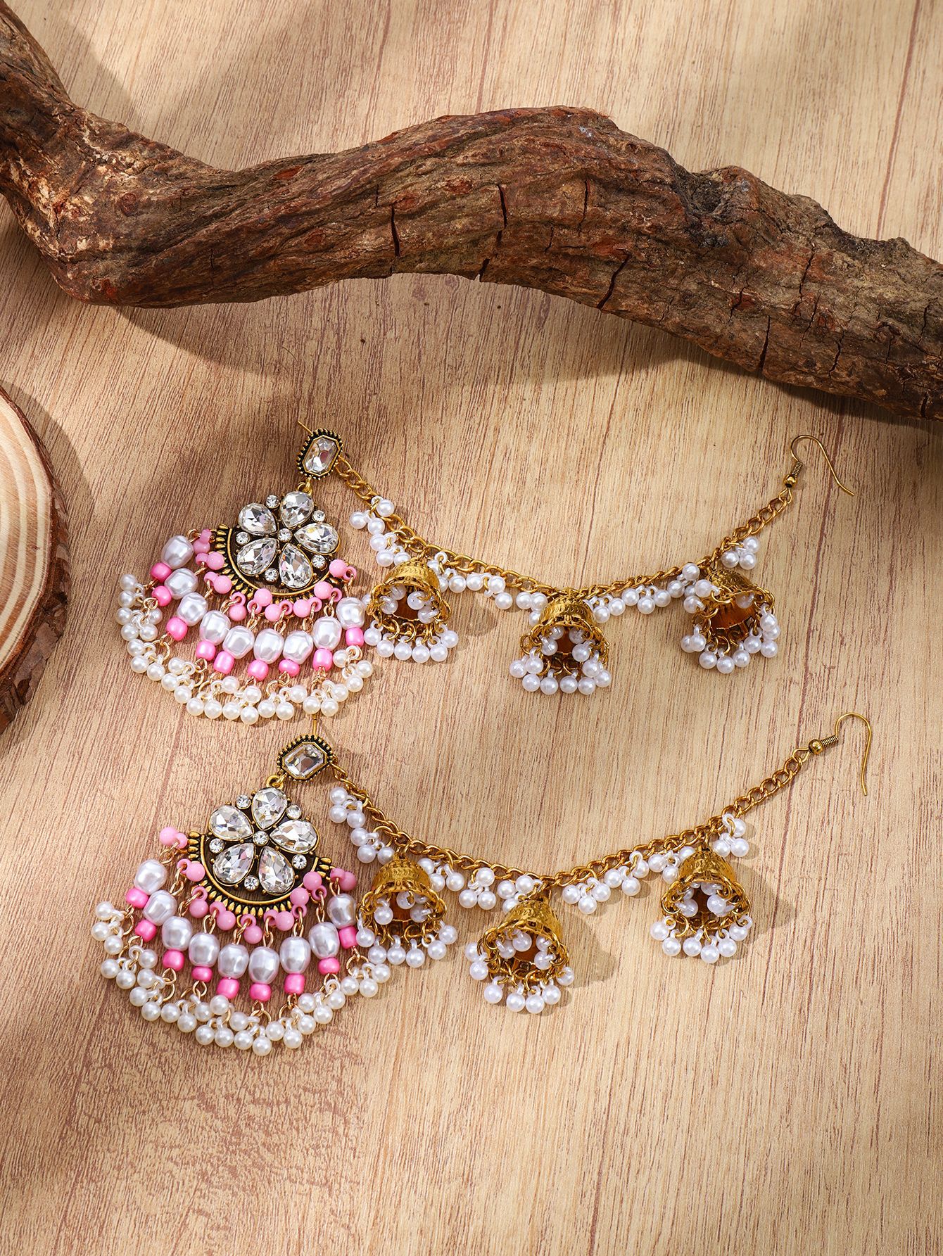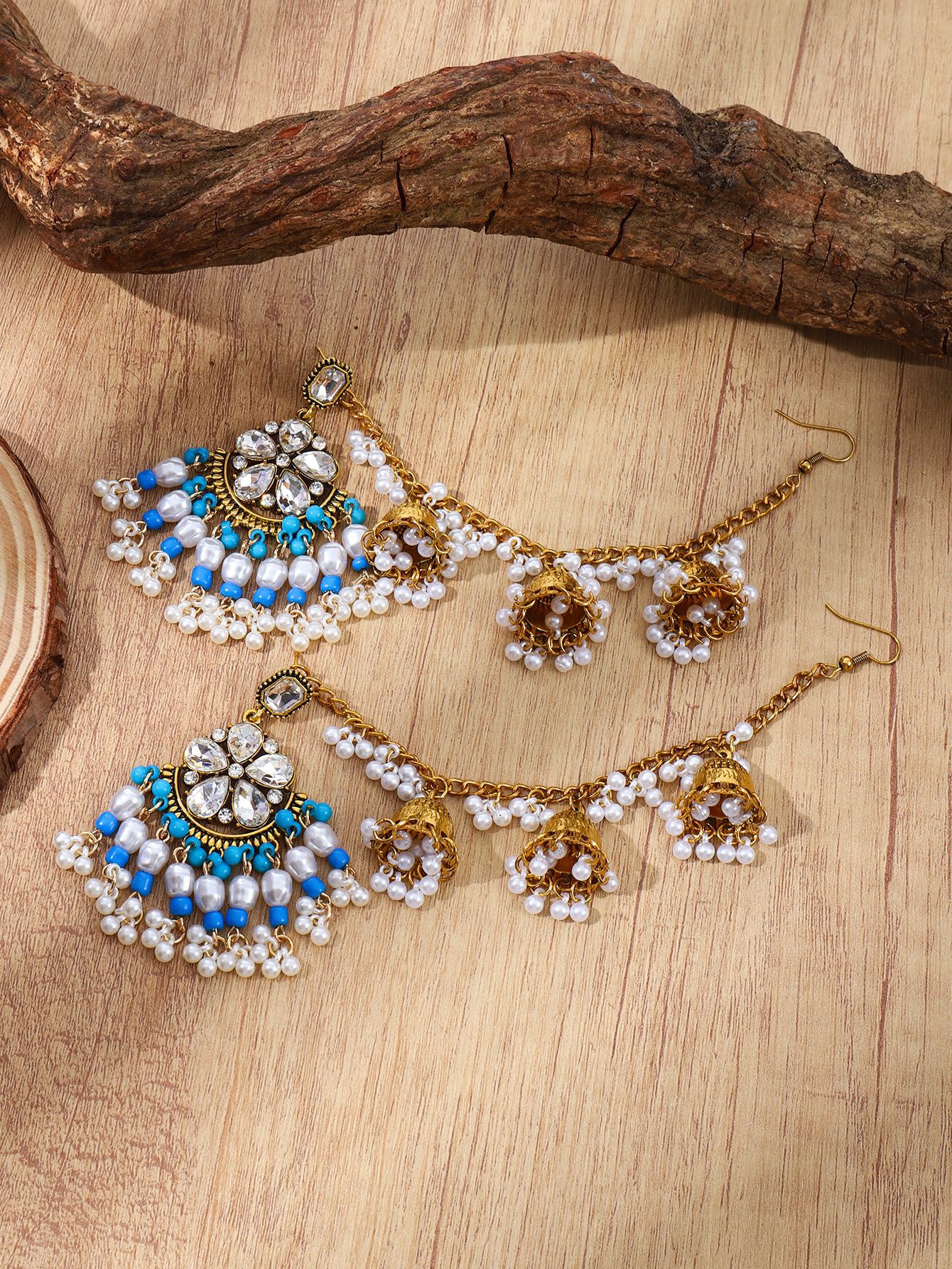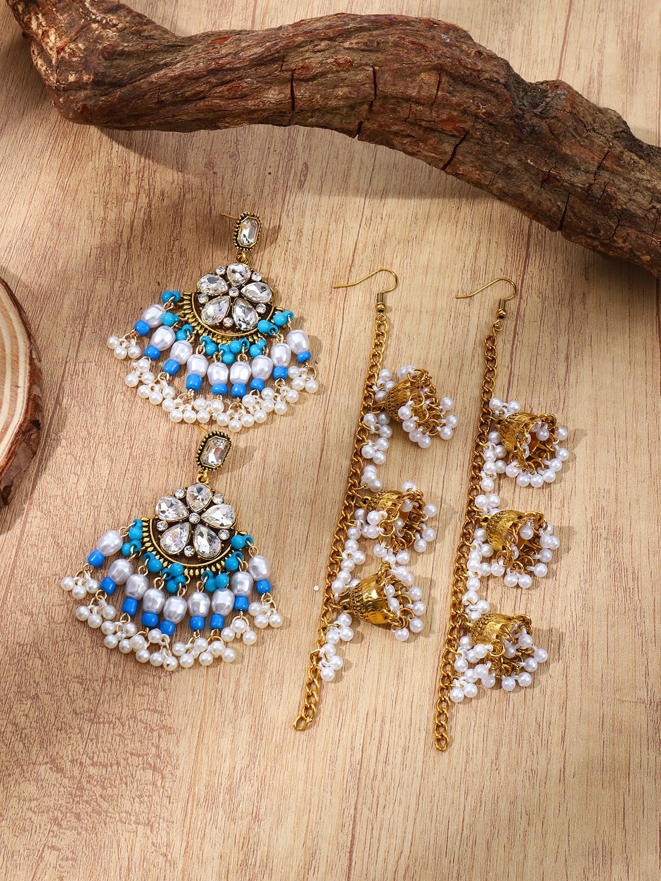 欧美水滴花朵耳环 波西米亚几何珍珠耳坠民族风一体式流苏耳饰女