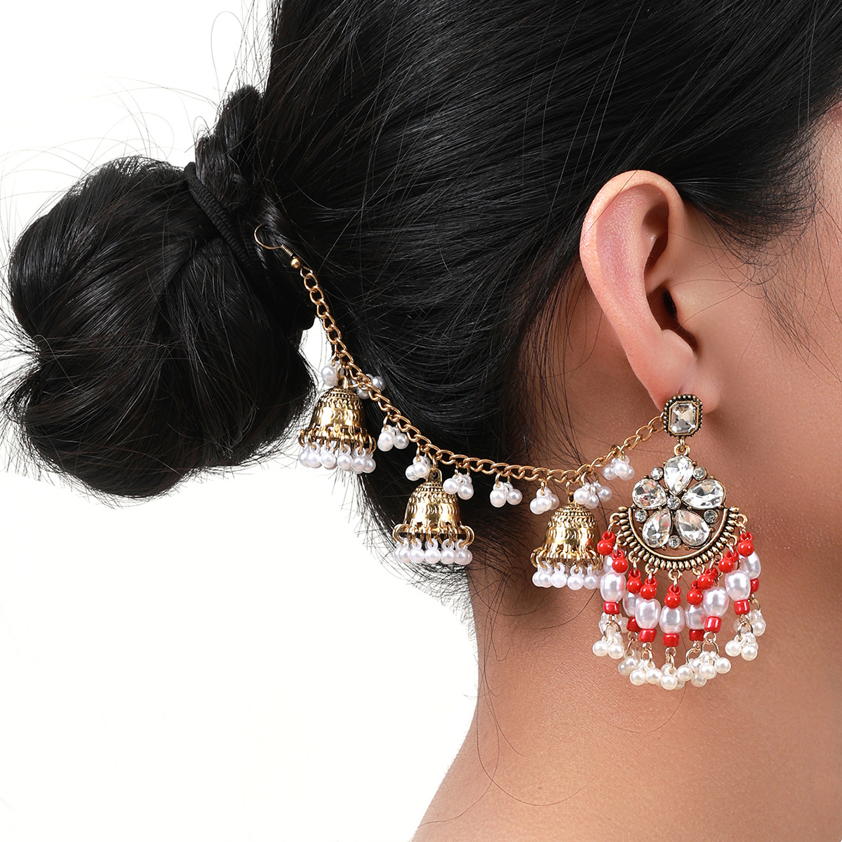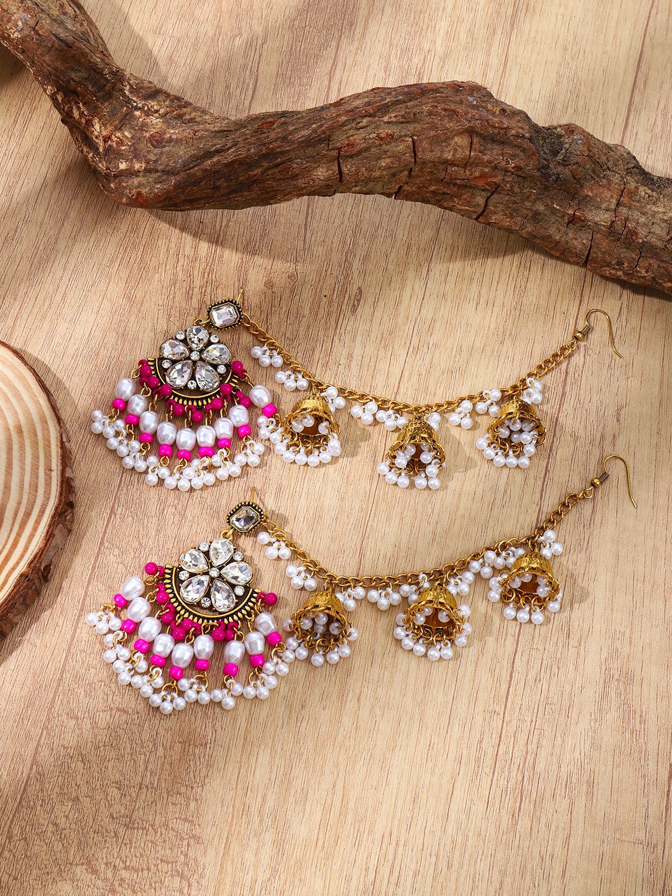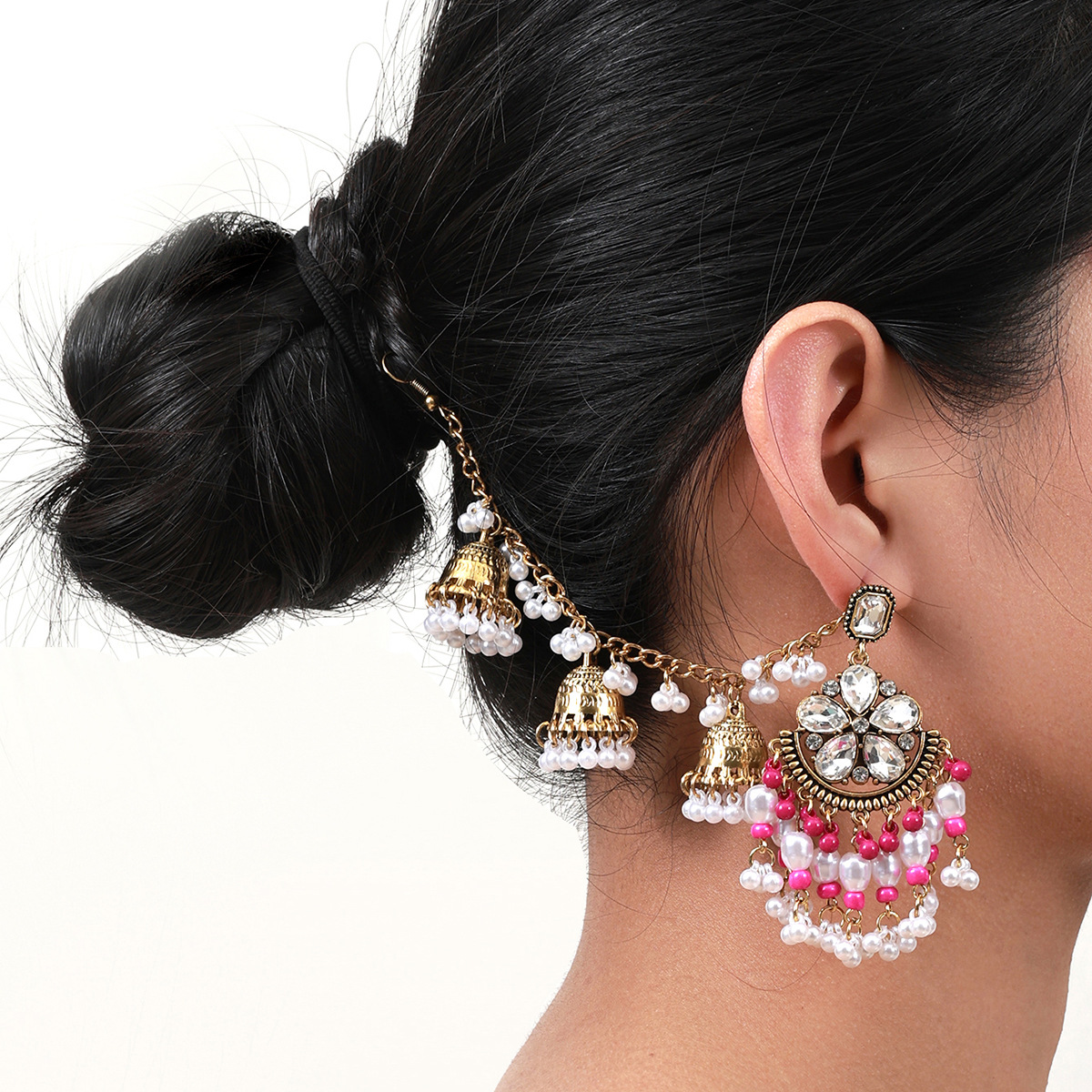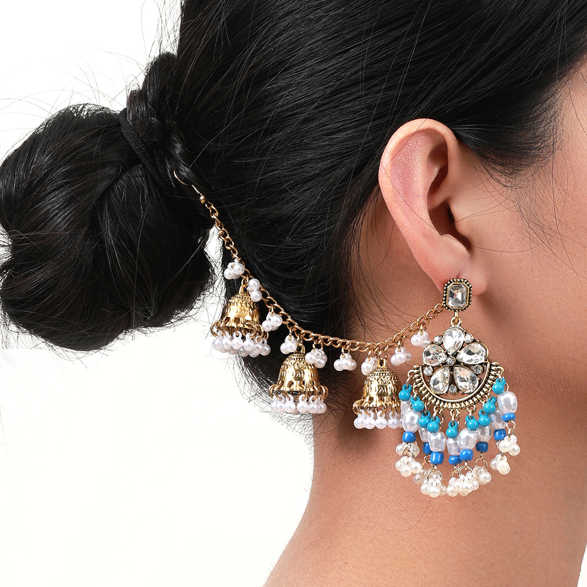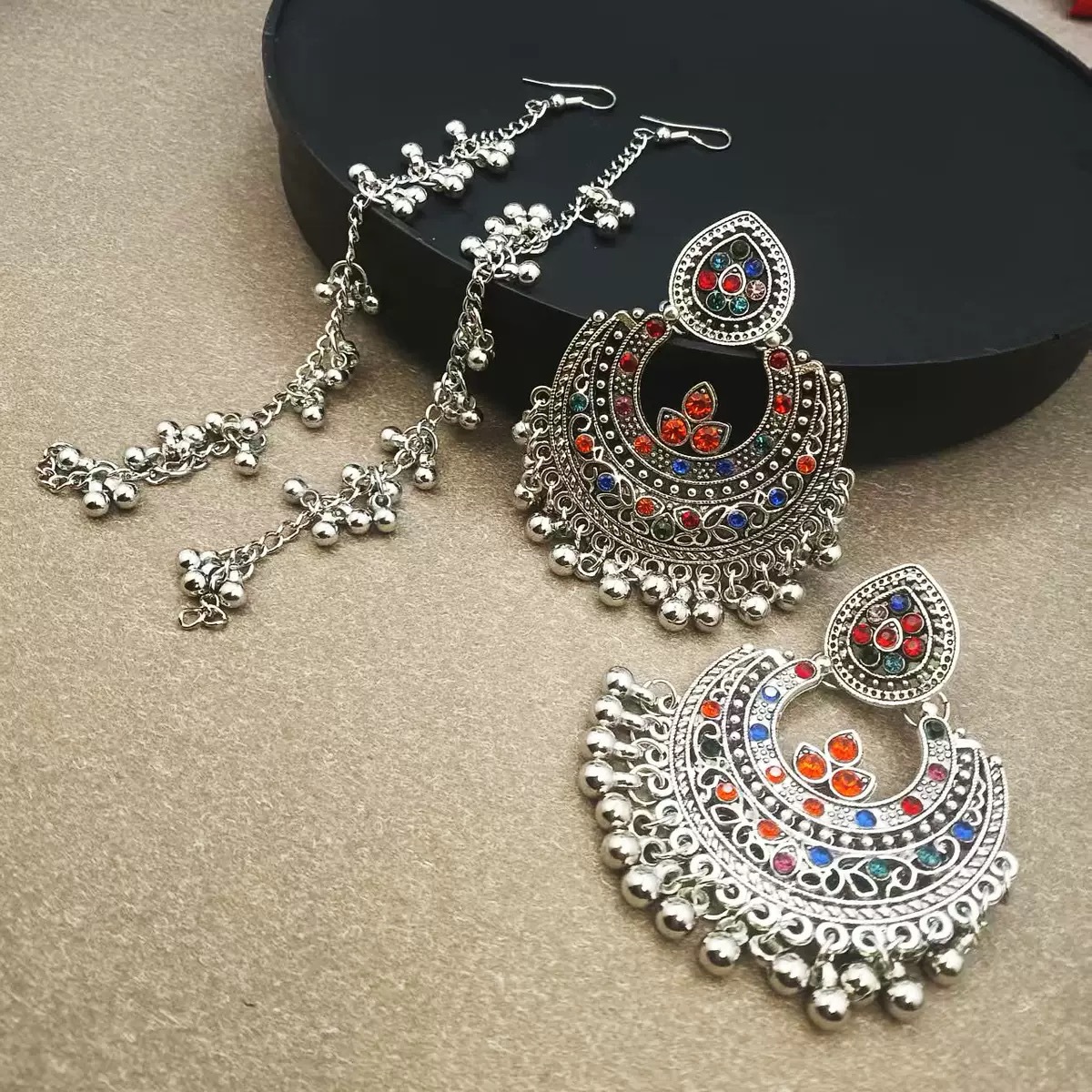 欧美水滴花朵耳环 波西米亚几何珍珠耳坠民族风一体式流苏耳饰女